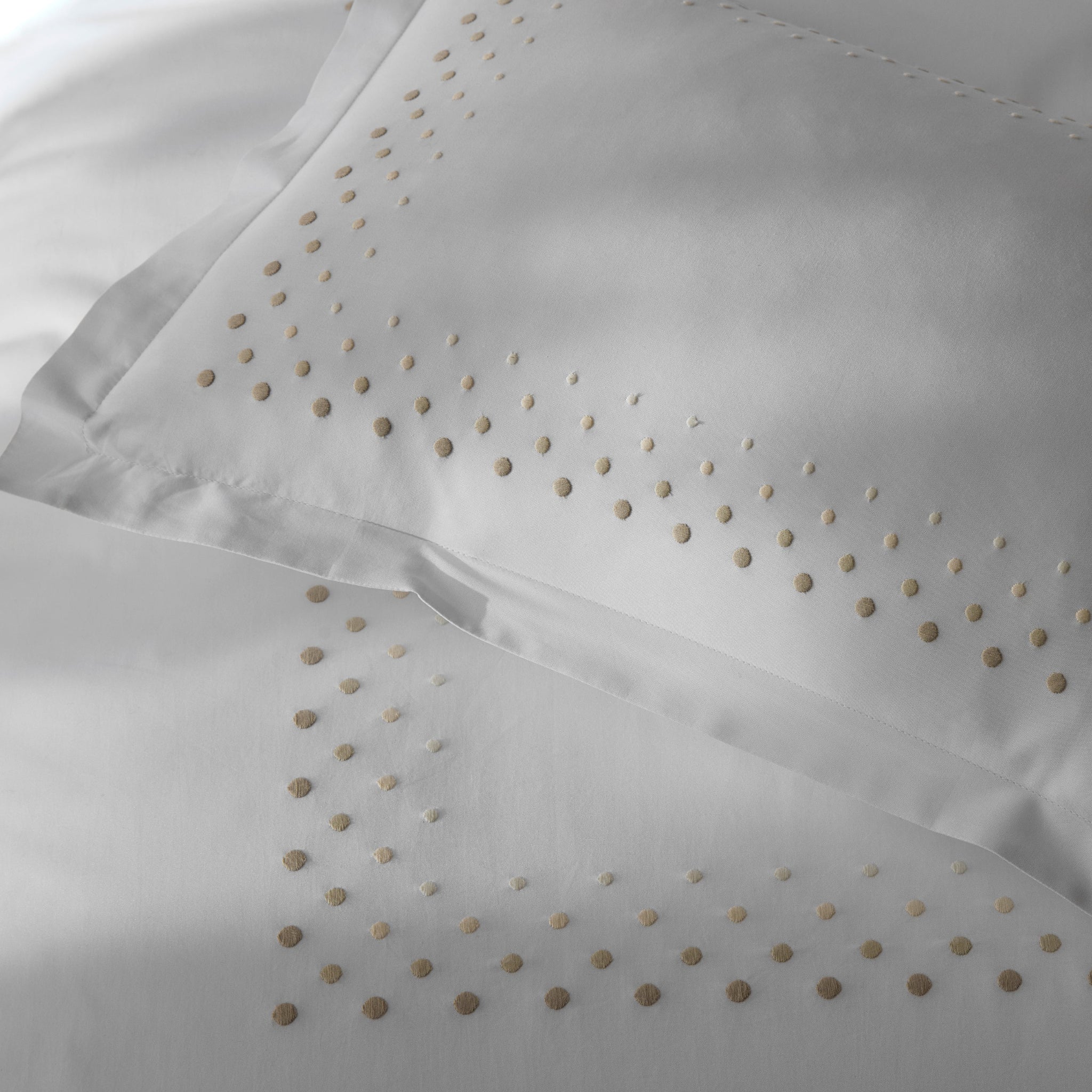 This vibrant ombré design features four rows of monochromatic dot embroidery on our signature Milano percale sheeting