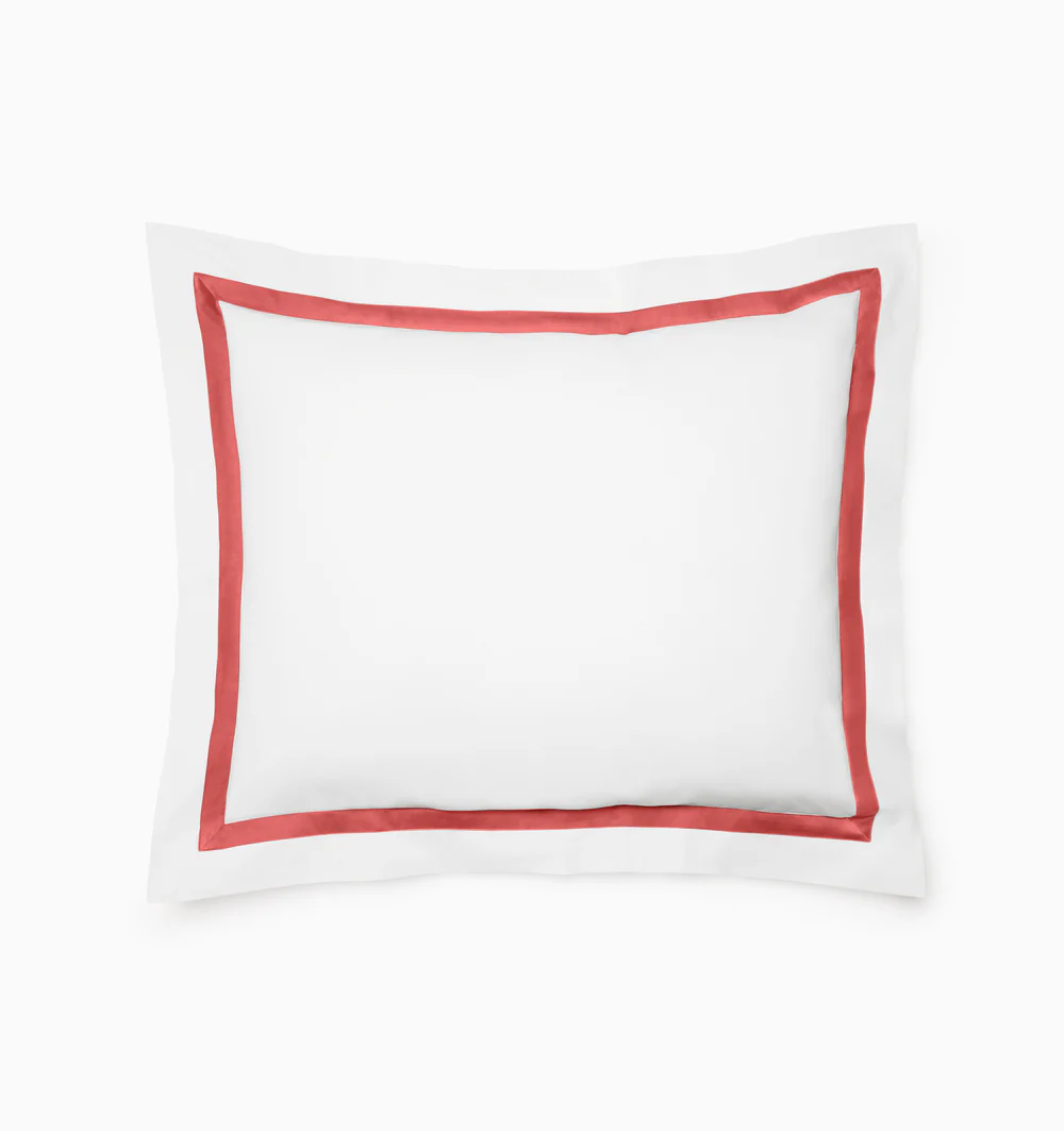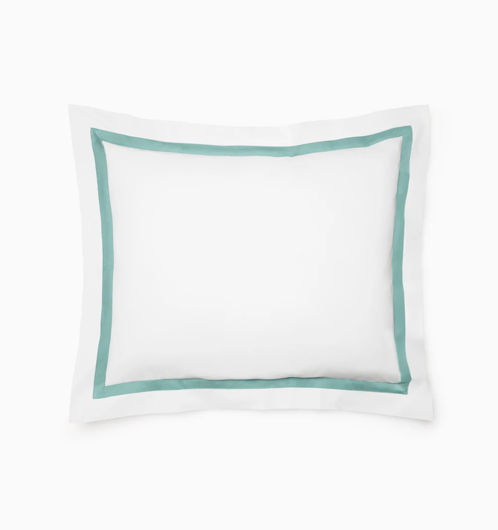 The understated sophistication of Estate’s crisp white, Italian woven long-staple cotton base is an immaculate backdrop for lustrous sateen appliqué detail, beautifully bordering this collection to create a sense of tailored elegance.