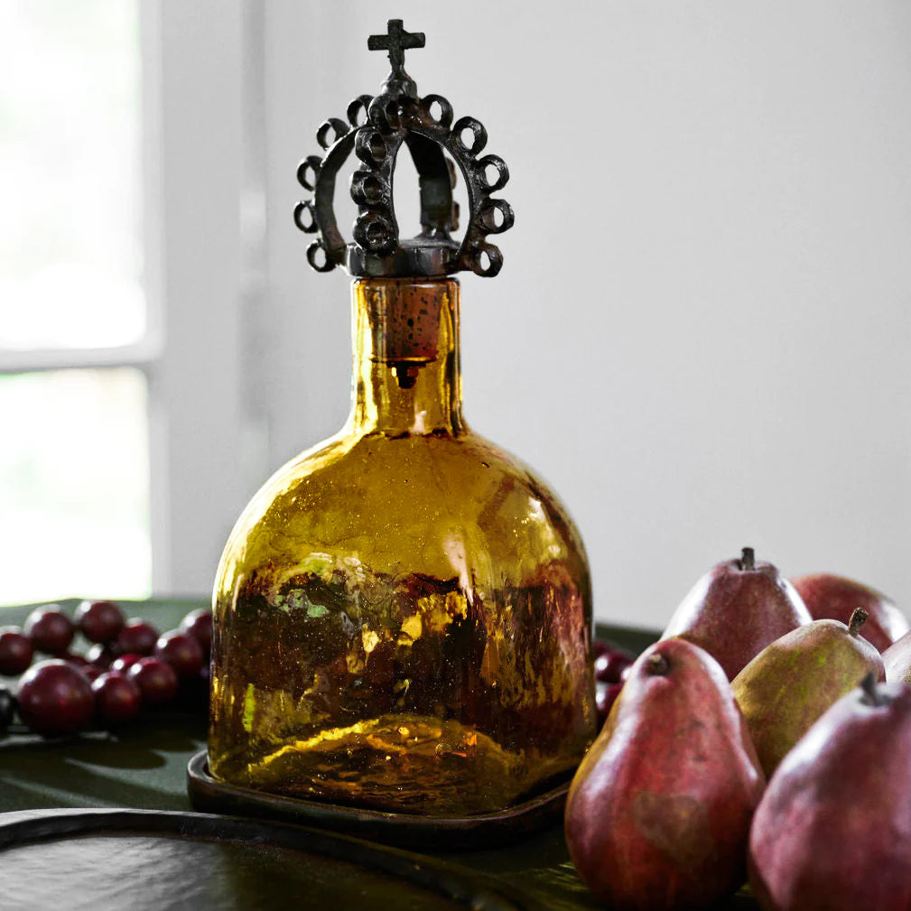 - Glass vessel with pewter lid and base