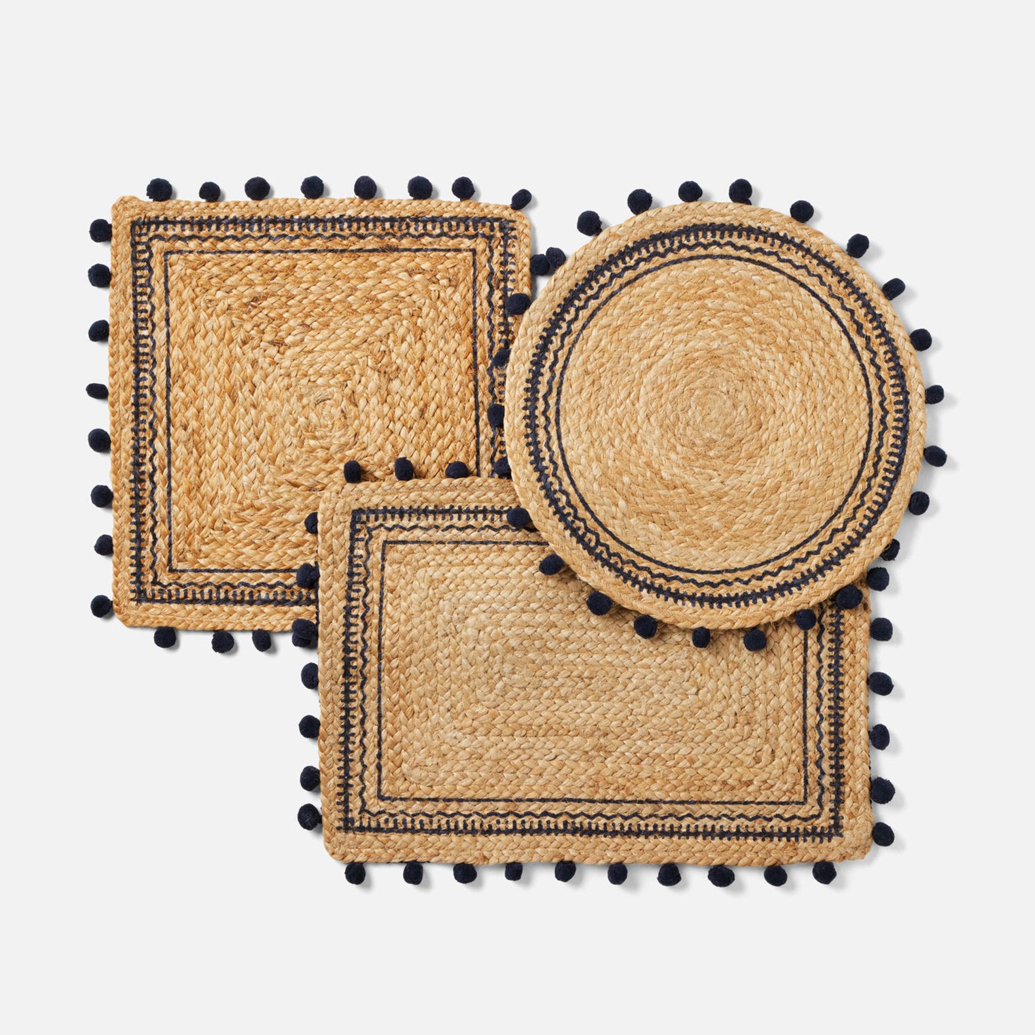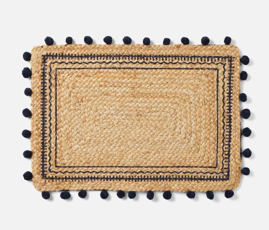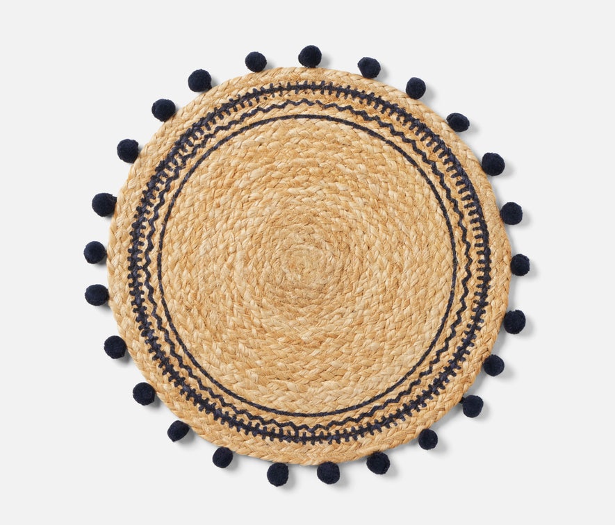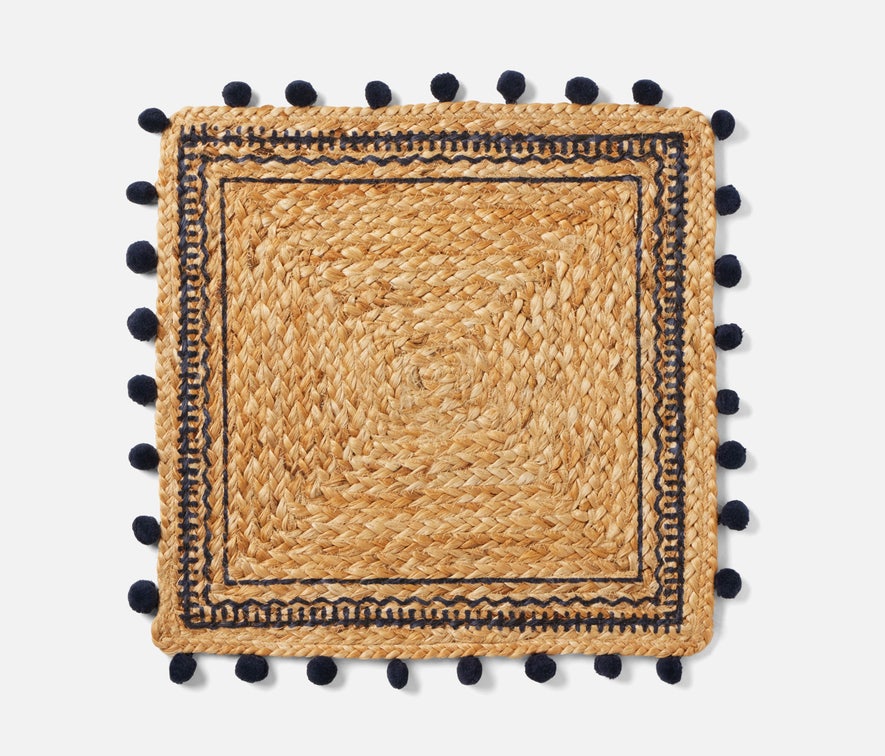 • Jute placemat bordered in playful pompoms