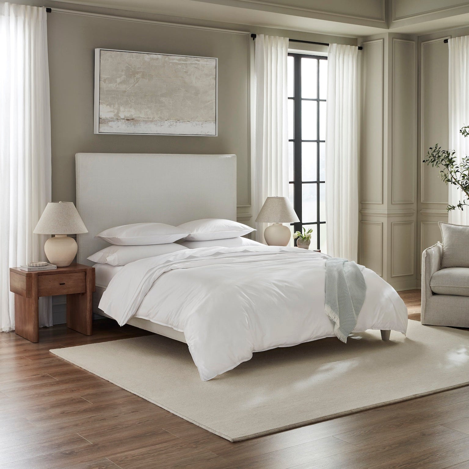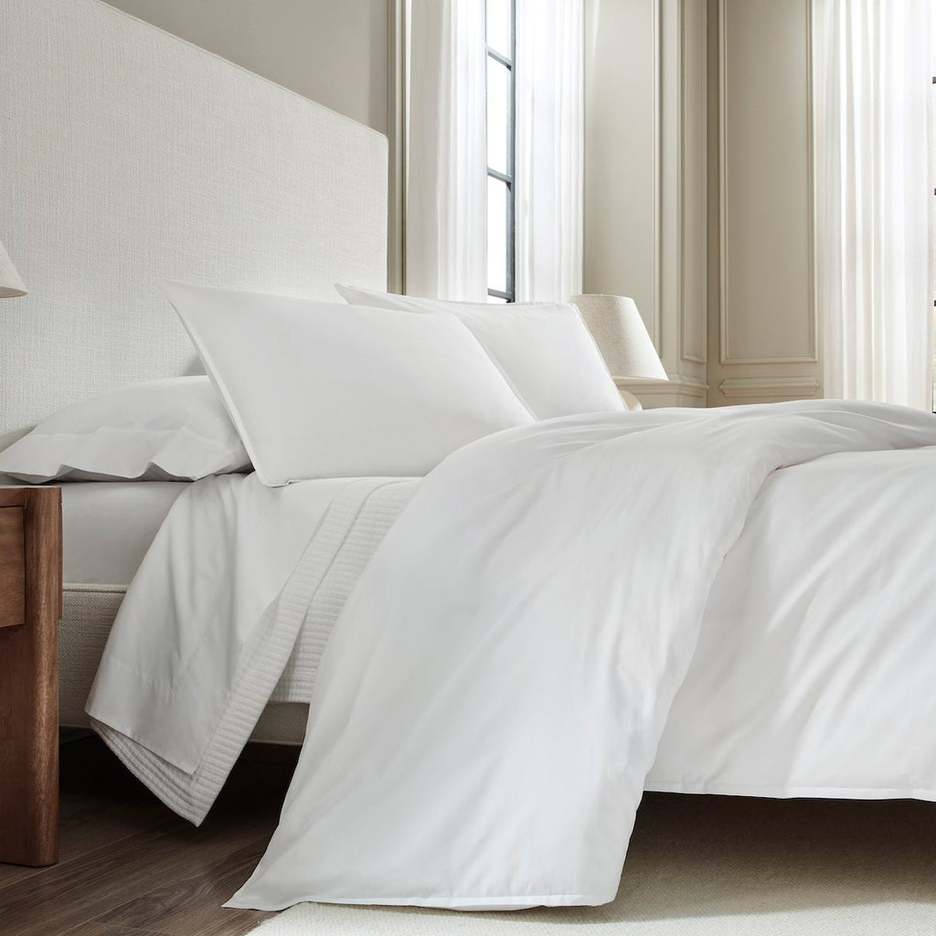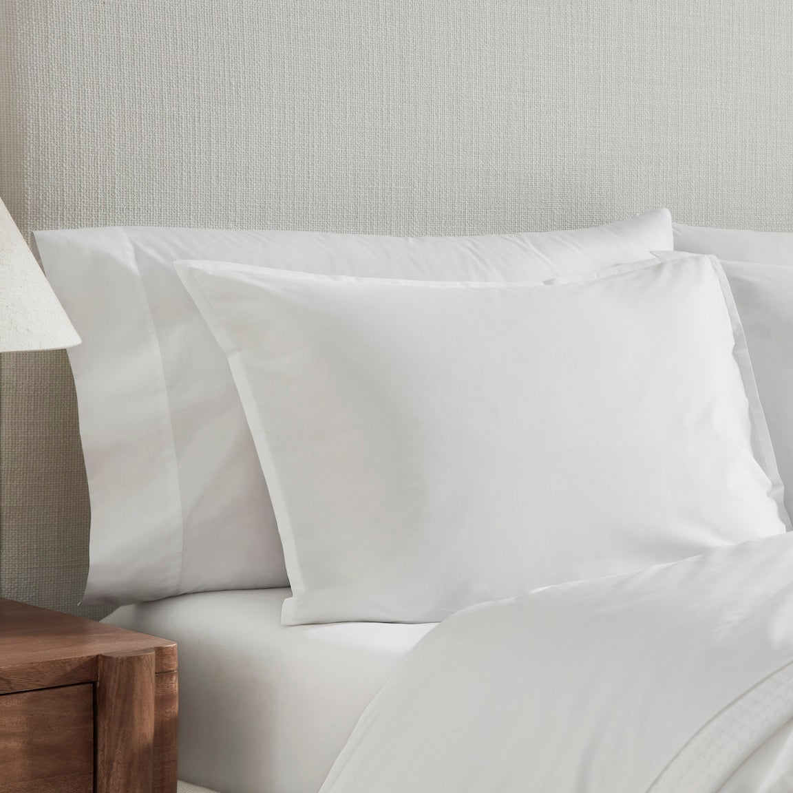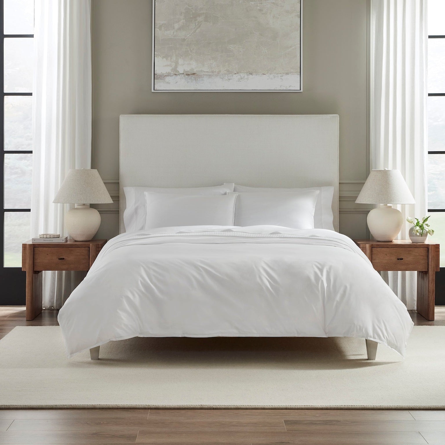 Sferra's Giza 45® Percale Collection is made from the finest cotton in the world. Grown in the fertile valley of the river Nile, Giza 45® is the most soft and luxurious long staple cotton available. Master craftsman in Italy have woven it to its stunningly smooth finish, defying all thread counts. This pristine, luxury percale sheeting is finished with a plain hem and modern, mini-flanges
