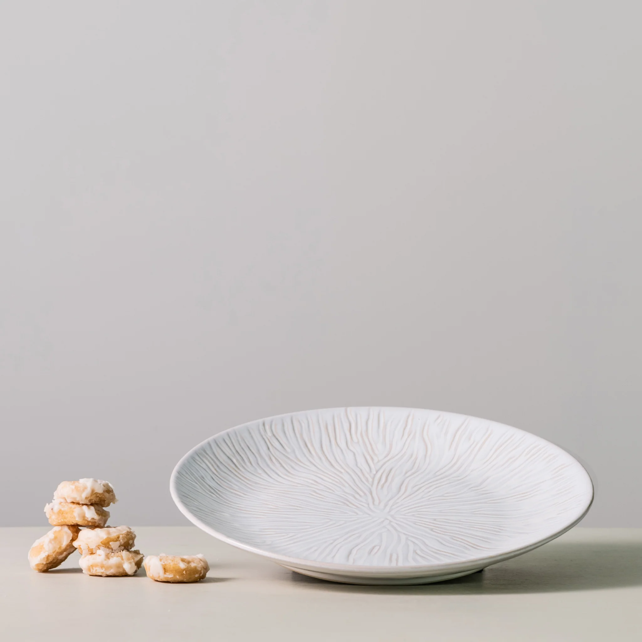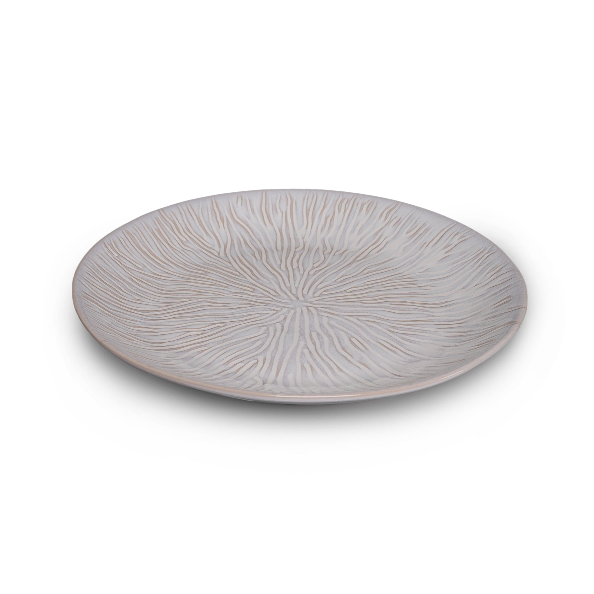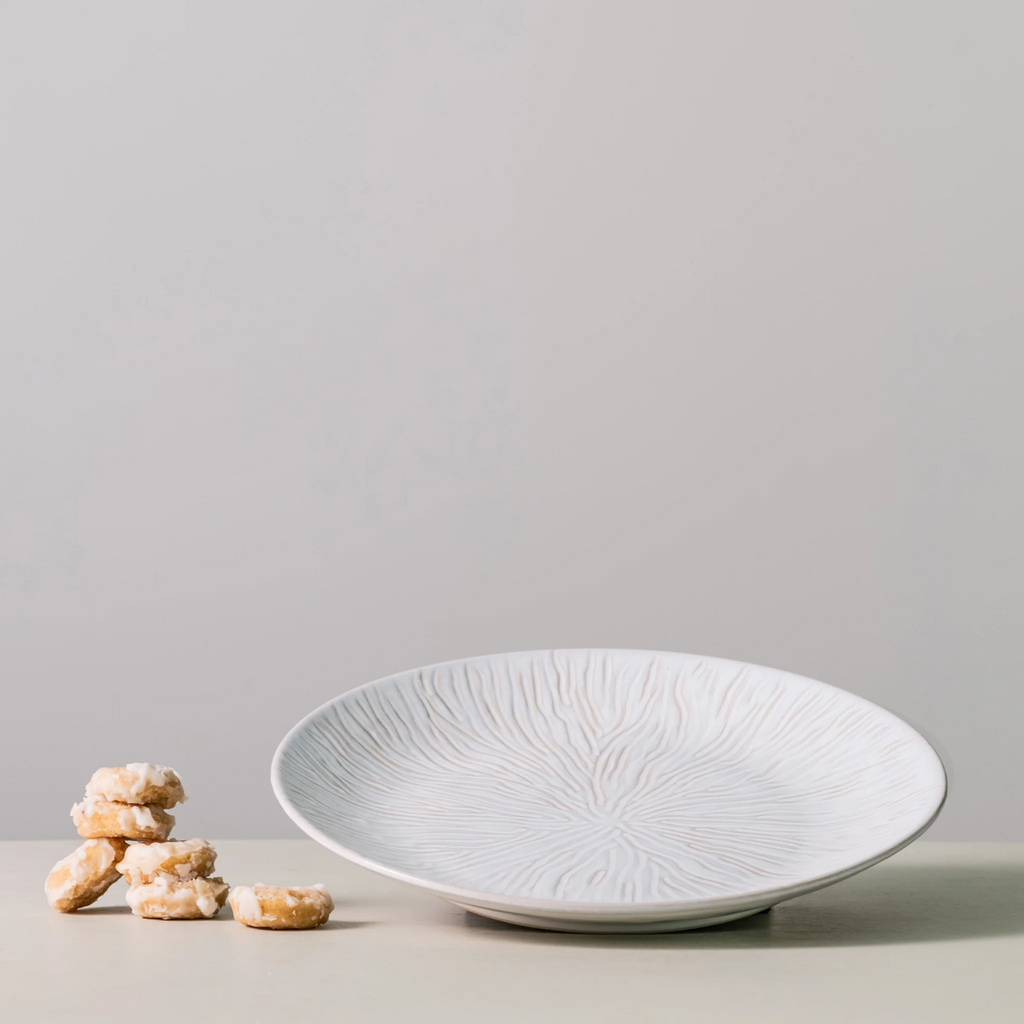Cloud glaze is a milky neutral hue that shows through the intricate pattern of the piece
