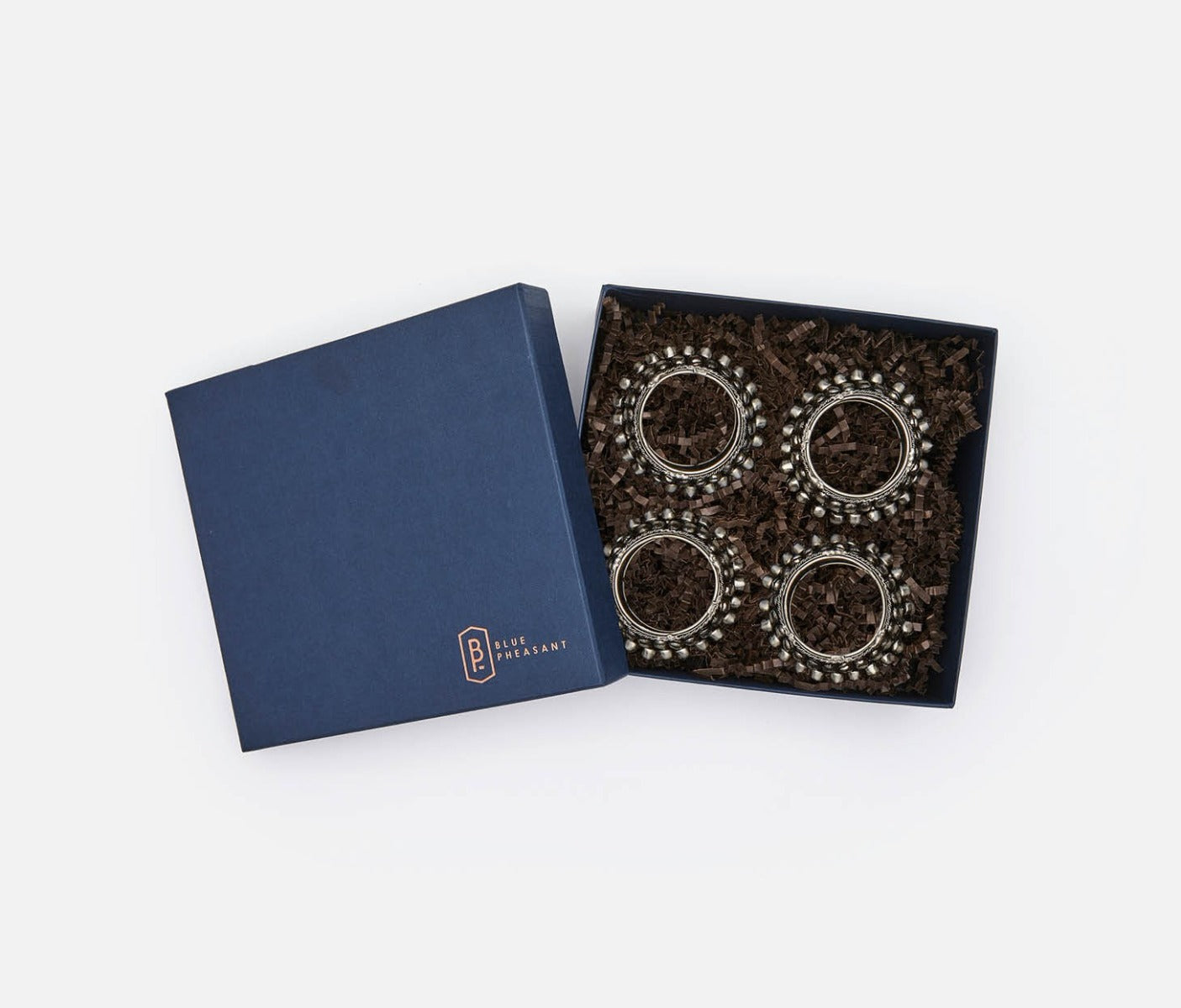 Indra Antiqued Silver Napkin Rings, Set of 4