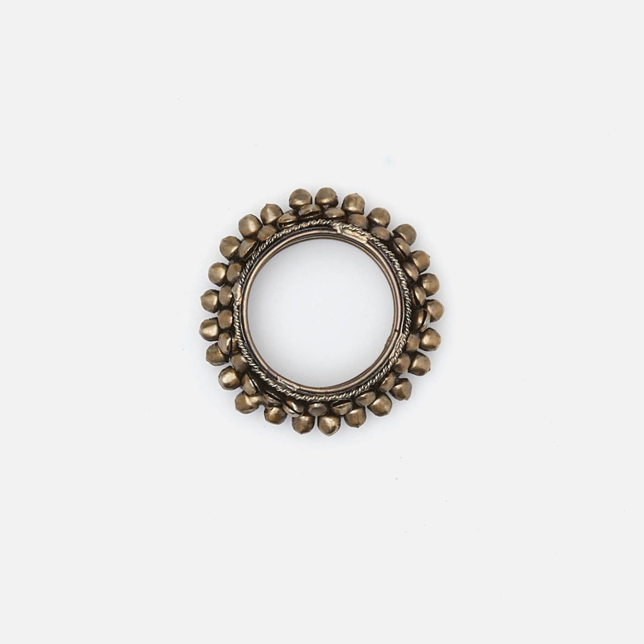 - Iron napkin ring with Indian dance bells and antiqued gold finish