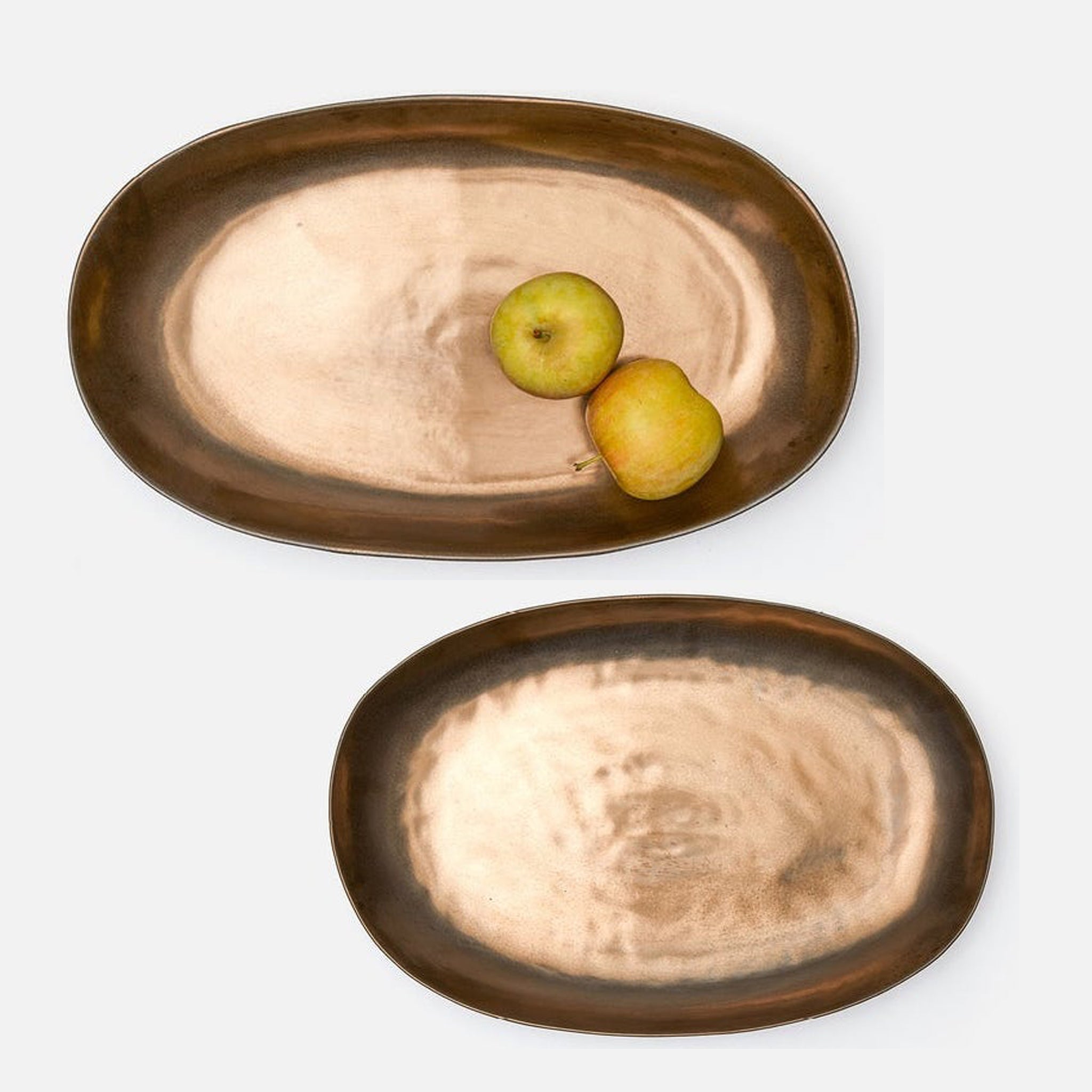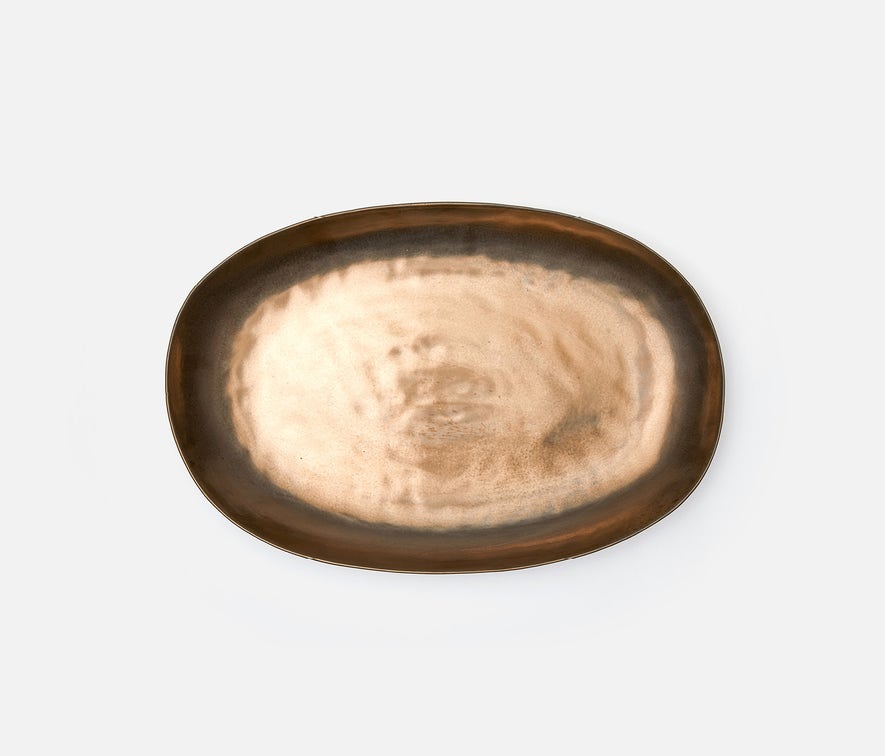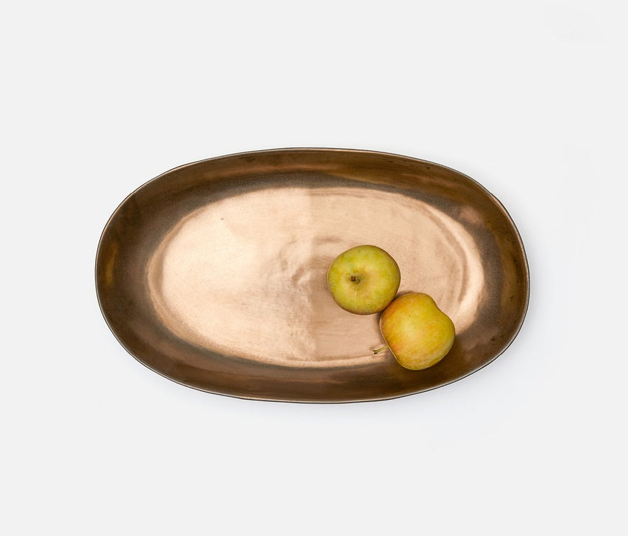 - Antique gold serving platter with a soft silhouette