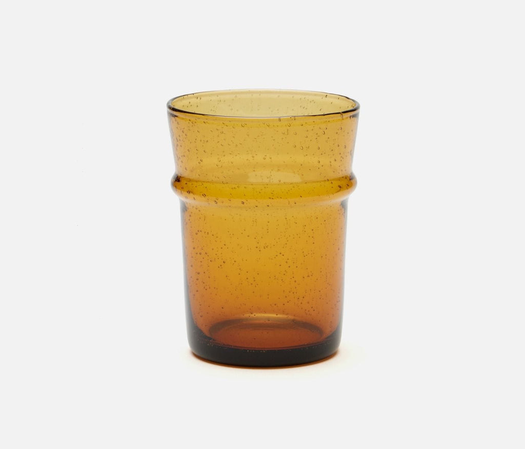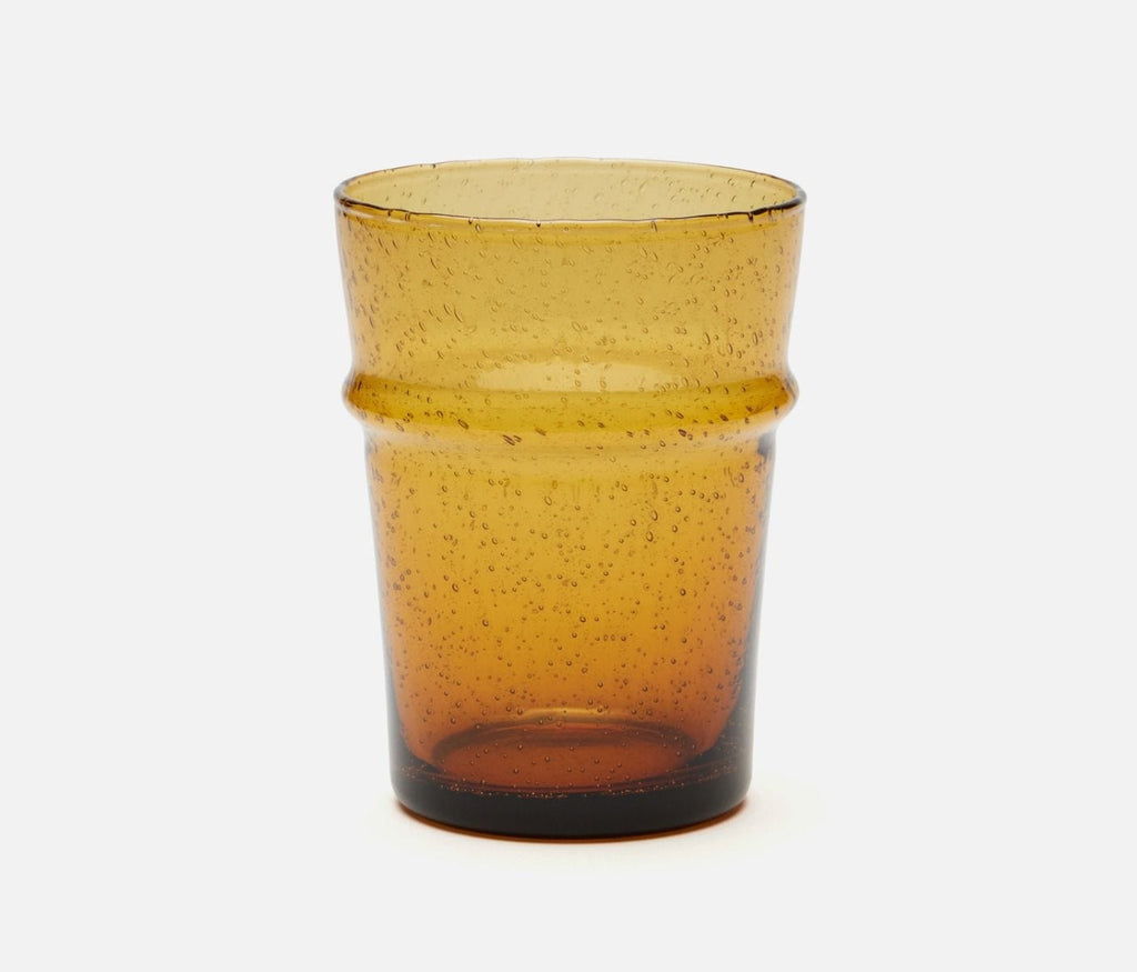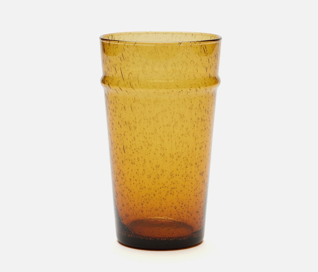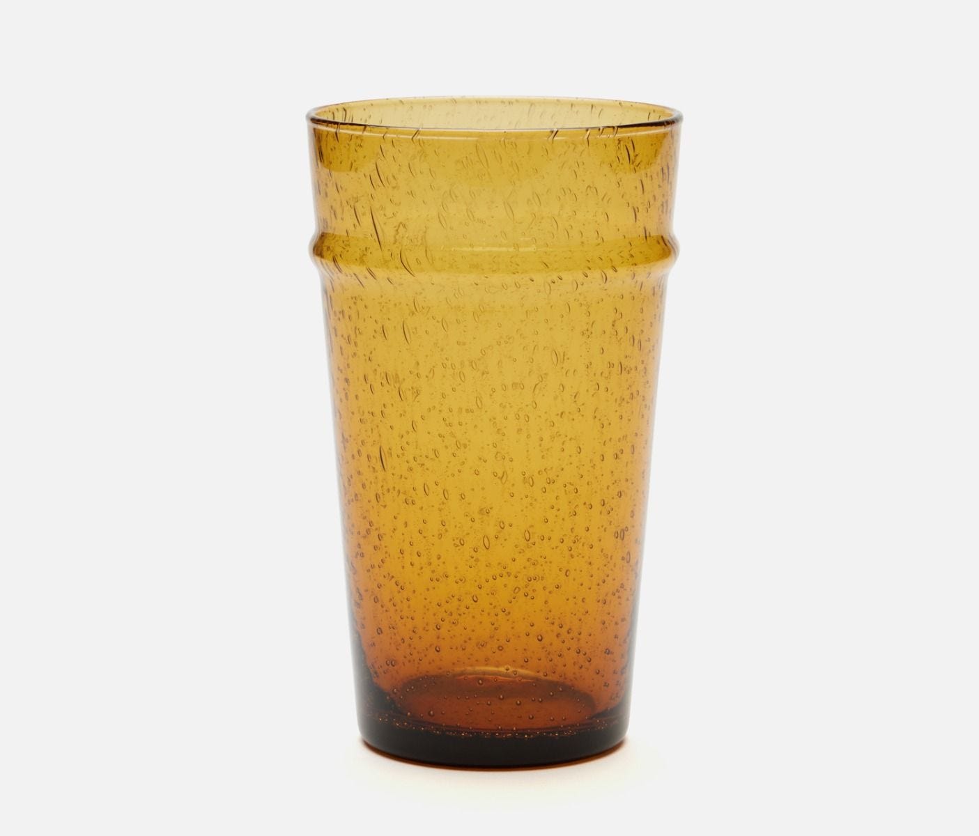 - Hand-blown bubble glass in an amber hue designed as a more refined take on the classic English pint glass, made for all day, everyday use