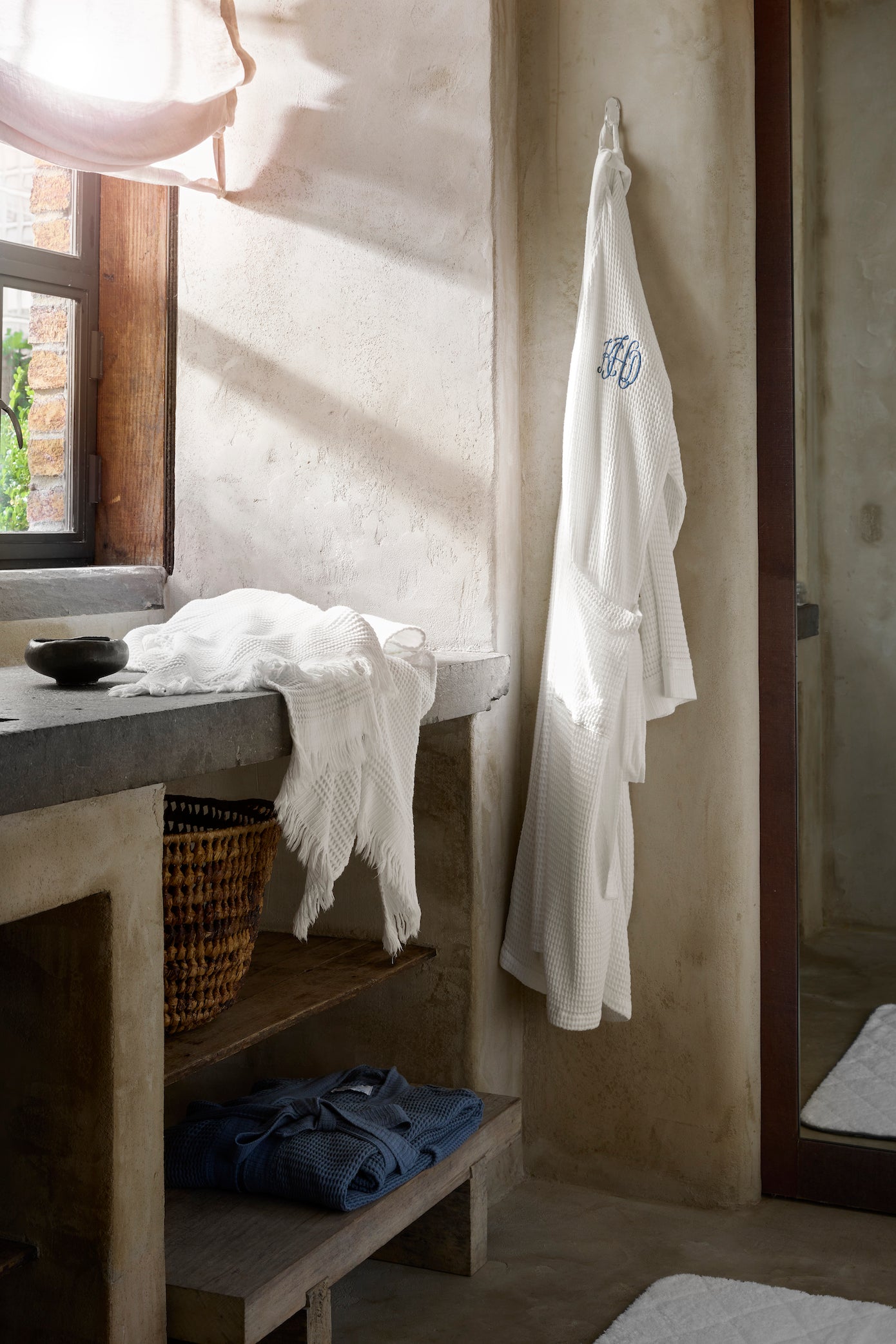 - Turkish waffle weave bath robe that is uniquely soft and supple.