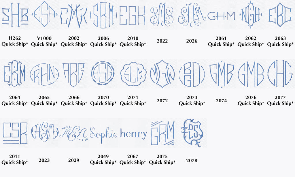 - All other monogram styles will ship within 4 - 6 week lead time.