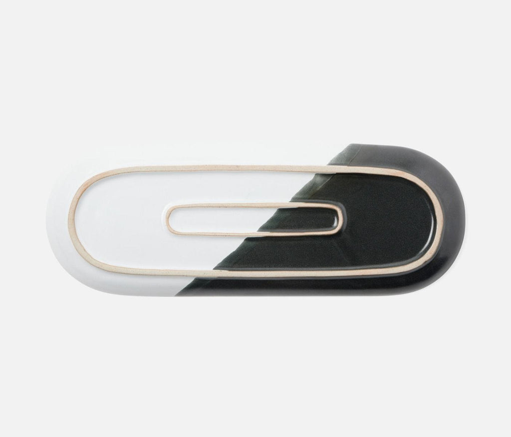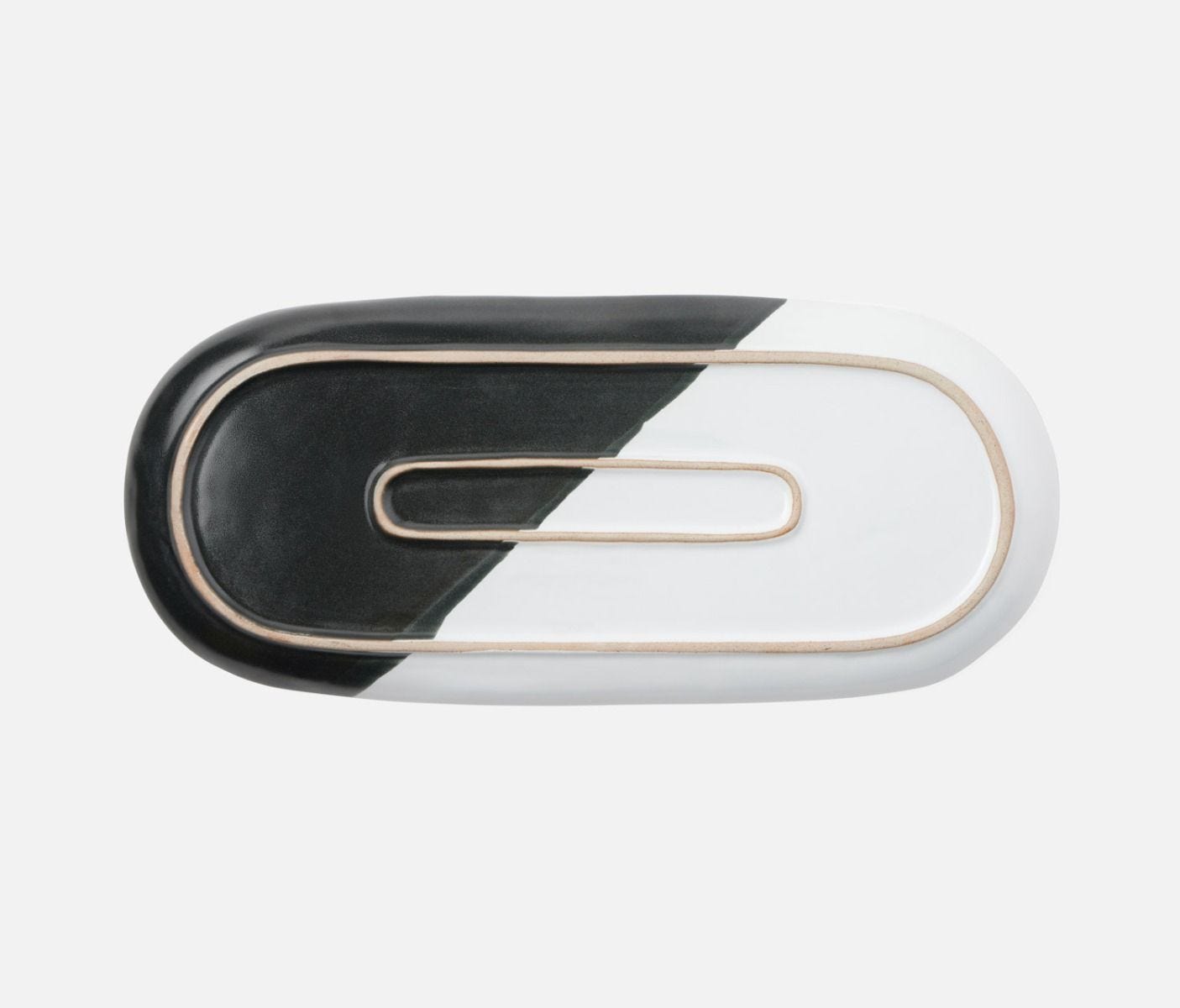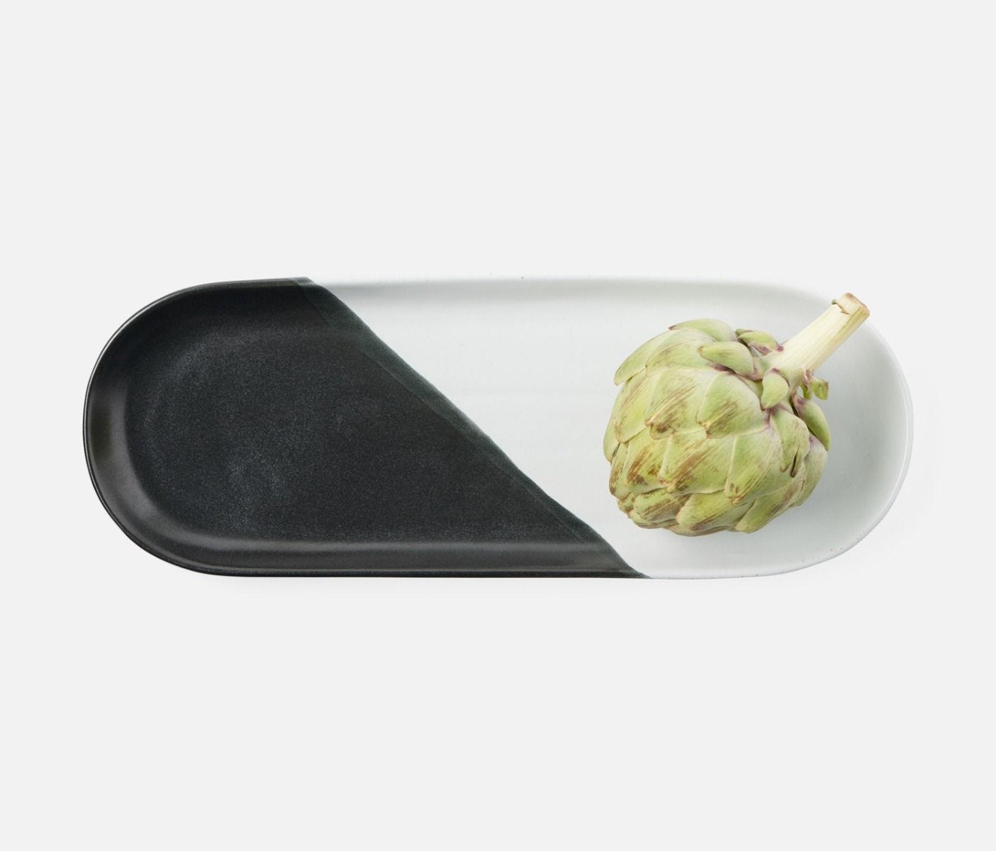 • Stoneware oblong serving platters with black and white glaze