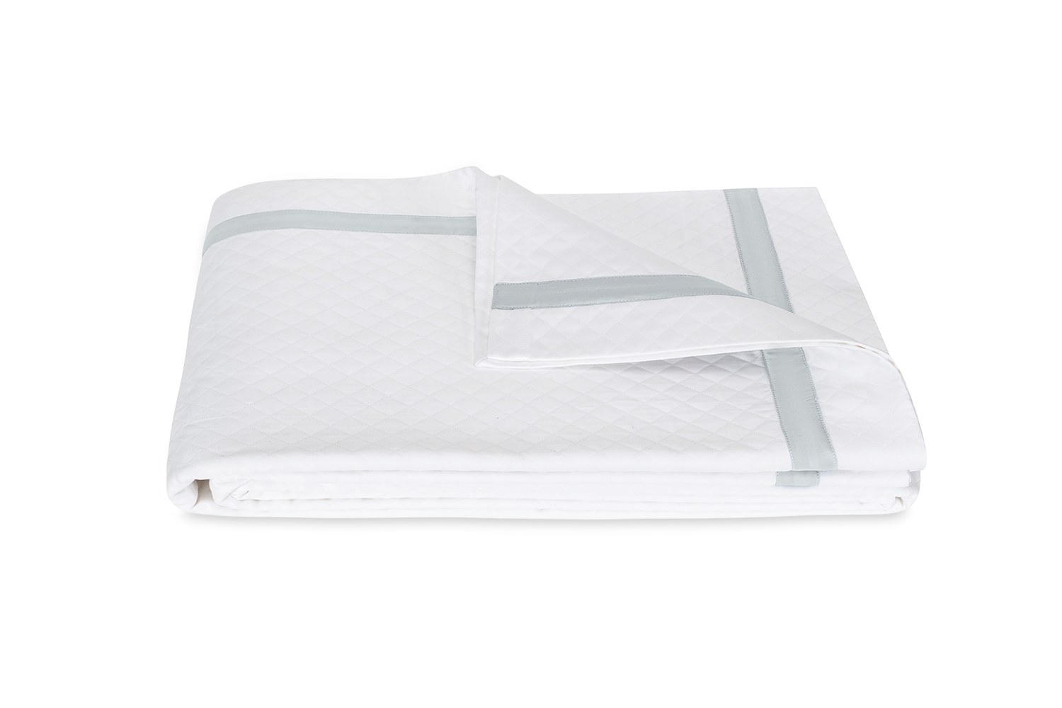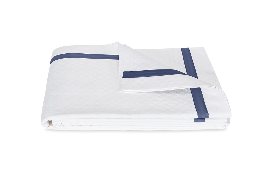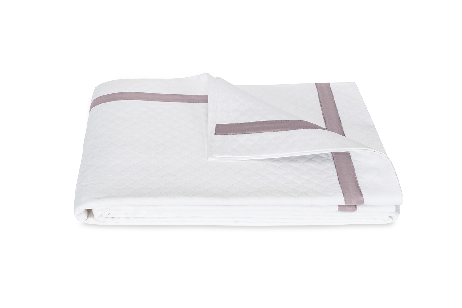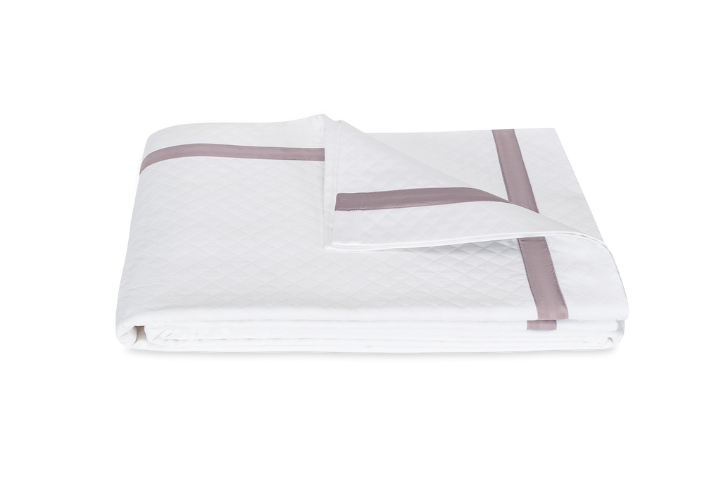 Matouk's iconic Lowell style adorns coverlets and shams on our classic Petra matelassé