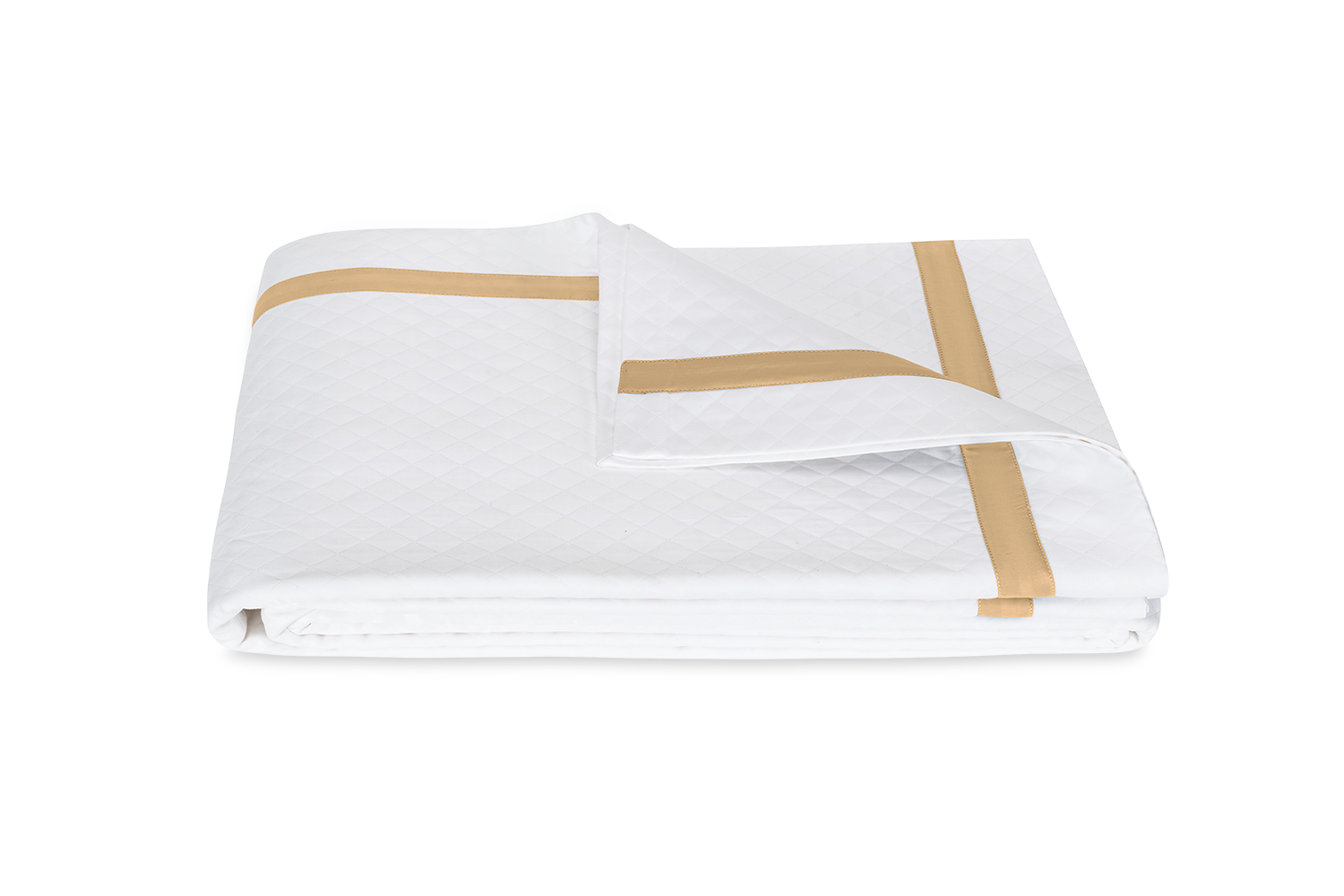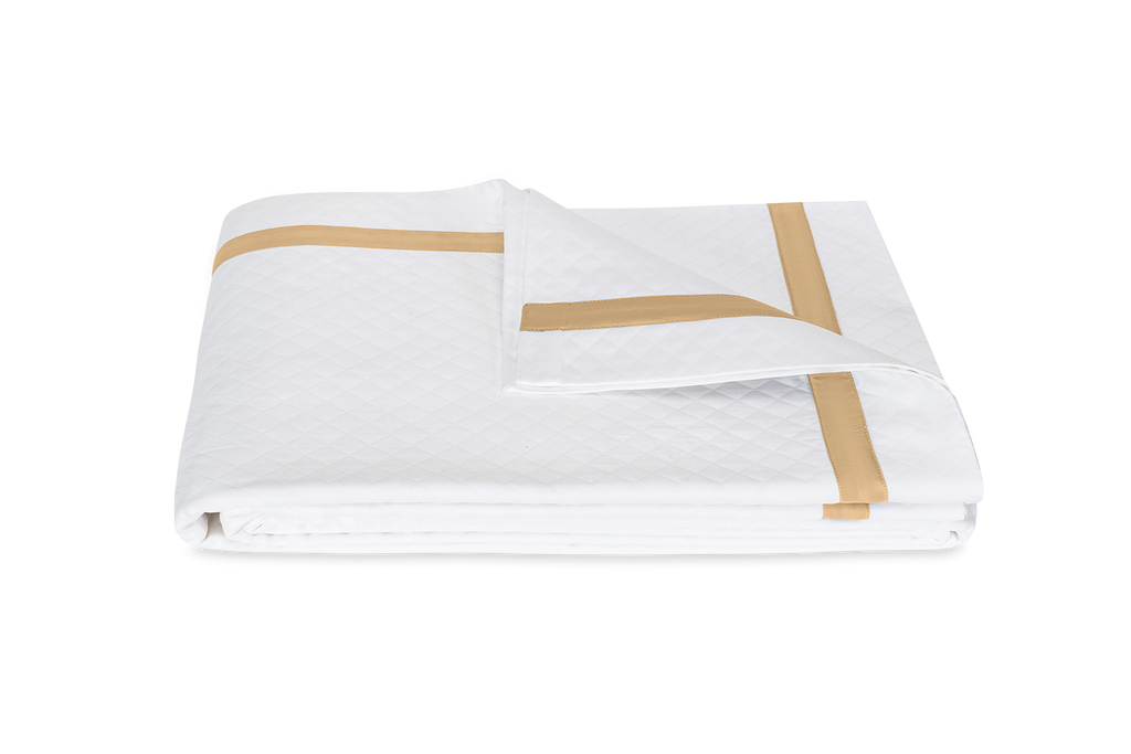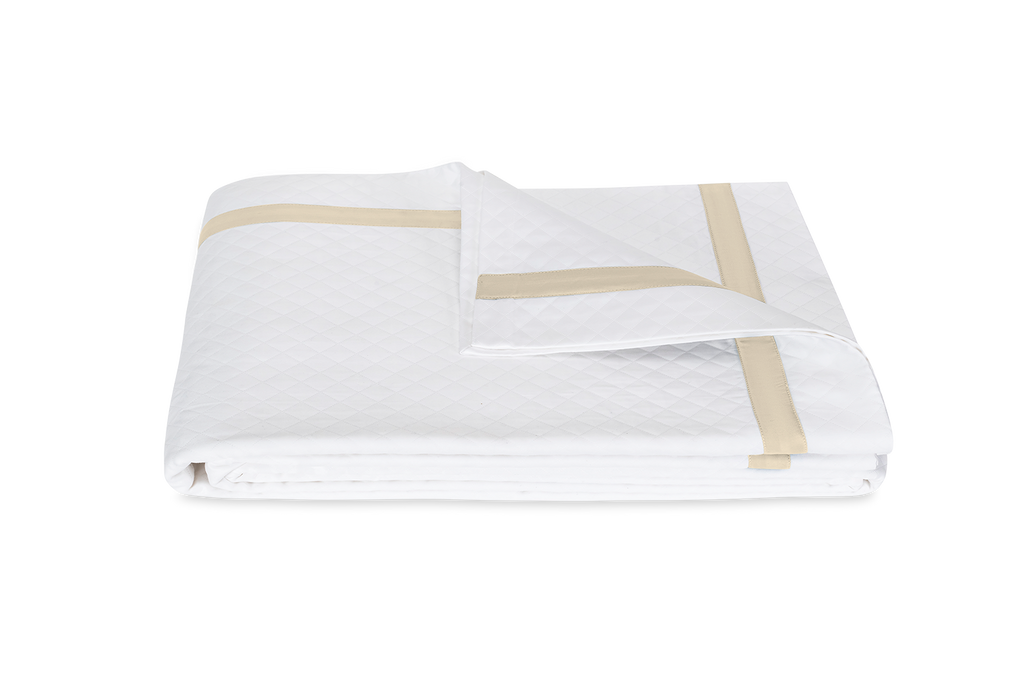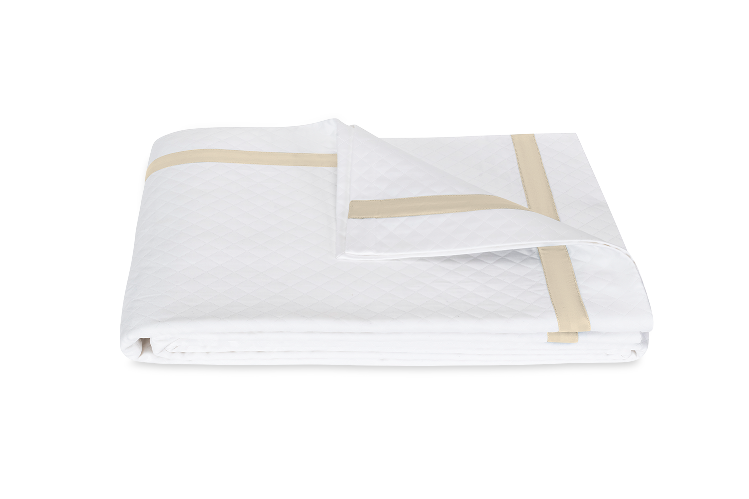 Matouk's iconic Lowell style adorns coverlets and shams on our classic Petra matelassé