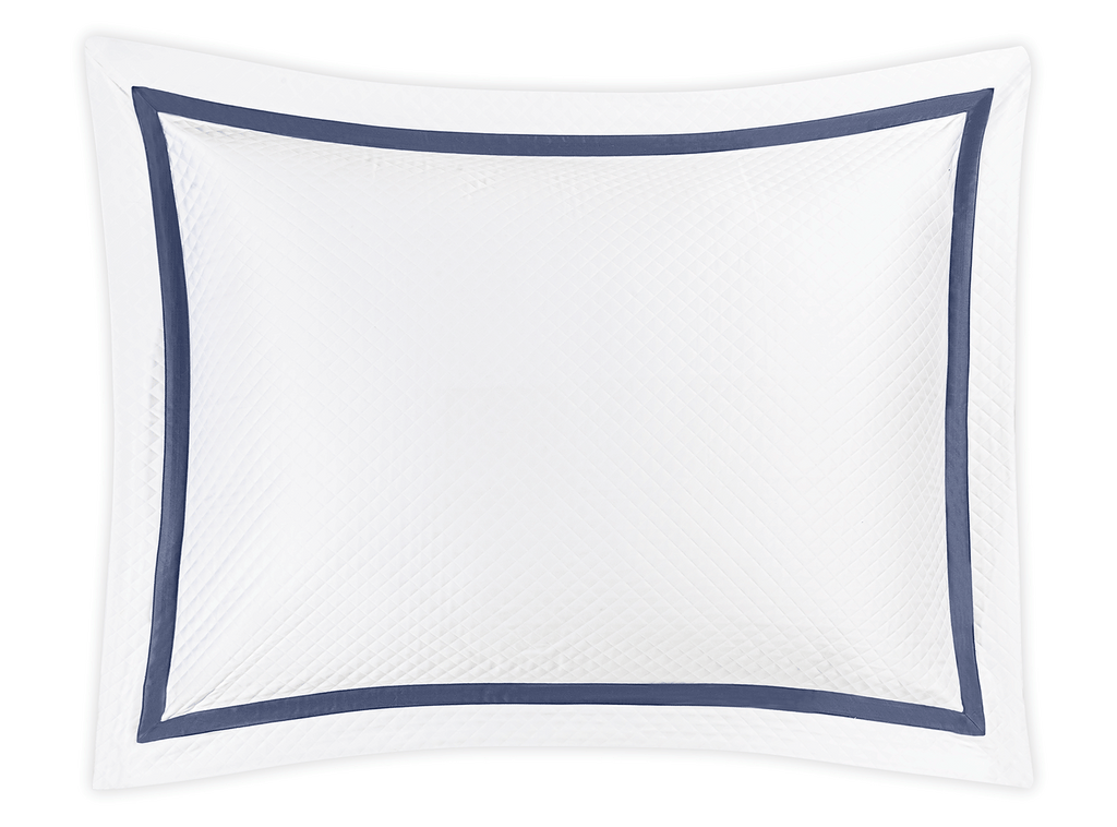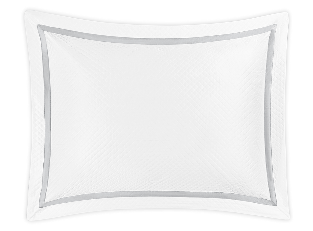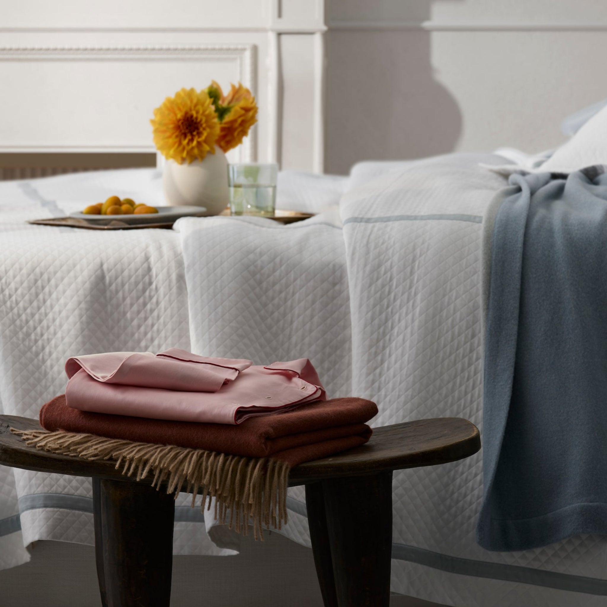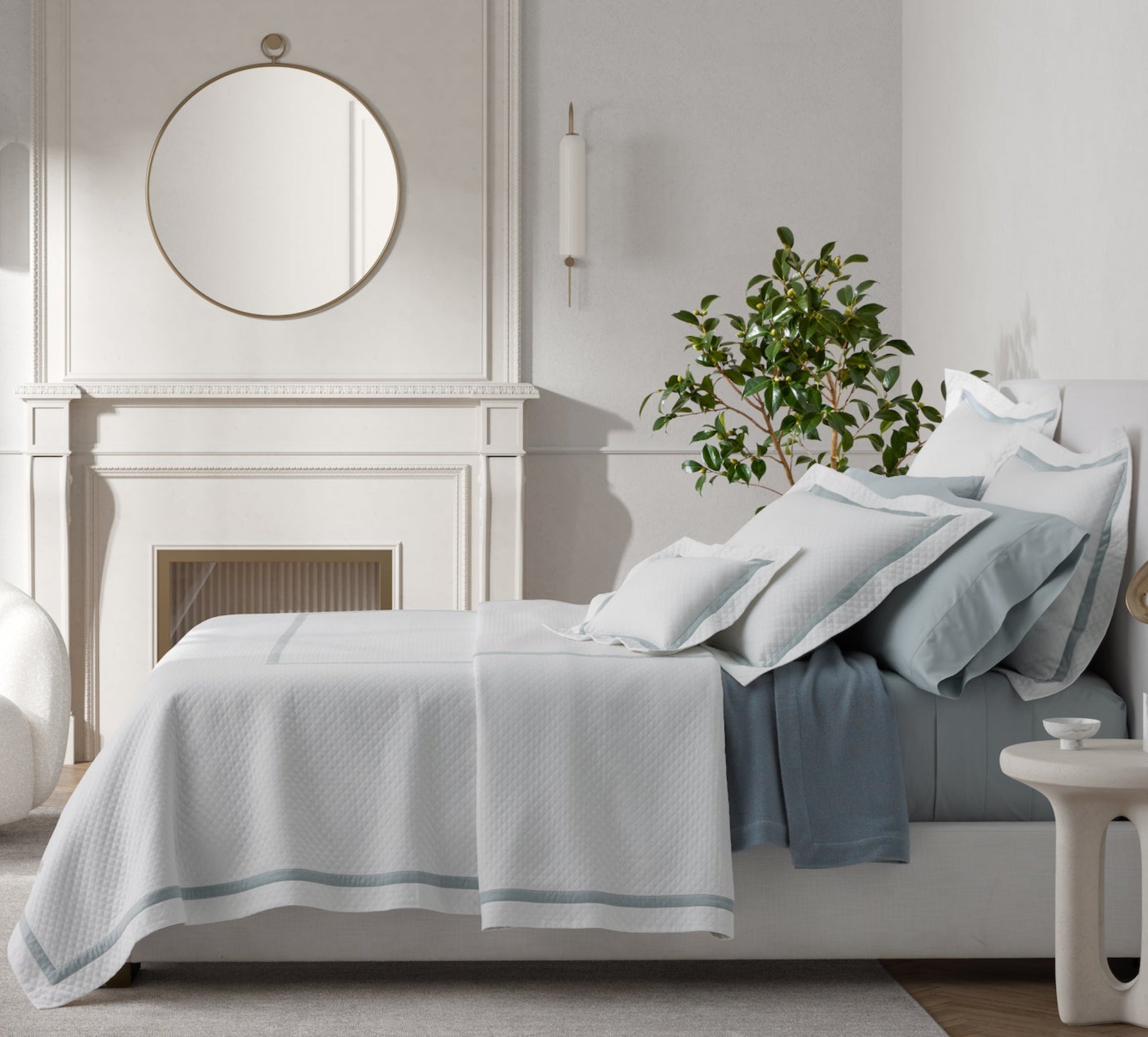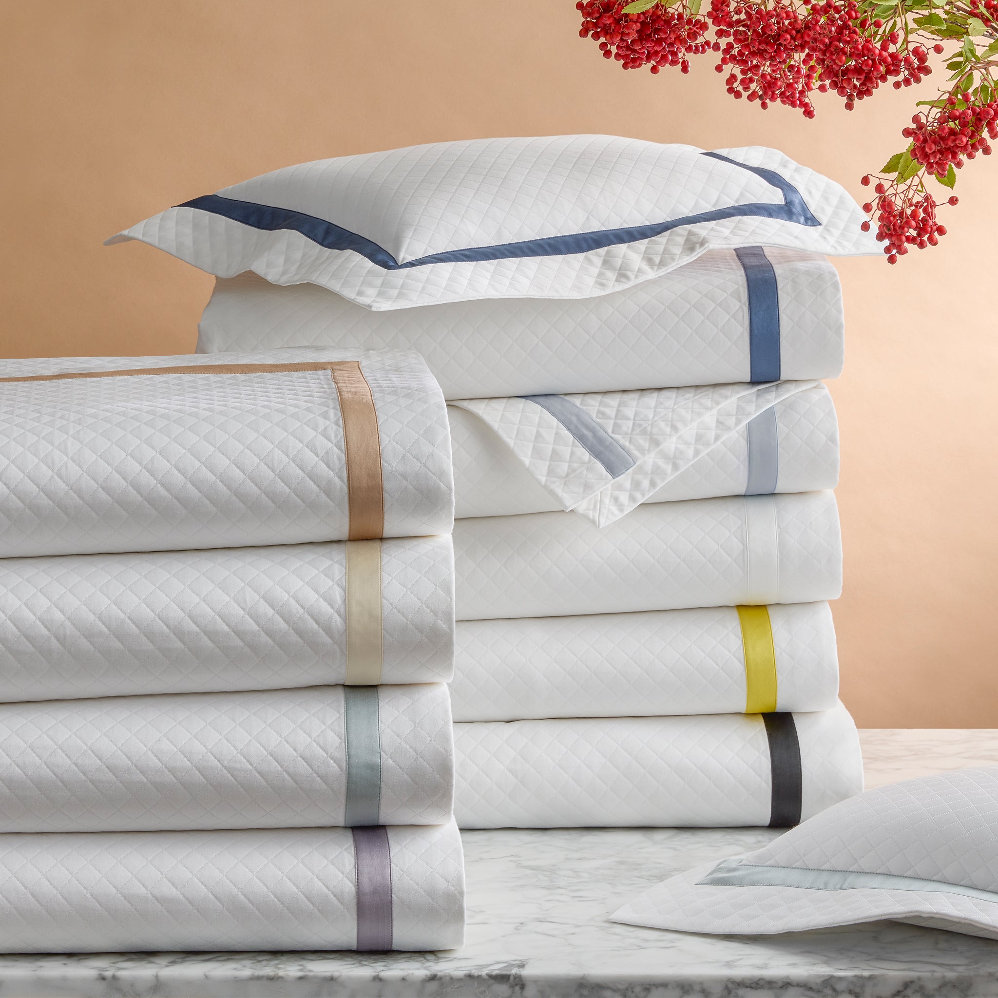 Matouk's iconic Lowell style adorns coverlets and shams on our classic Petra matelassé