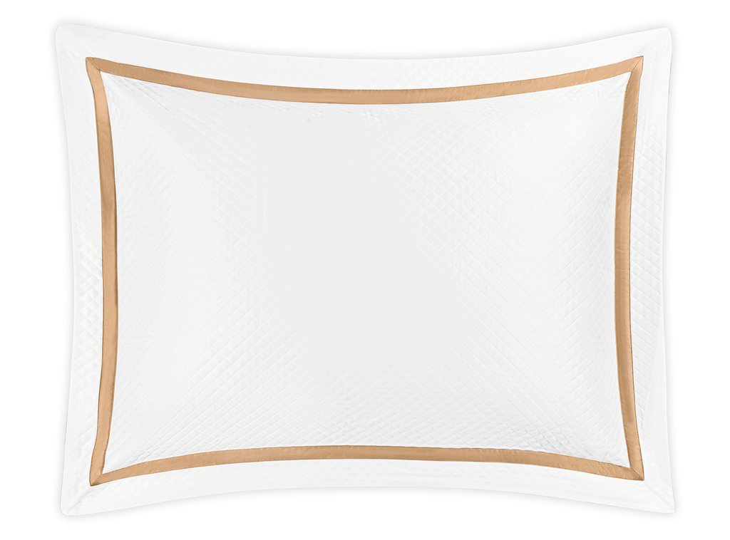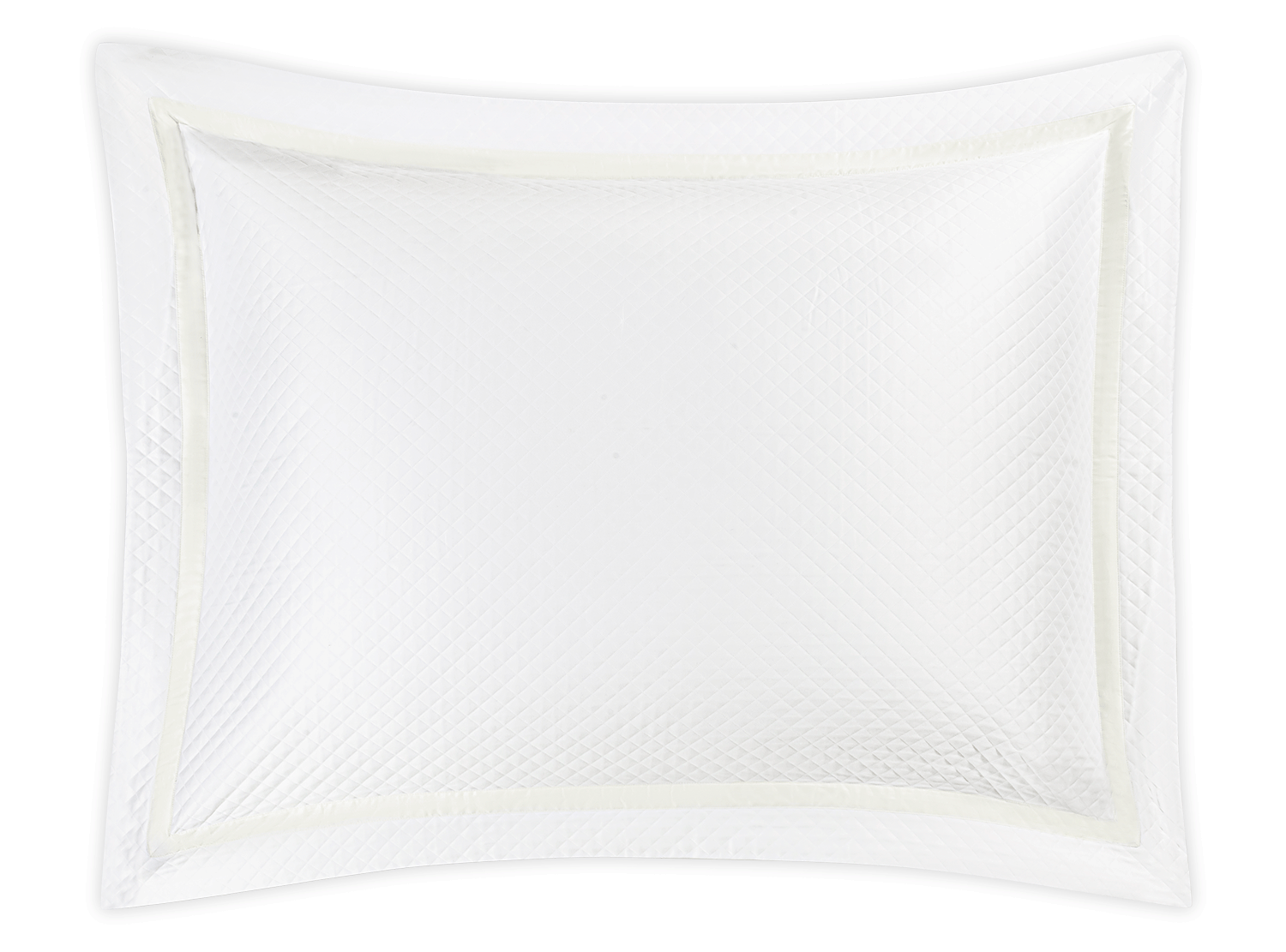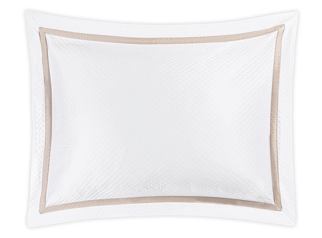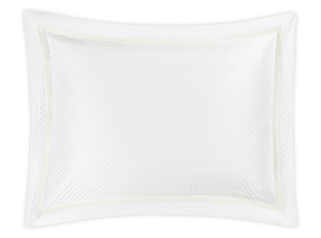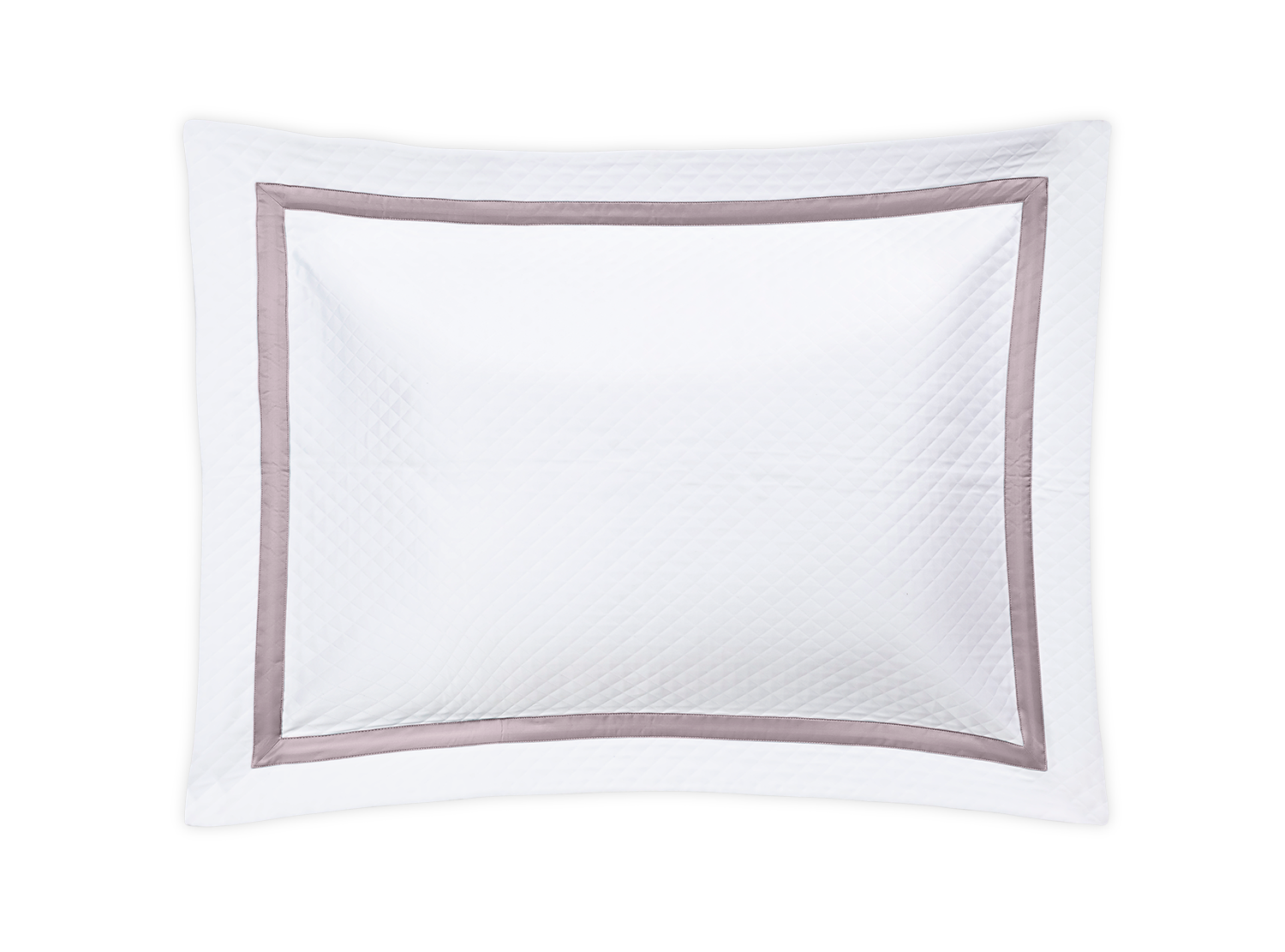 Matouk's iconic Lowell style adorns coverlets and shams on our classic Petra matelassé