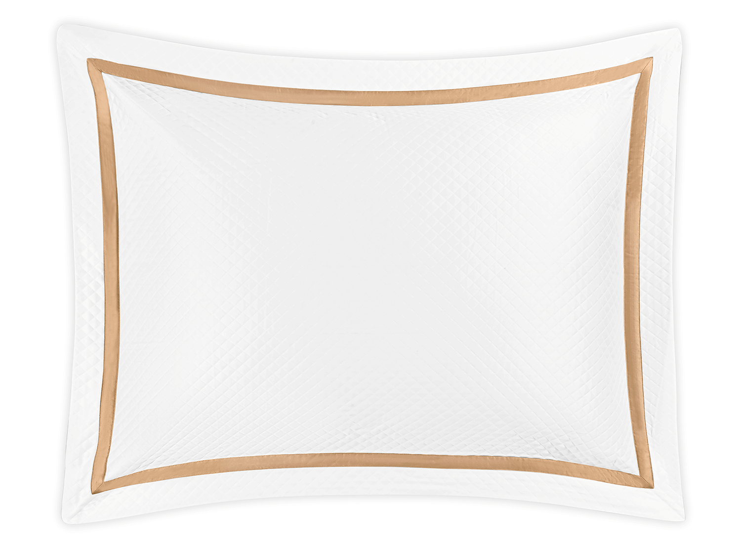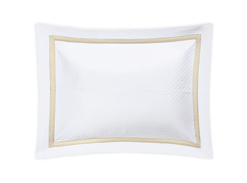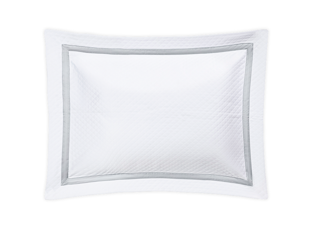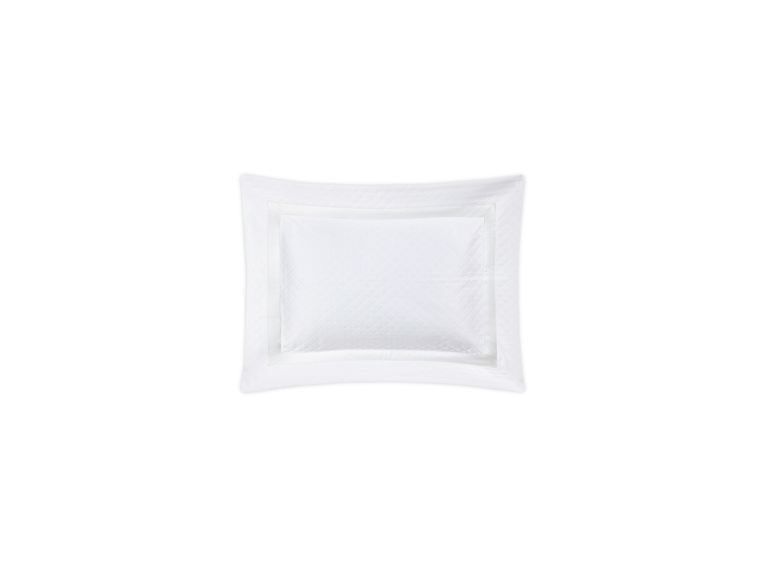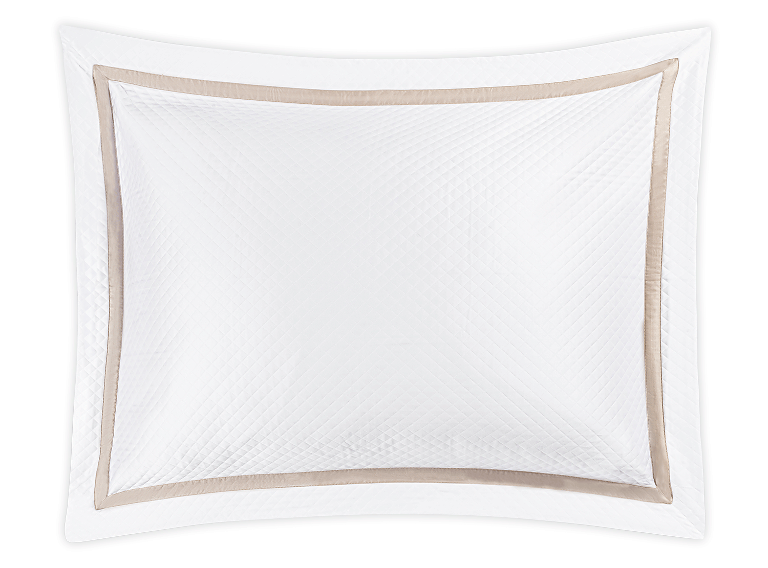 Matouk's iconic Lowell style adorns coverlets and shams on our classic Petra matelassé