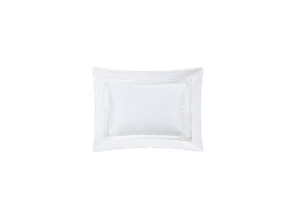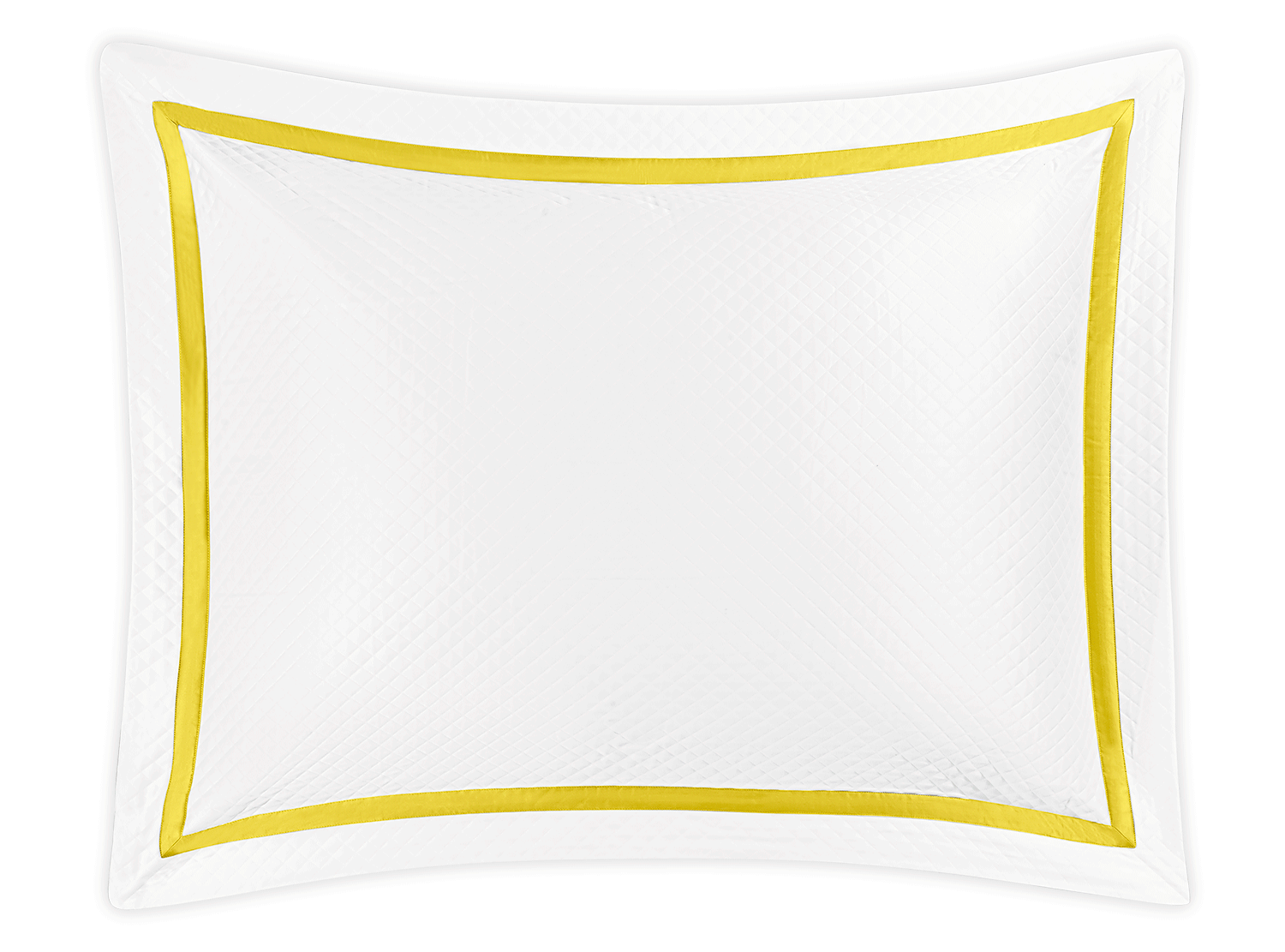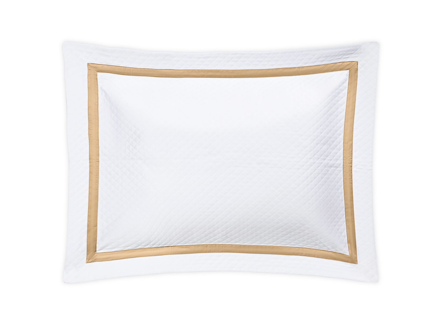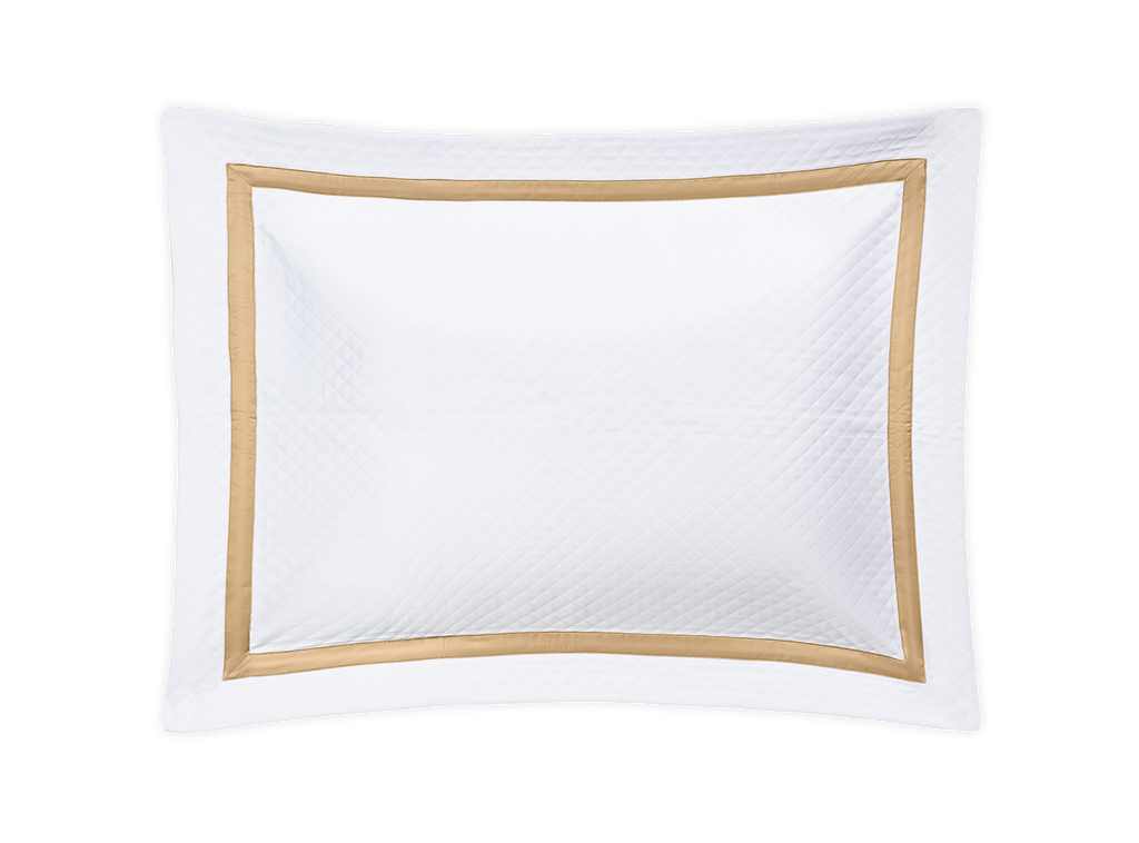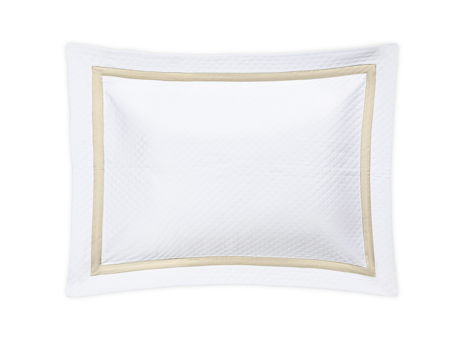 Matouk's iconic Lowell style adorns coverlets and shams on our classic Petra matelassé