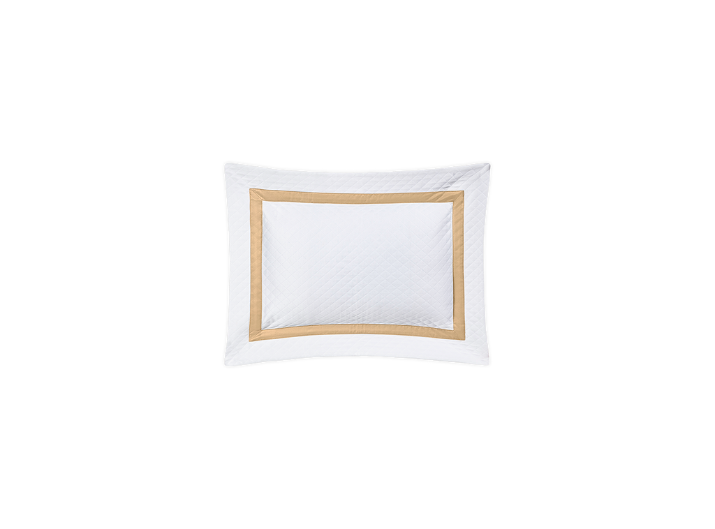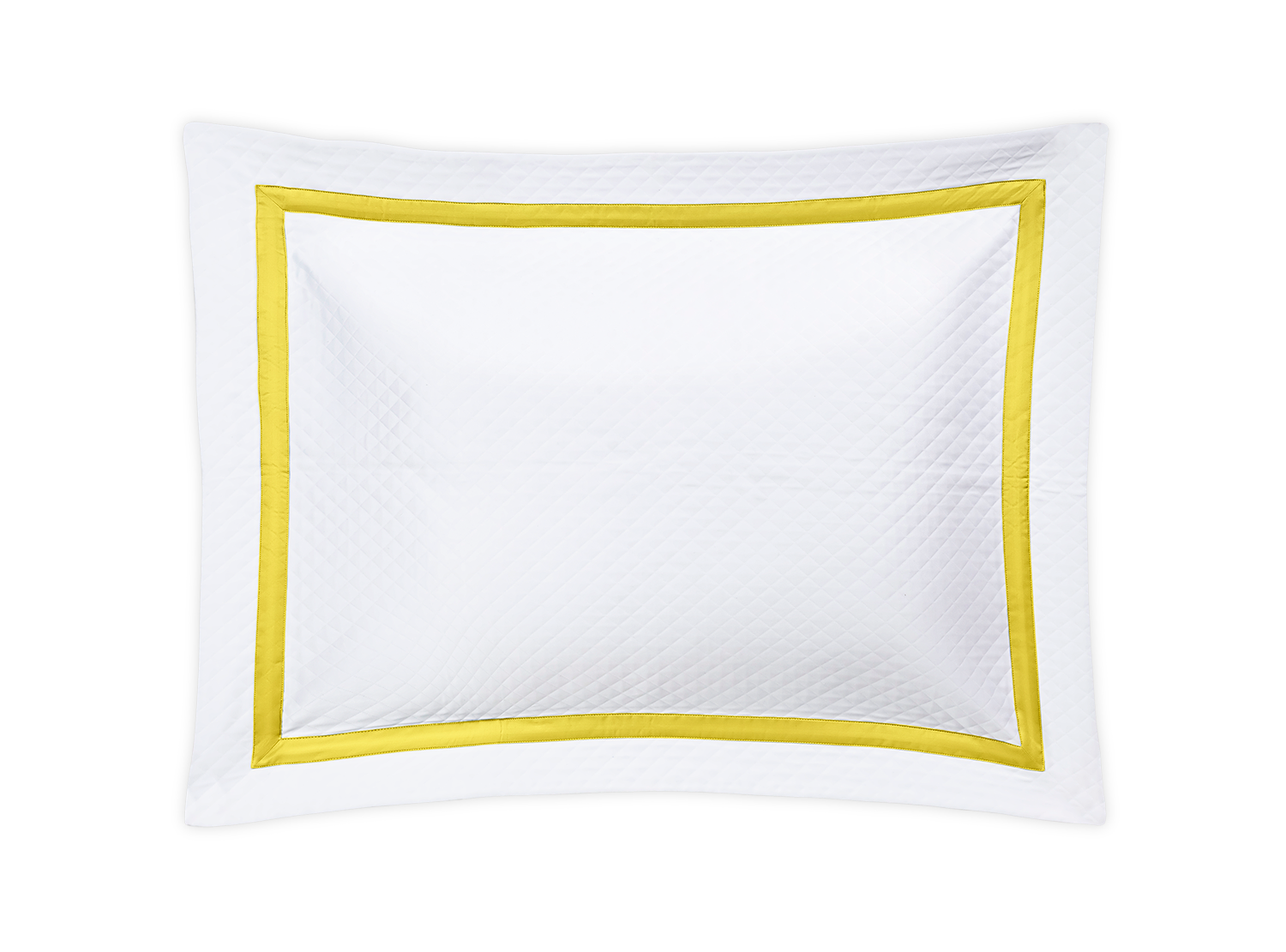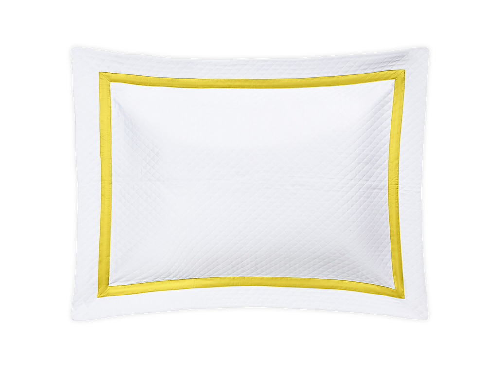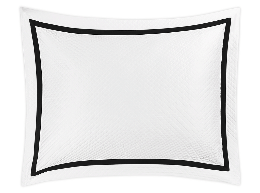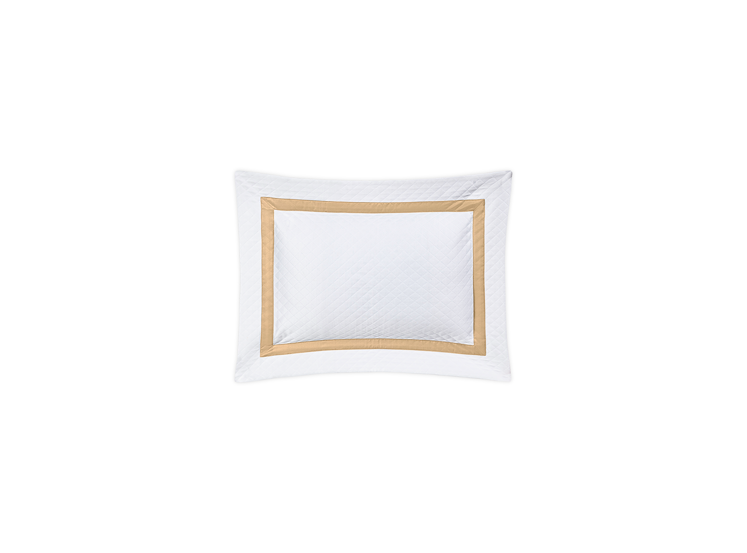 Matouk's iconic Lowell style adorns coverlets and shams on our classic Petra matelassé