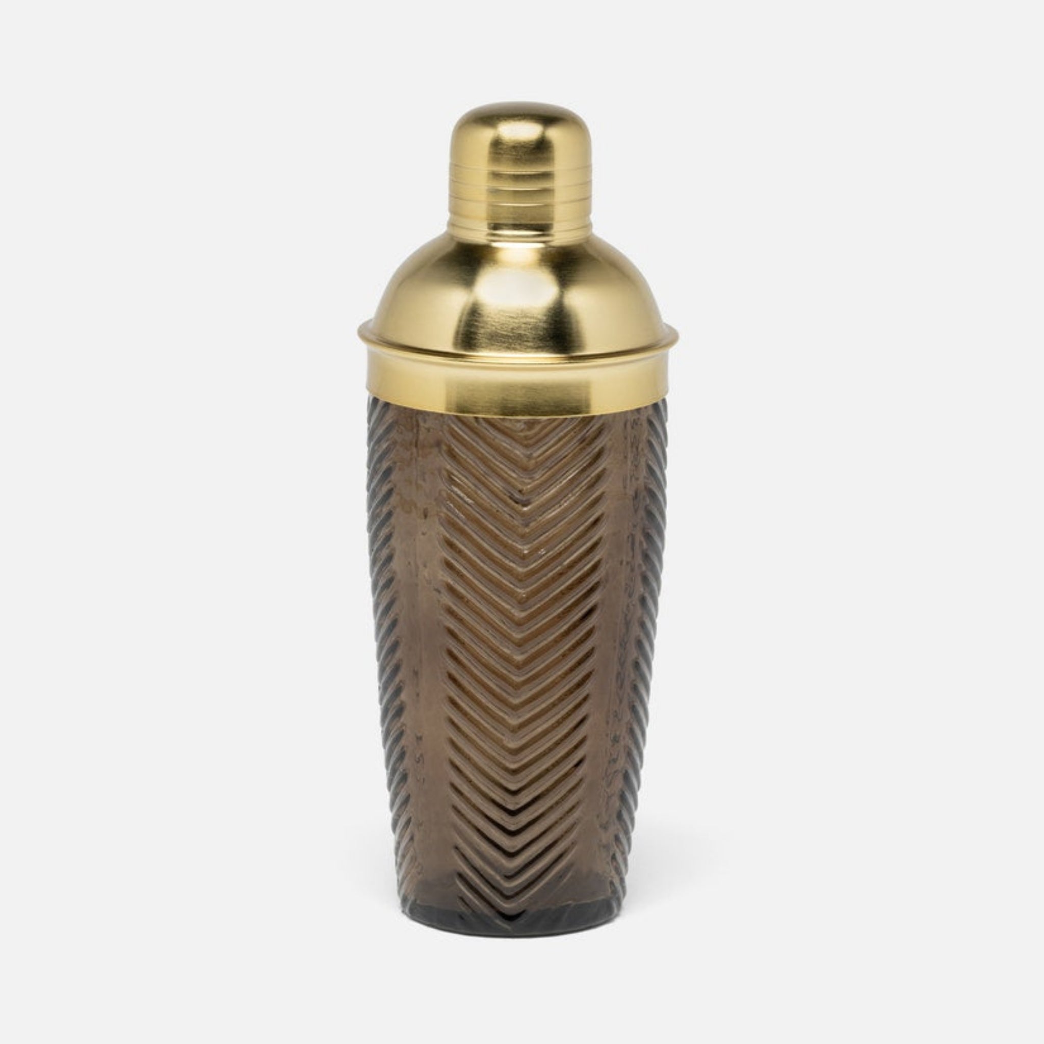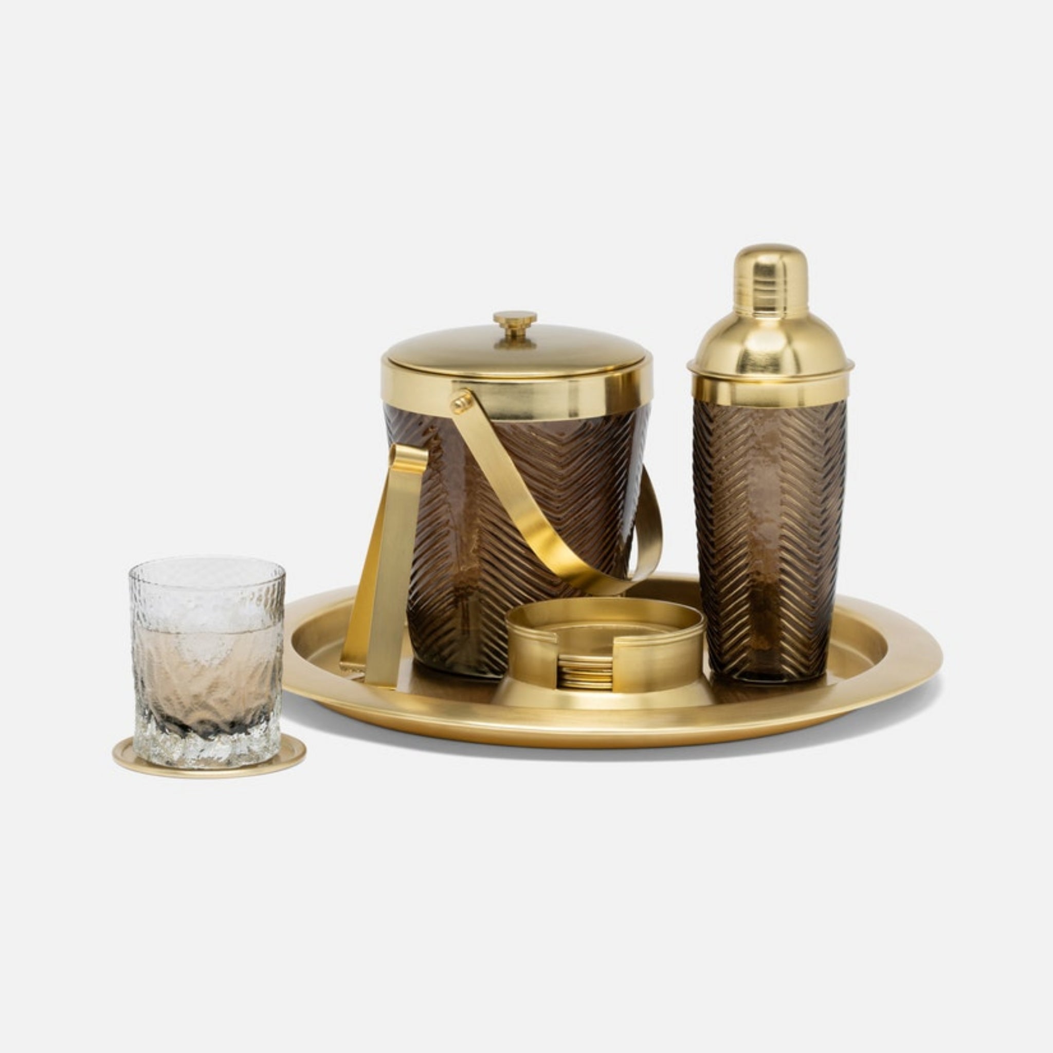 - Smoke Pressed Glass/Brass barware