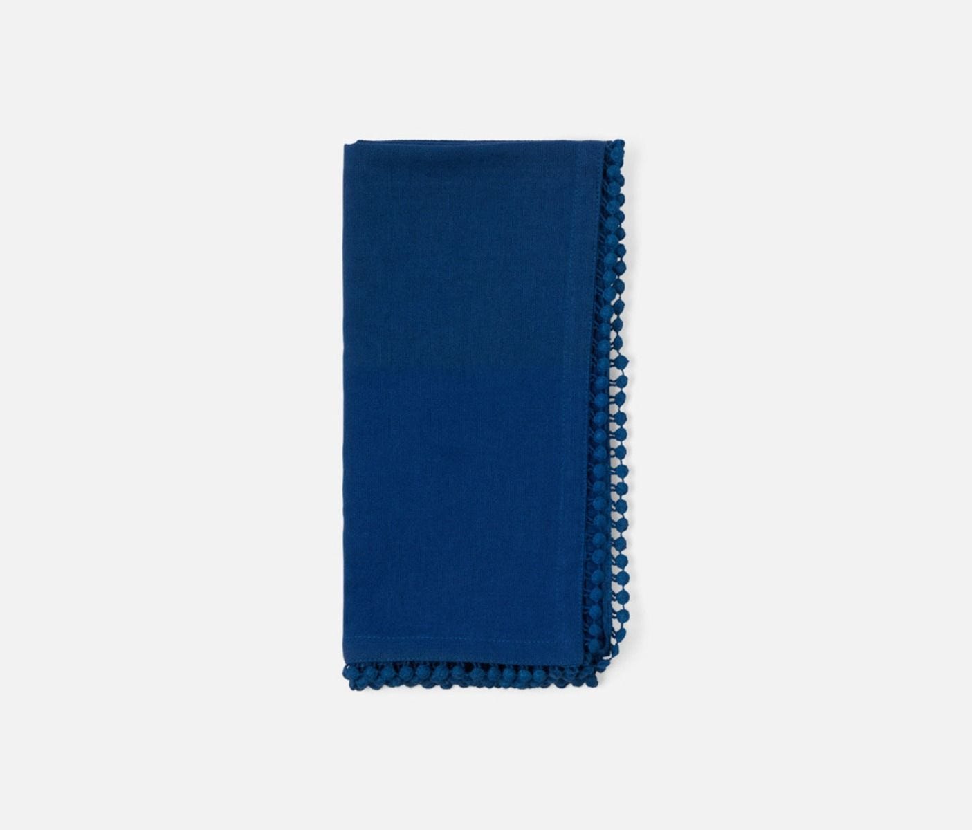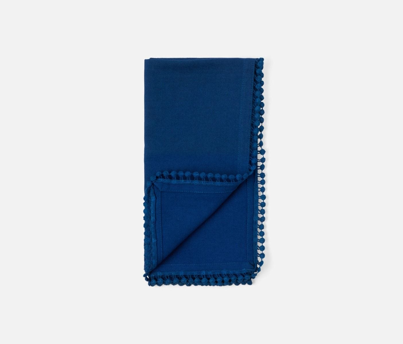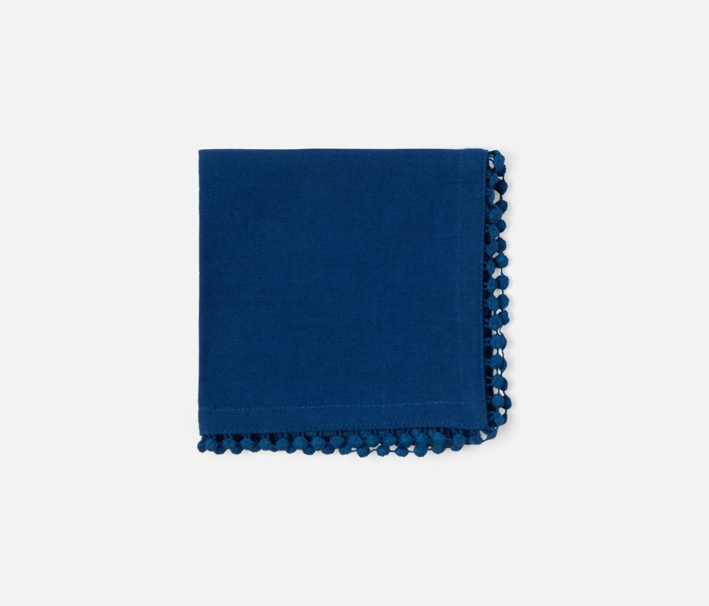 - Cotton canvas cloth napkin with pom pom border in classic blue color