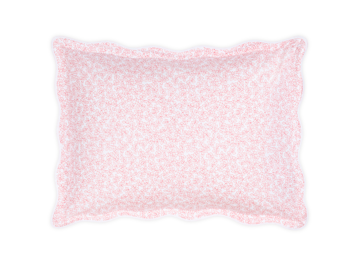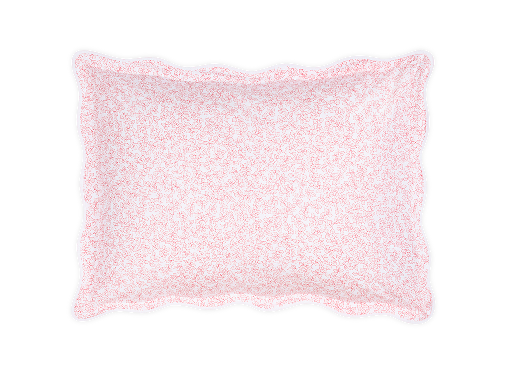 Small, closely rendered leaves printed on luxurious Luca percale finish. Finished with a subtle wave scallop edge.