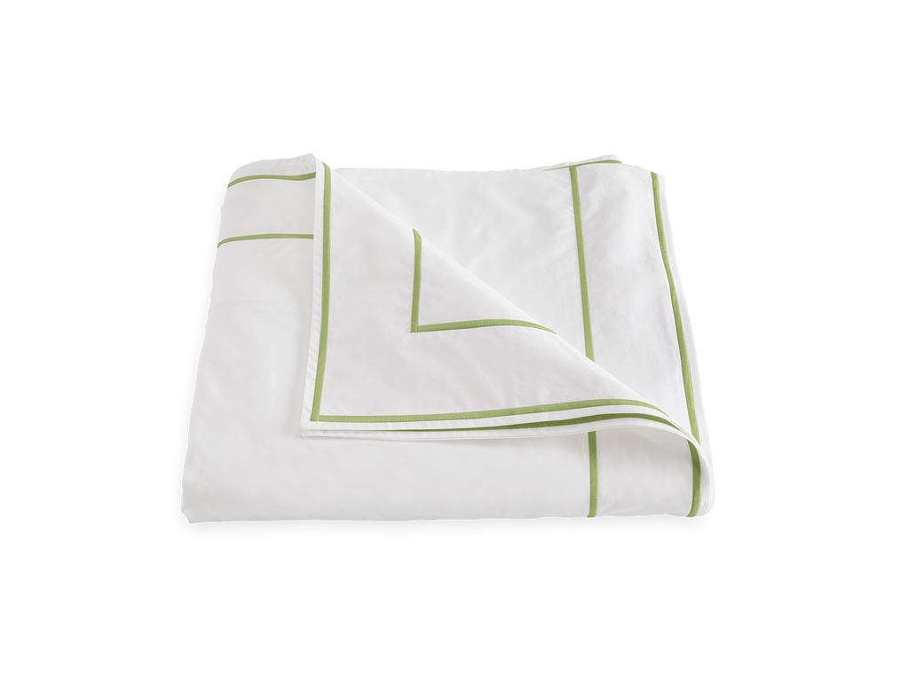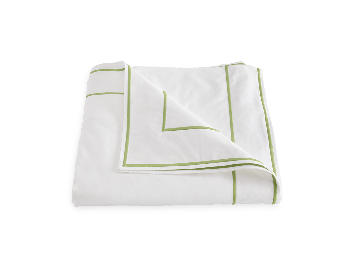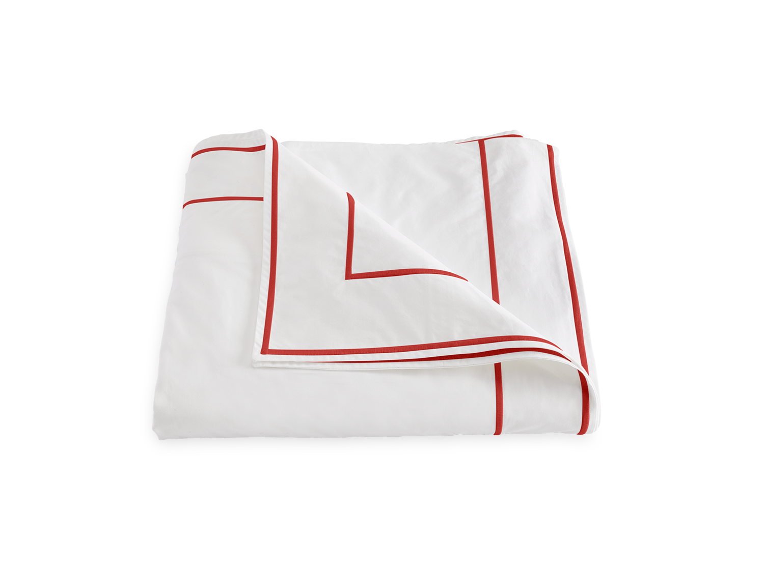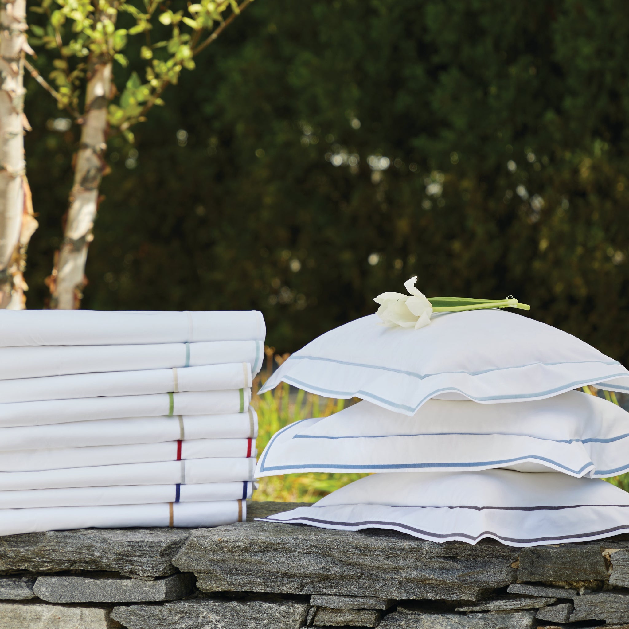 White Luca percale finished with two rows of satin stitch threads in choice of colors to complement your bed