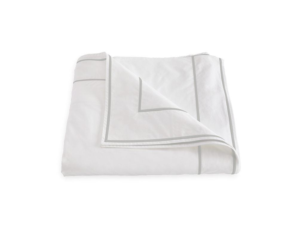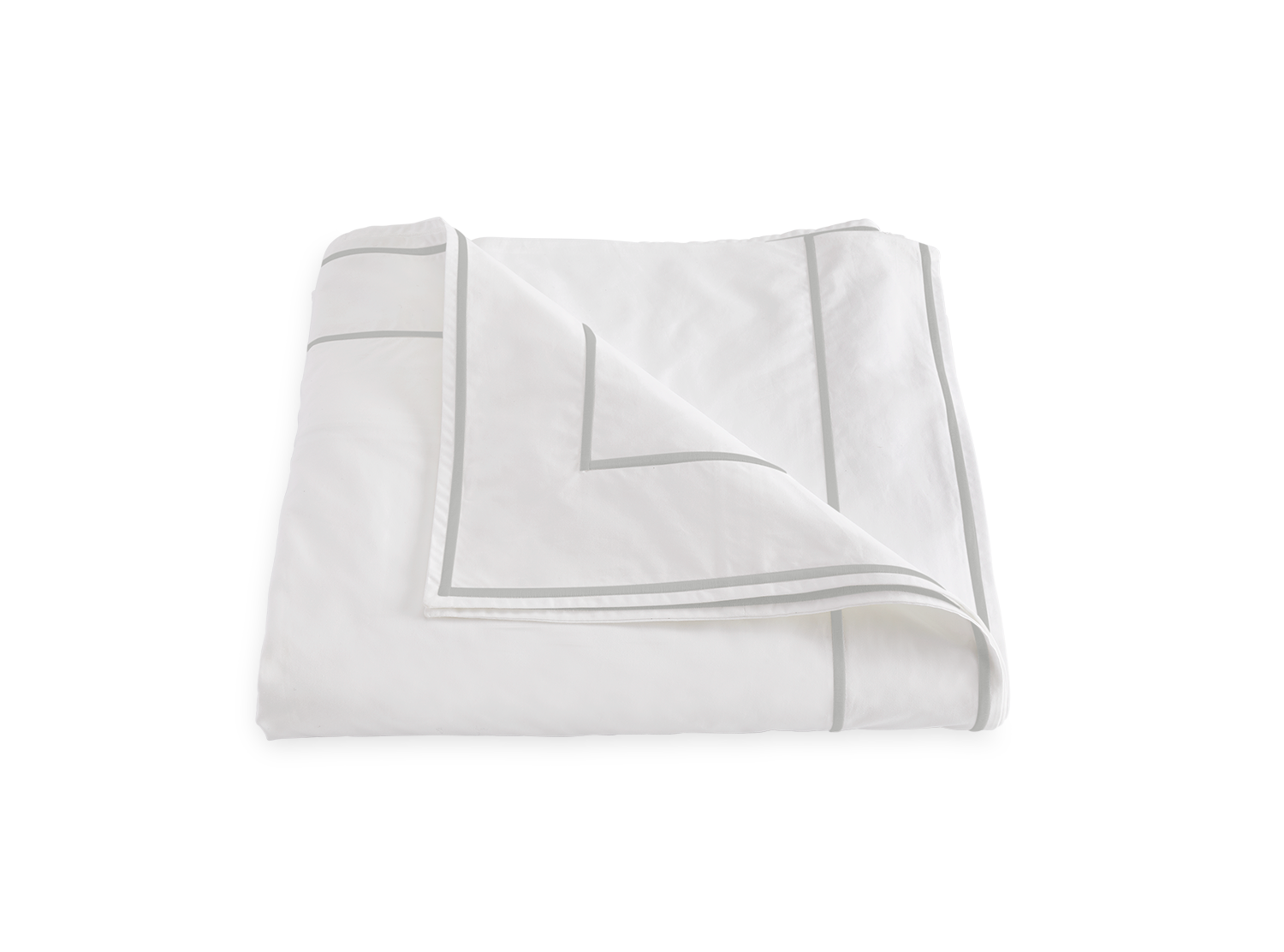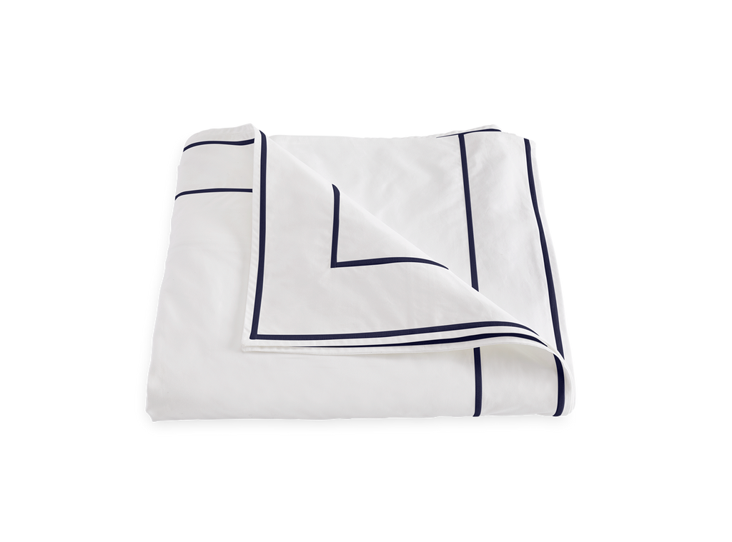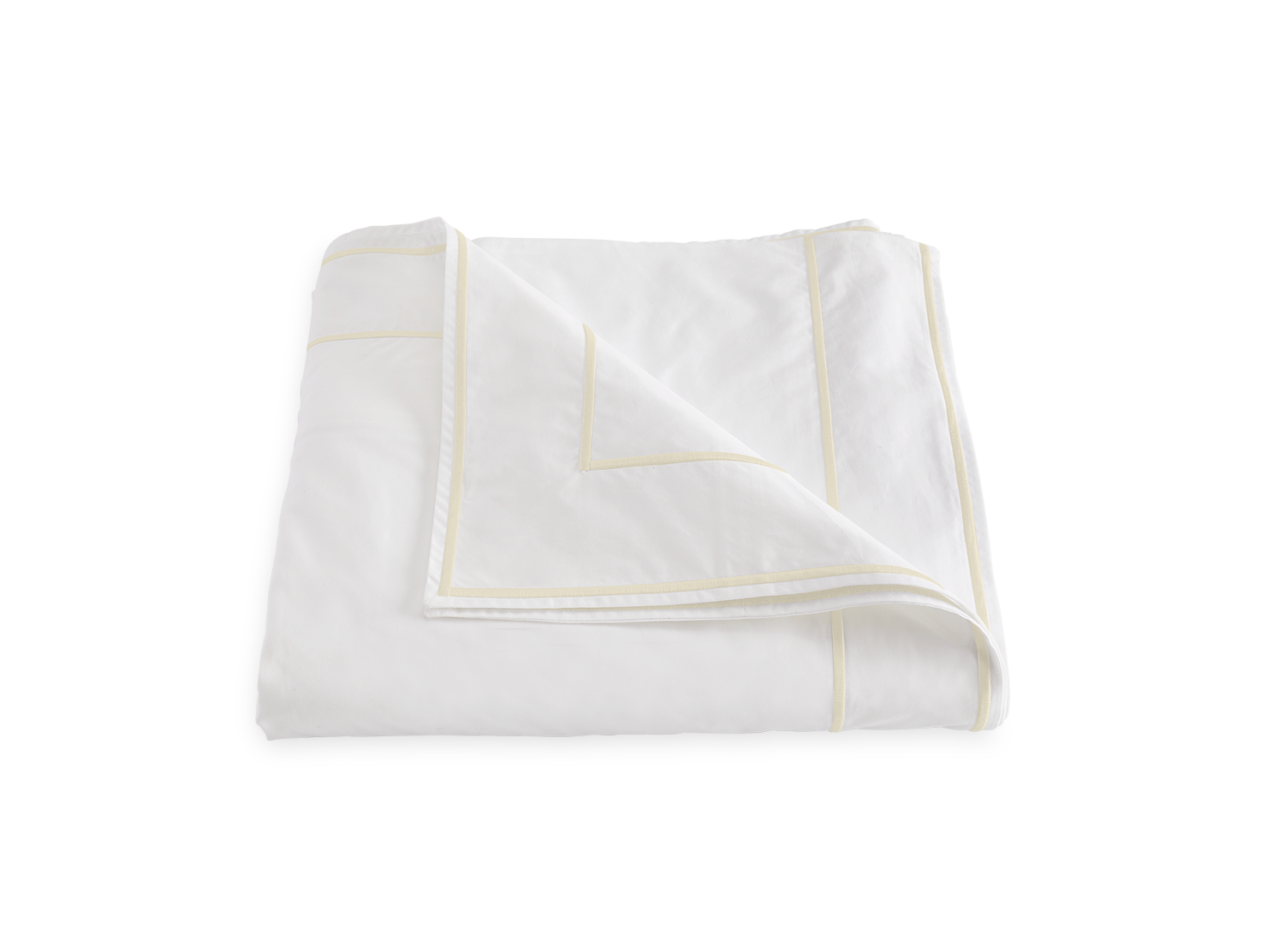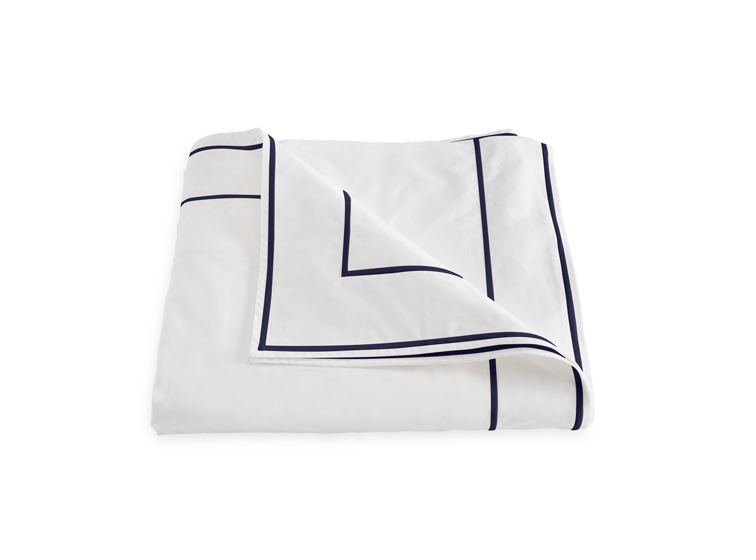 White Luca percale finished with two rows of satin stitch threads in choice of colors to complement your bed
