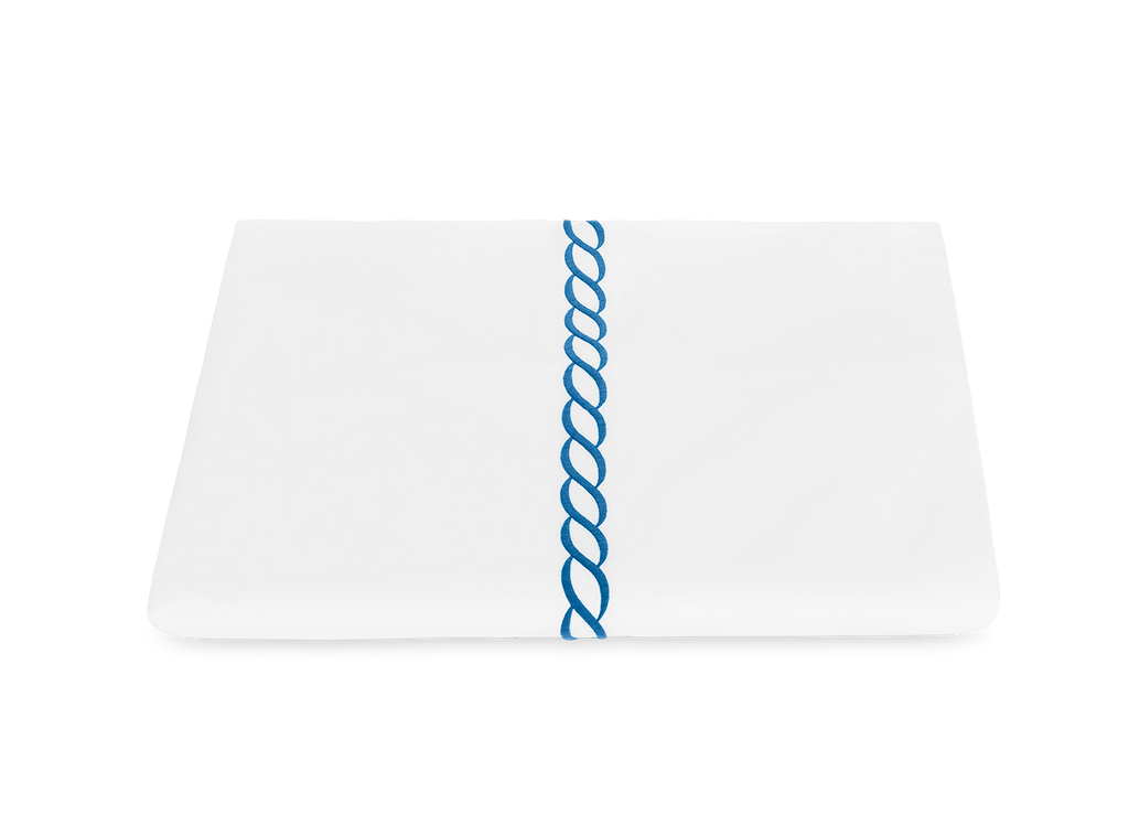 The Classic Chain embroidered collection offers an updated take on a traditional Greek motif on crisp Ceylon cotton percale