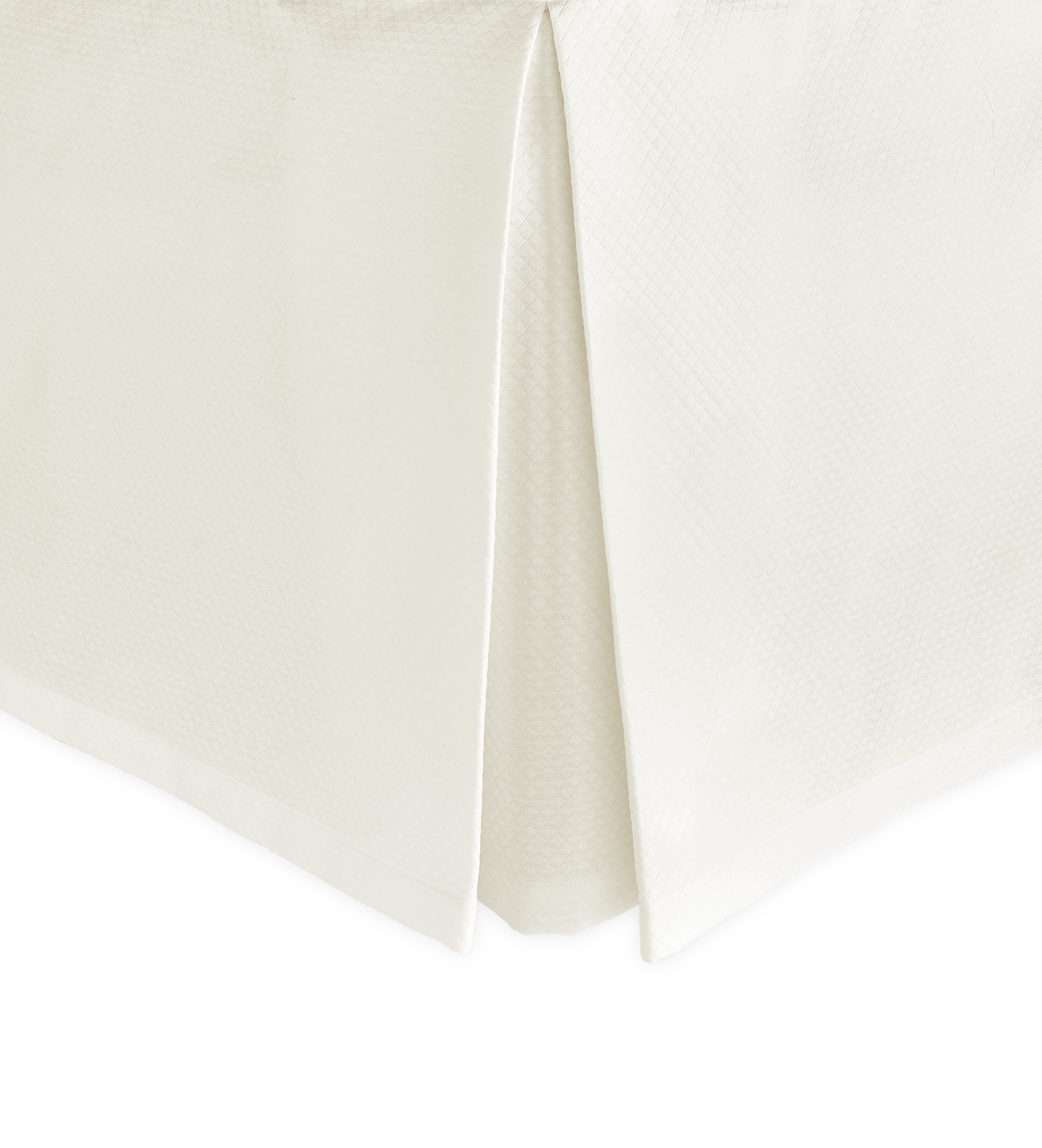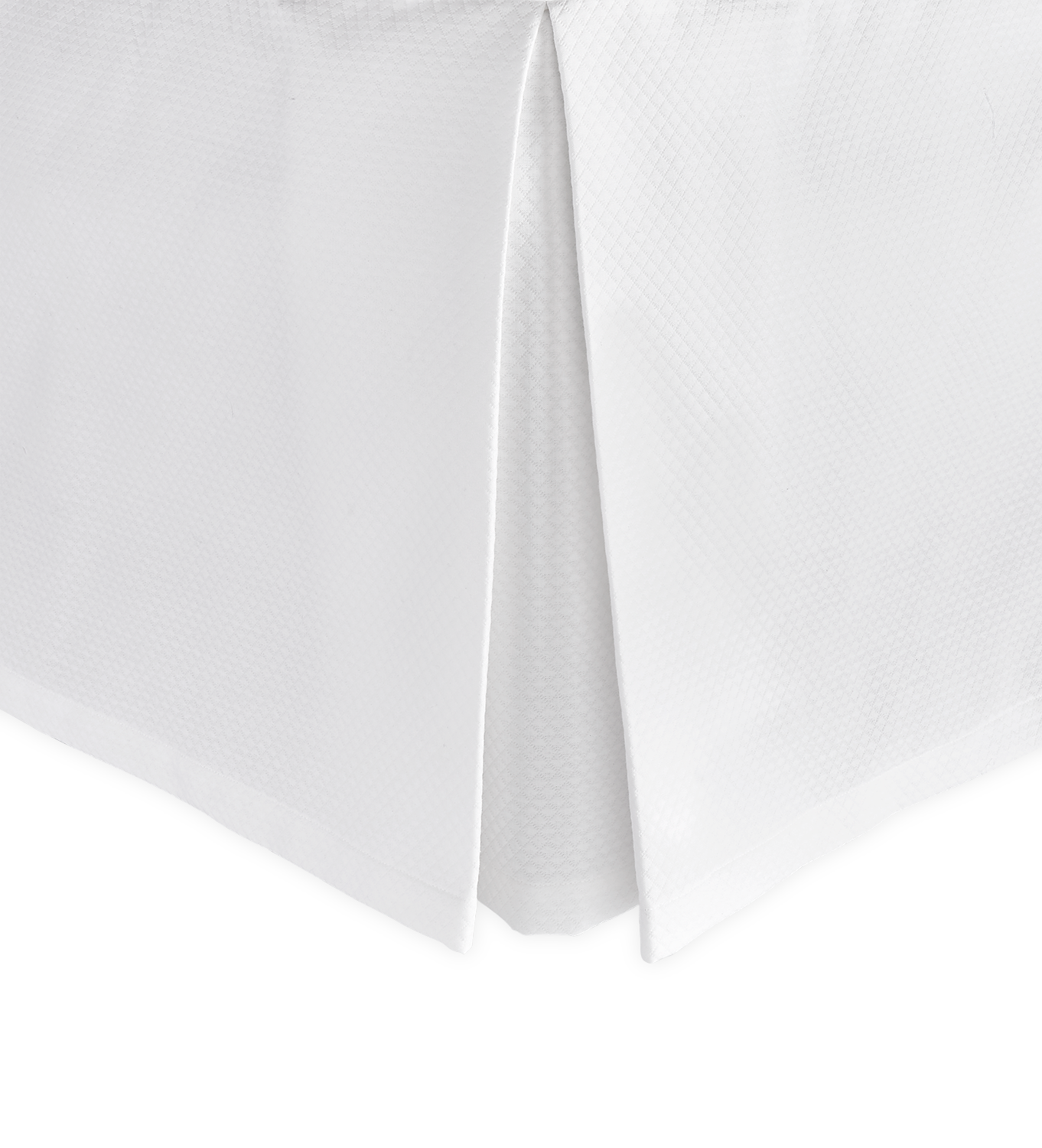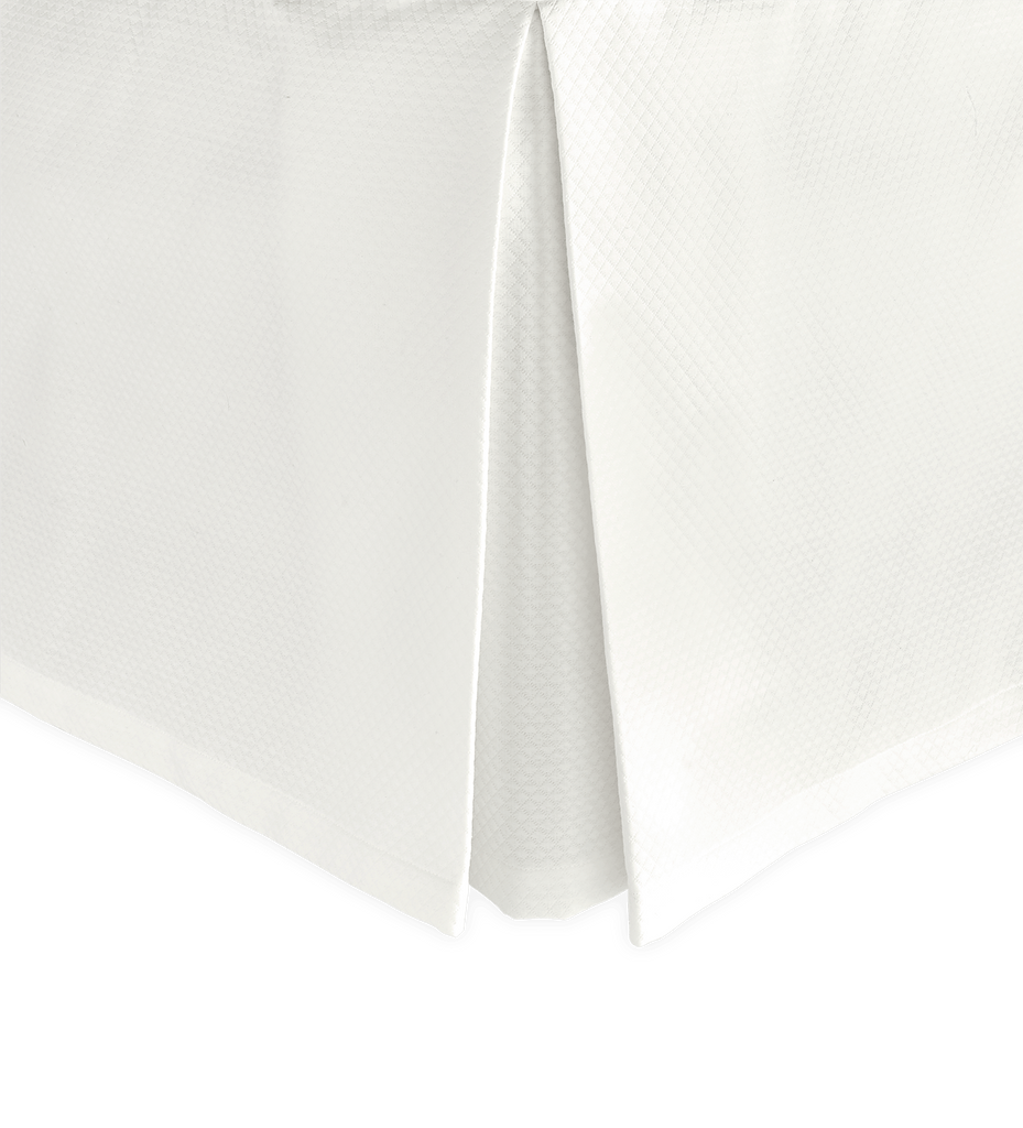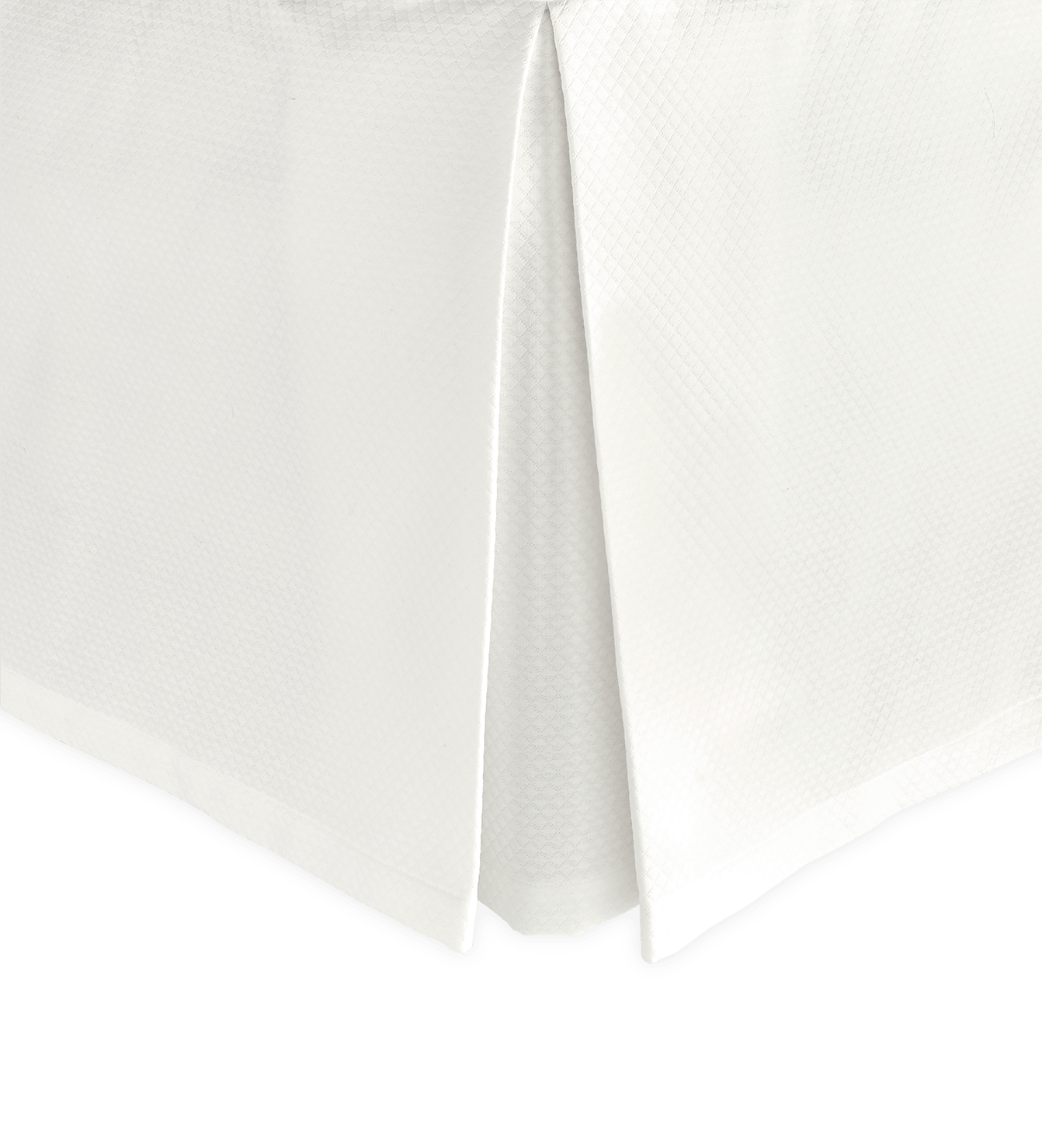 Matouk's diamond-patterned pique in easy-care fabric comes in an array of colors and is finished with a white, embroidered scalloped edge