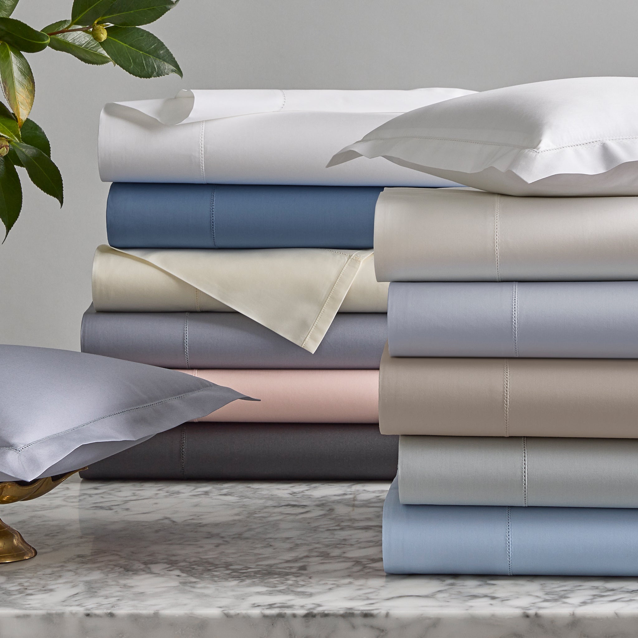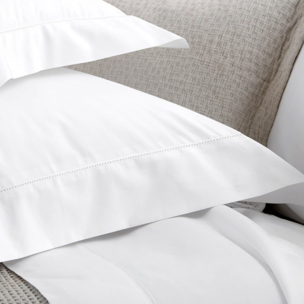 Iconic Egyptian cotton percale accented with subtle, sophisticated, classic hemstitching.