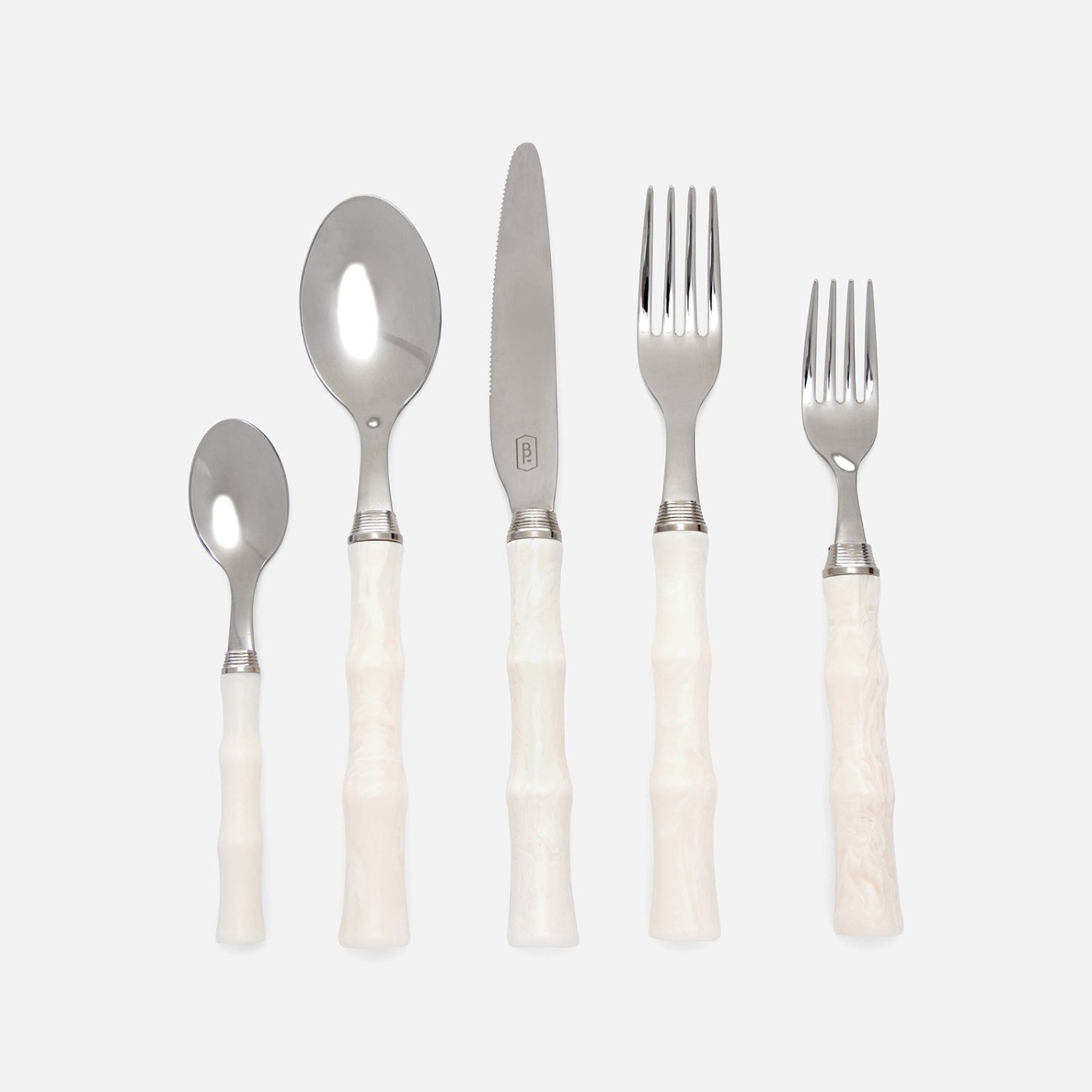 • 5-Piece Flatware Set: Includes Knife, Dinner Fork, Salad Fork, Soup Spoon, Tea Spoon