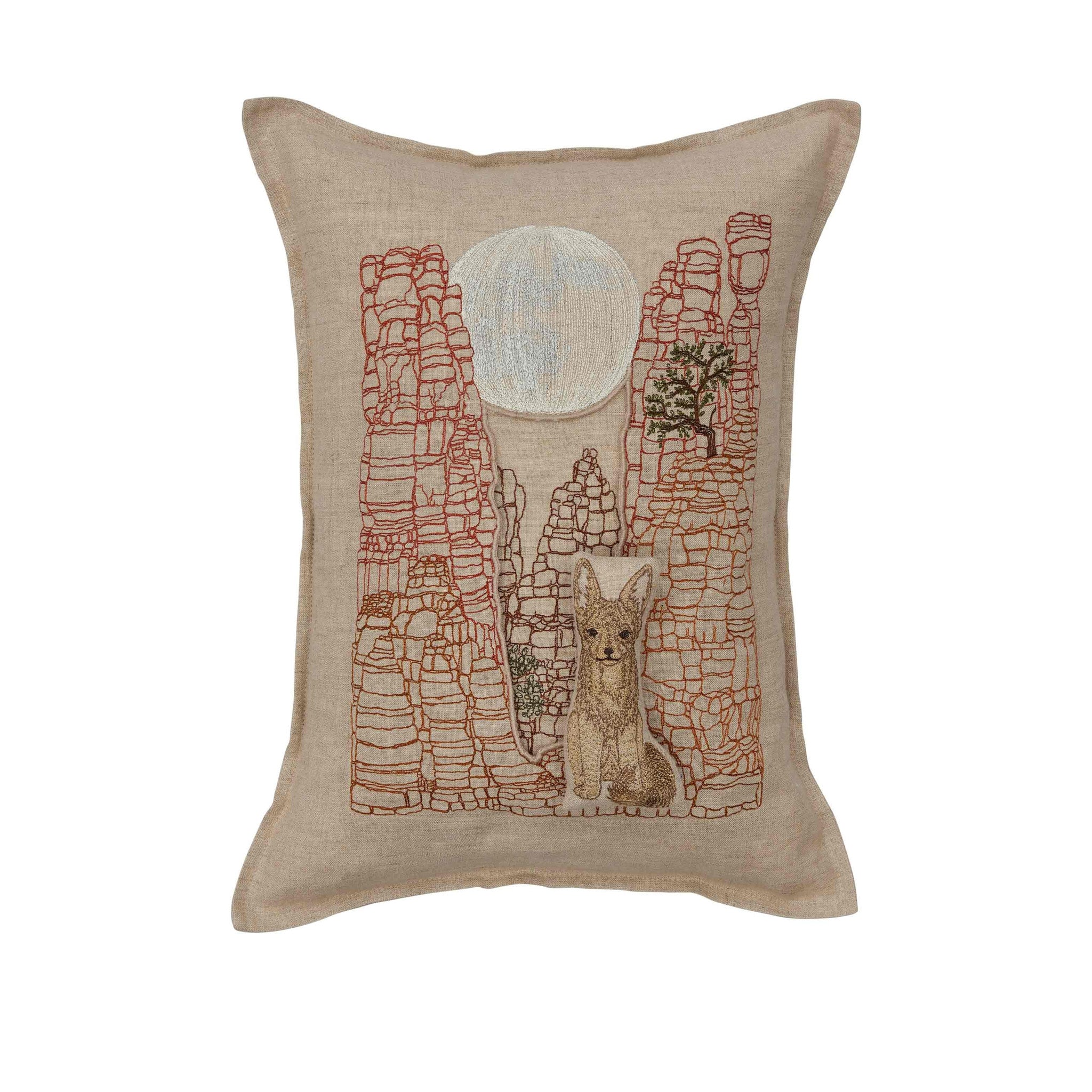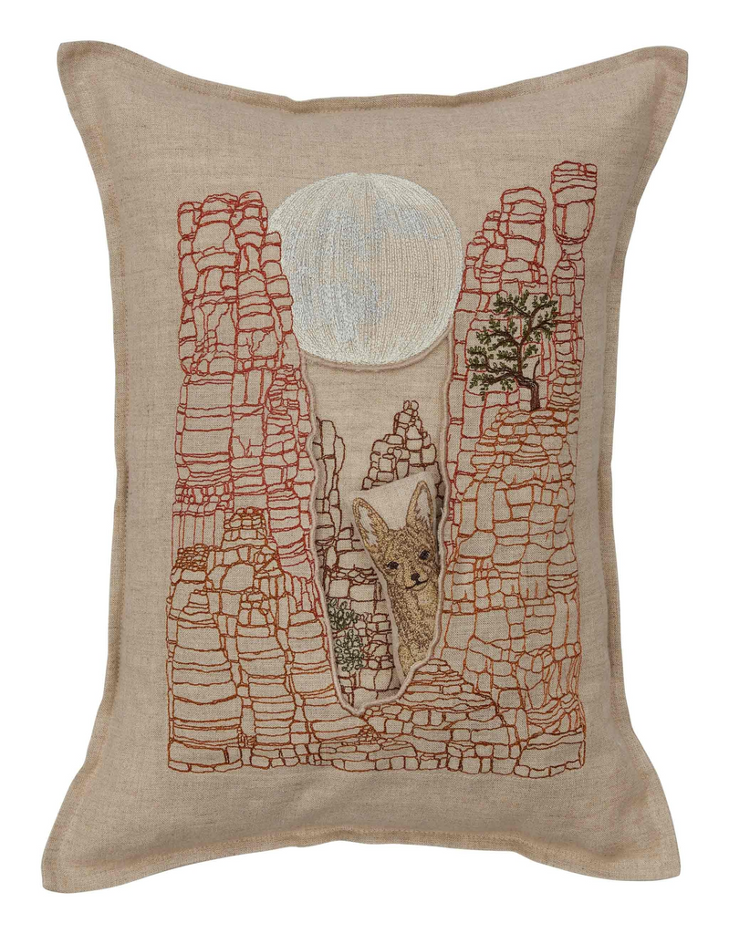 As the sun sets on the canyon, the moon begins to rise, it’s time for fennec fox to come out and play! Fennec fox rambles down the rocks and darts in and out of the cliff shadows. Add the majesty of the moon and desert to your home with our new pocket pillow. Fennec fox can be removed from the pocket.