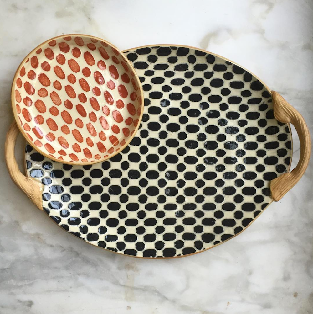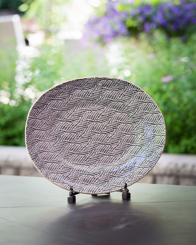A generous sized serving platter is always in demand, especially during the holiday season. The Oval Serving Platter from Terrafirma Ceramics stands out from the crowd with its gorgeous hand made texture, and durable construction. Holiday feasts will be beautifully presented on this natural stoneware platter that is finished with liquid porcelain poured through textiles and lace then fired at a high temperature to create a stunning work of art. Artist Ellen Evans hand crafts each platters in her studio in New York.