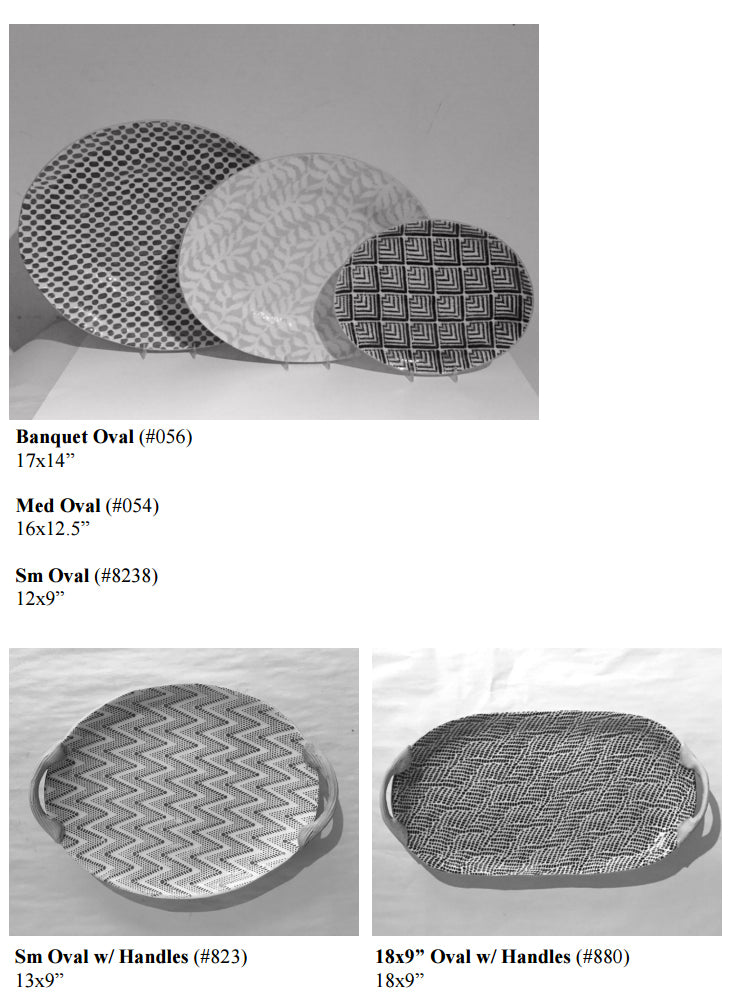 - Available in Small, Medium, and Banquet Ovals and 18" x 9" and Small Oval Platter with handles.
