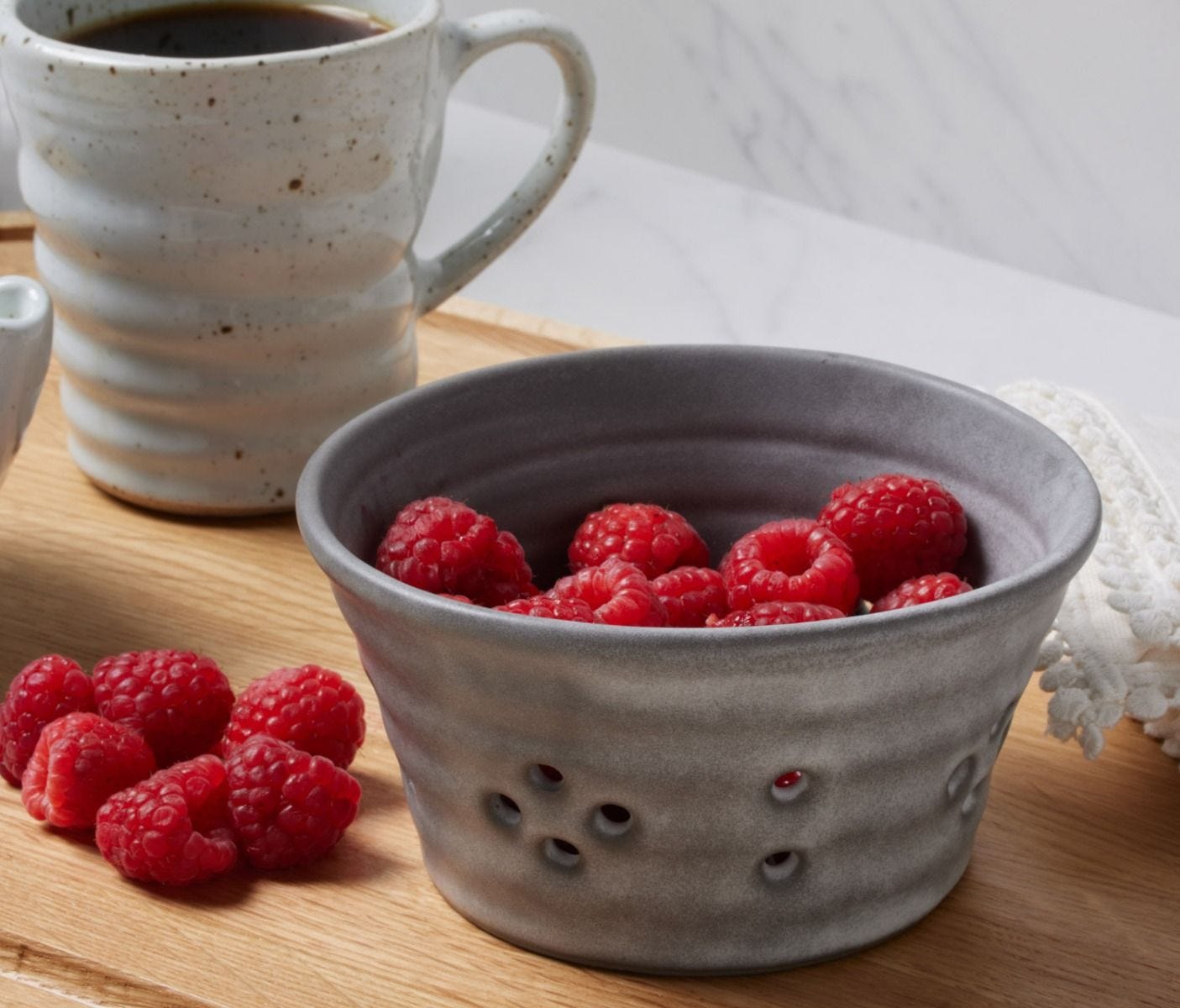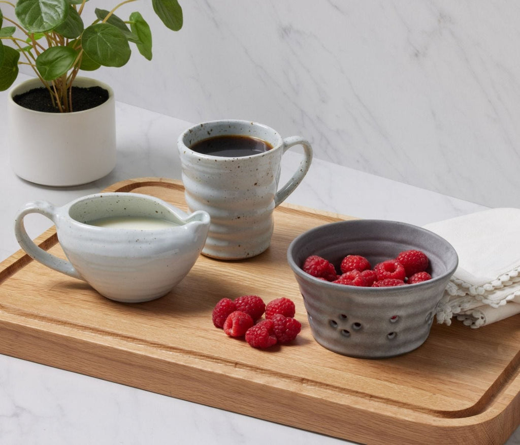 - Handcrafted cement glaze stoneware berry bowl for rinsing and serving