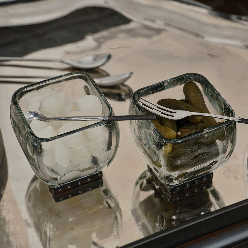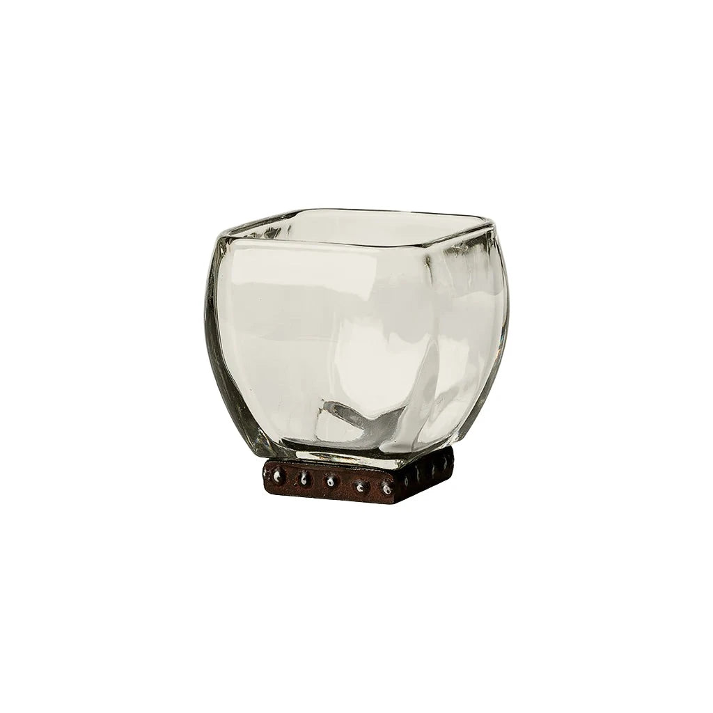Crystal glass with beaded iron stand