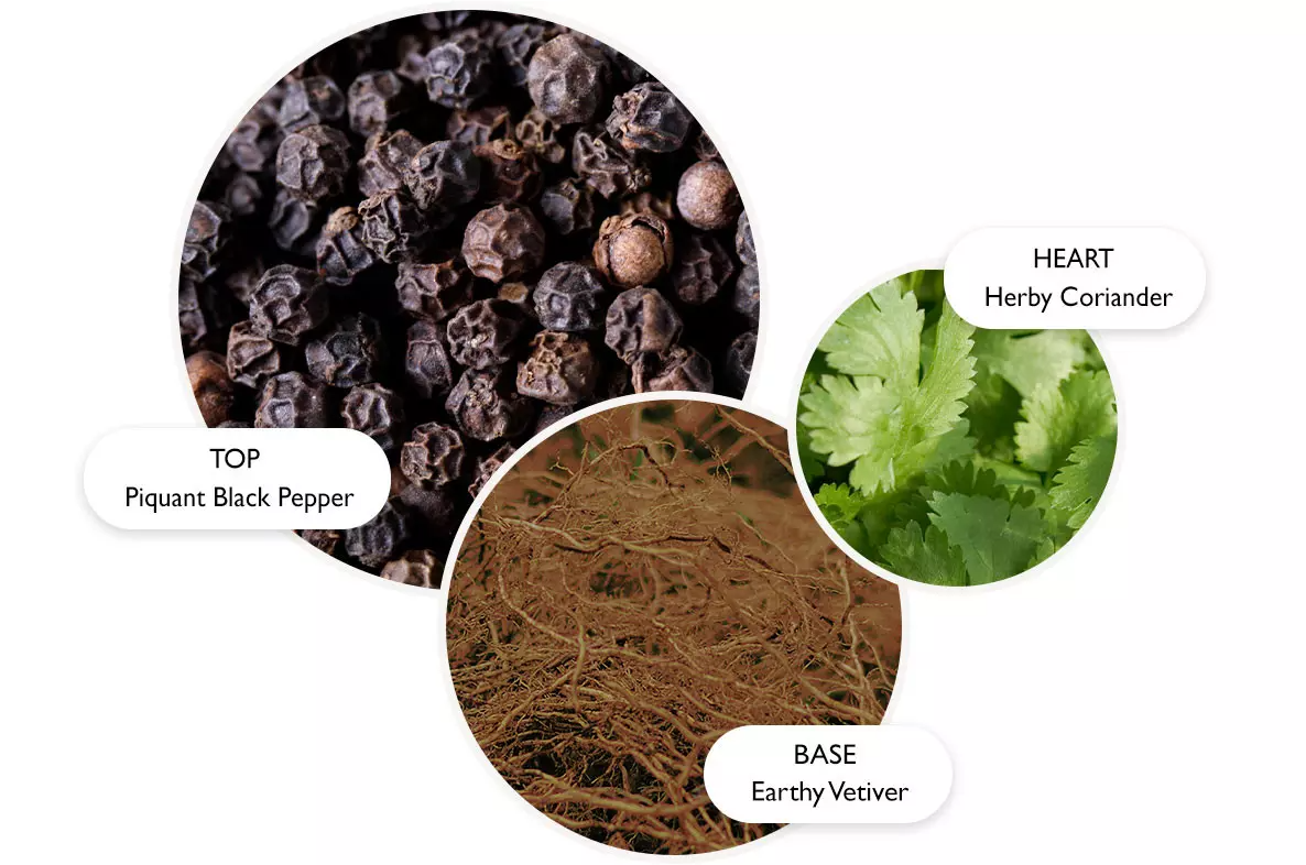 • Scent: Madagascan black pepper, ginger and earthy vetiver