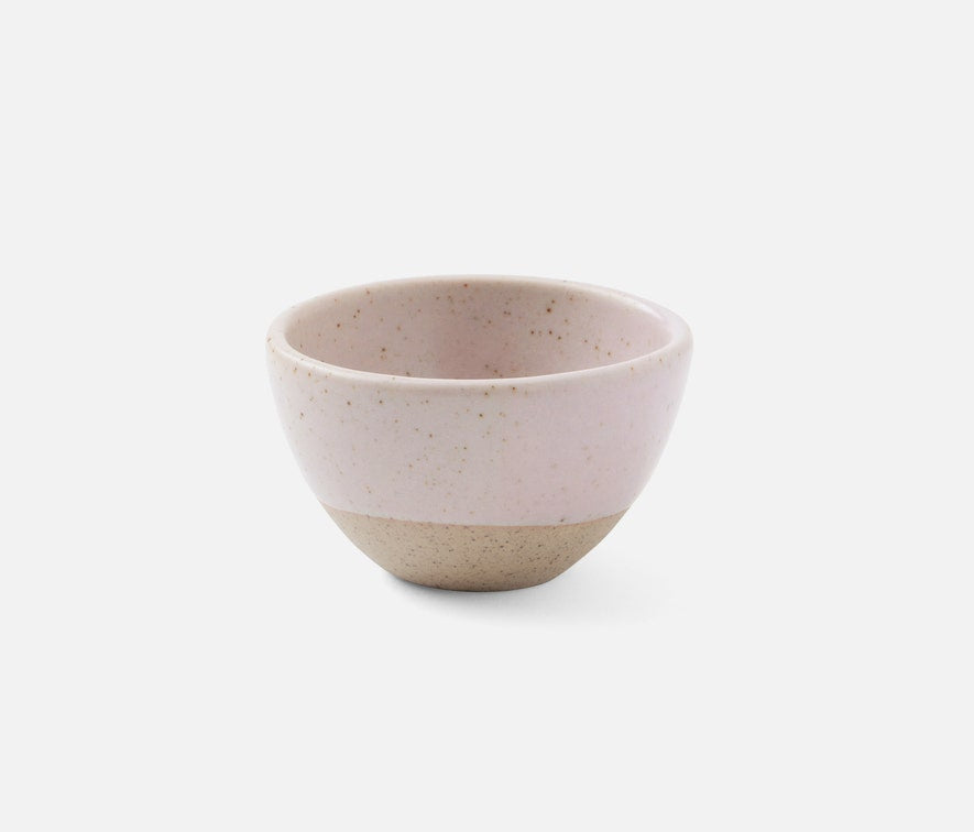 - Pinksalt glaze finish accented by roughly textured natural stoneware edges