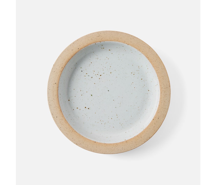 - White salt glaze finish accented by roughly textured natural stoneware edges