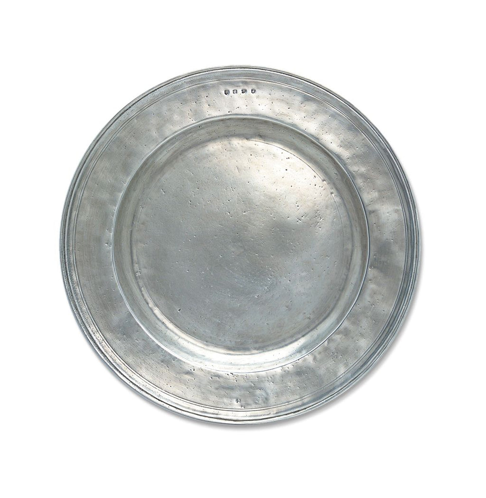 Care: To ensure the longevity of these beautiful plates, we recommend washing by hand or in the dishwasher on the lowest temperature for washing and drying, and letting it cool before removing. Please do not pre-soak. Pewter tarnishes very slowly and requires almost no maintenance. To clean your pewter hand wash in warm water with a liquid dish soap. Be sure to dry the pewter completely, as water allowed to dry on pewter may cause spots. Any spots that appear can be easily removed by polishing or by gently rubbing the area in small circular motions with very fine "0000" steel wool.