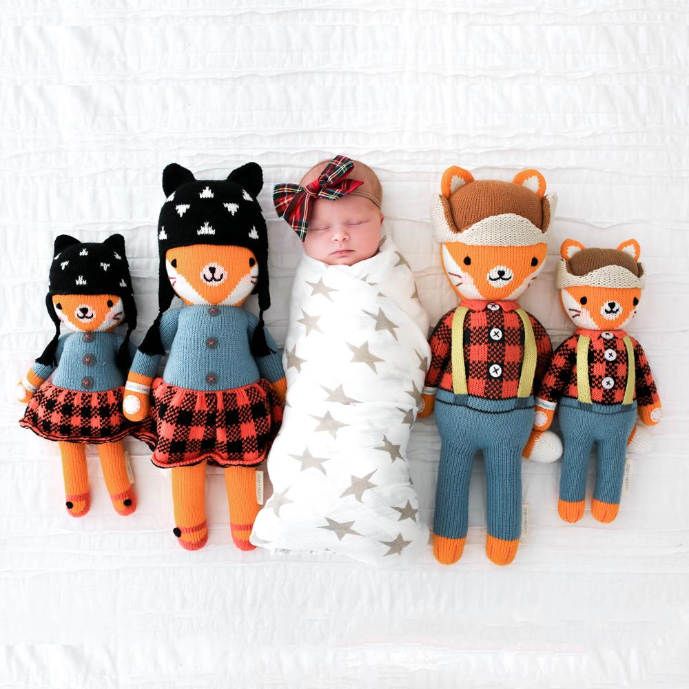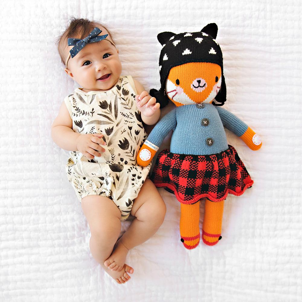 Every cuddle+kind doll is handmade, stitch by stitch with passion and pride in Peru. They are lovingly hand-knit, hand-loomed, embroidered and crocheted by artisans using knitting expertise that has been handed down for generations. We're delighted everyday by the skill and artistry of the knitters. Every beautifully crafted cuddle+kind doll is knit with such a high level of quality and care, they’re suitable to be heirlooms handed down from one lucky baby to the next.