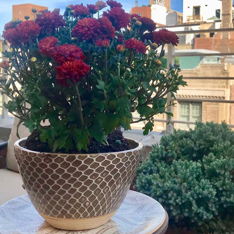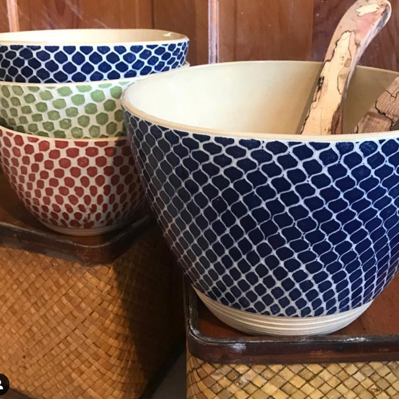 A small and tall salad bowl, or generous portion ramen bowl handmade in the USA in Terrafirma Ceramics' New York pottery studio. Artist Ellen Evans finishes this stoneware bowl with a beautiful glaze in choice of pattern. Serve salad or ramen, chill wine or even use as a planter.