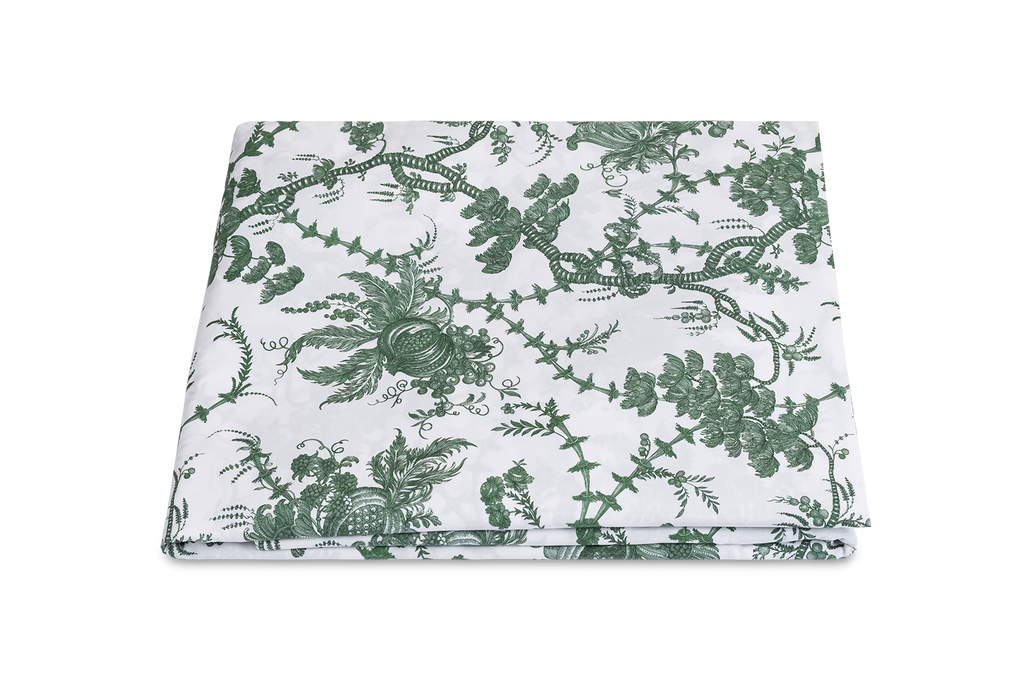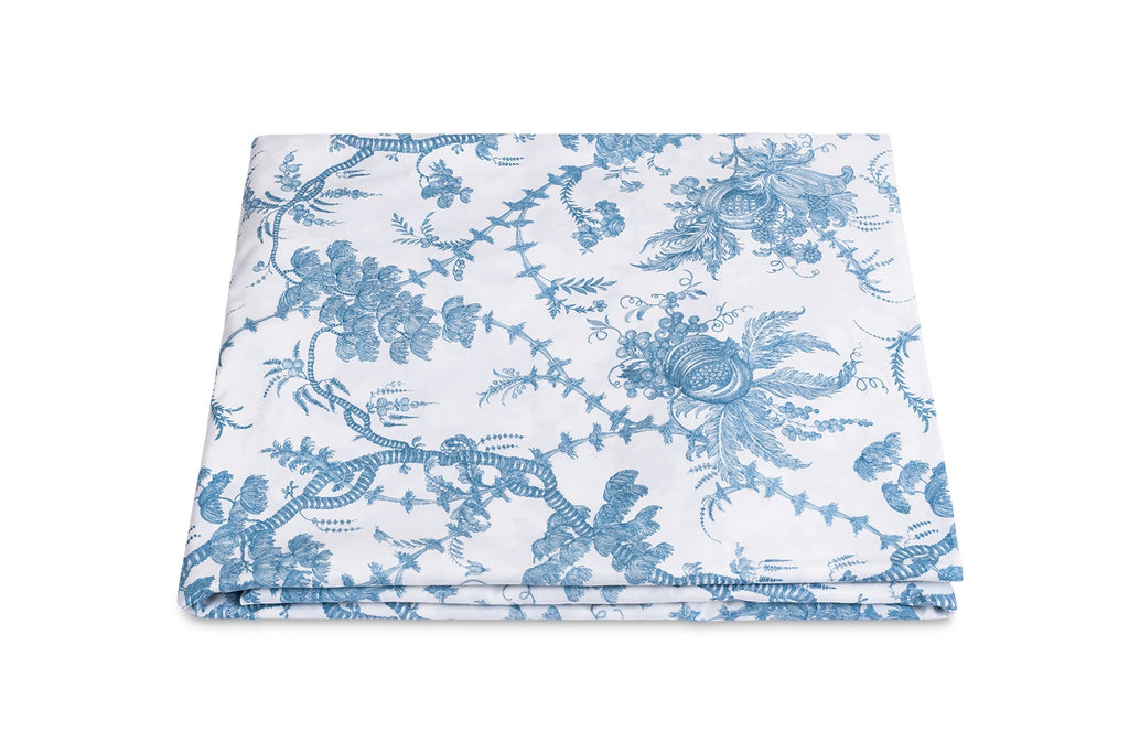 Here to bring some toile de jouy to your bed, Schumacher's San Cristobal is printed on Matouk's lightweight, super-luxe Luca cotton percale