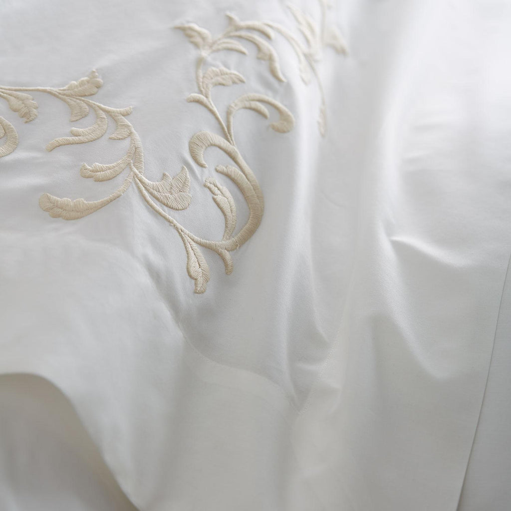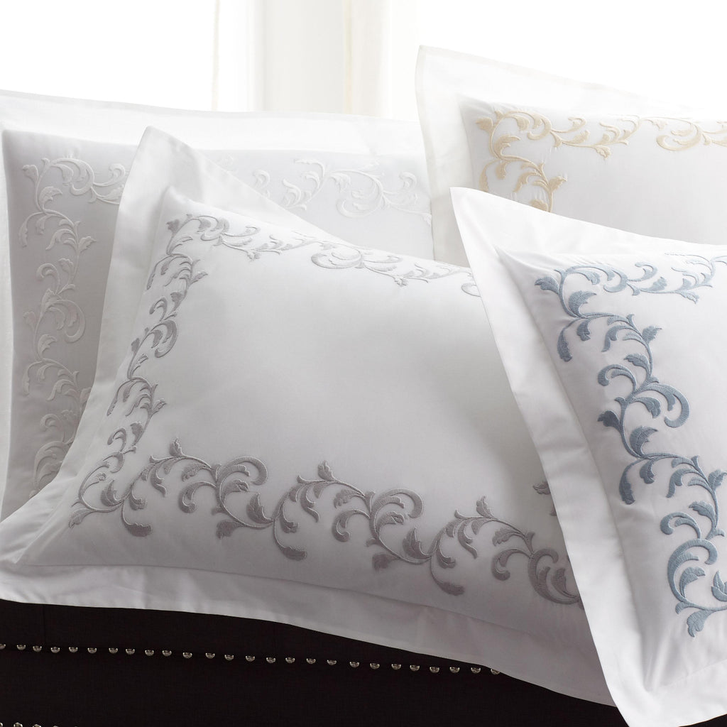 Impeccably detailed embroidery. Invitingly soft cotton. San Remo collection is a lovely marriage of artisan craftsmanship and luxe comfort. Made by one of Italy’s most renowned ateliers, each piece is hand-tailored with scroll embroidery customized for Scandia Home. The collection’s crisp and airy percale is woven from the finest long-staple Egyptian cotton, underscoring the Scandia Home commitment to the very best raw materials. Offered in four colorways that coordinate beautifully with other Scandia Home collections.