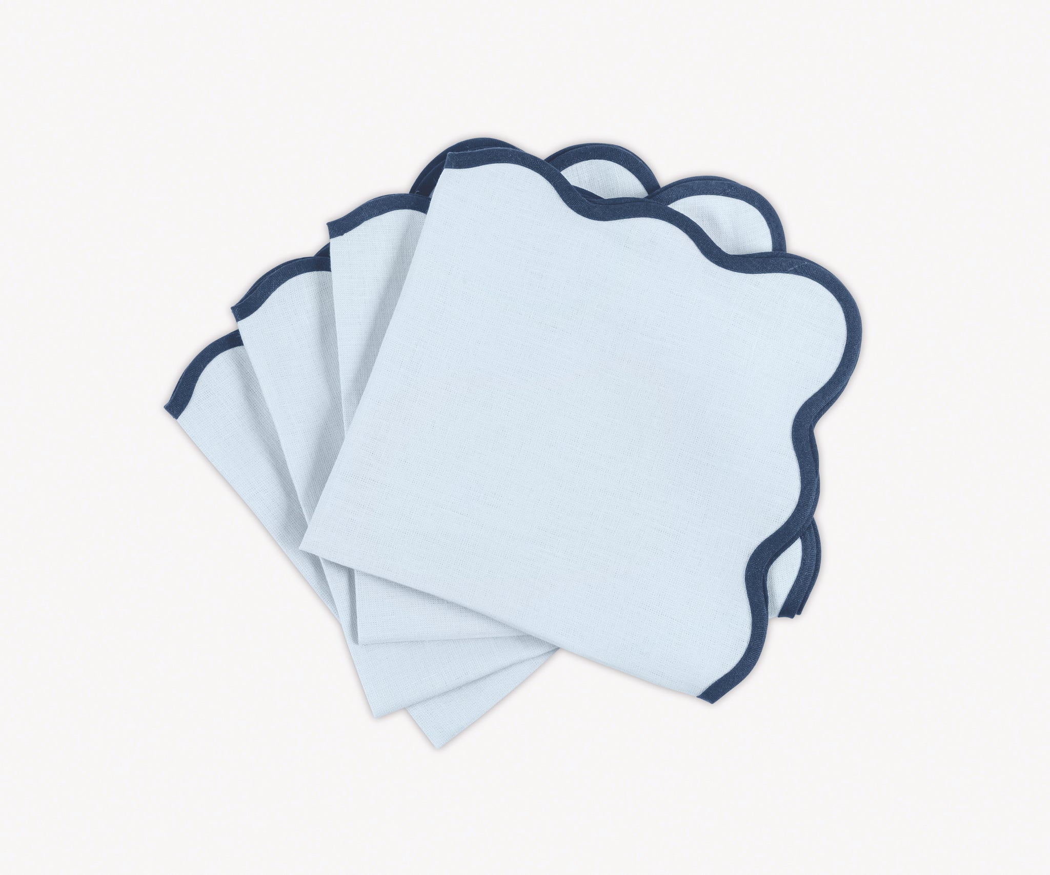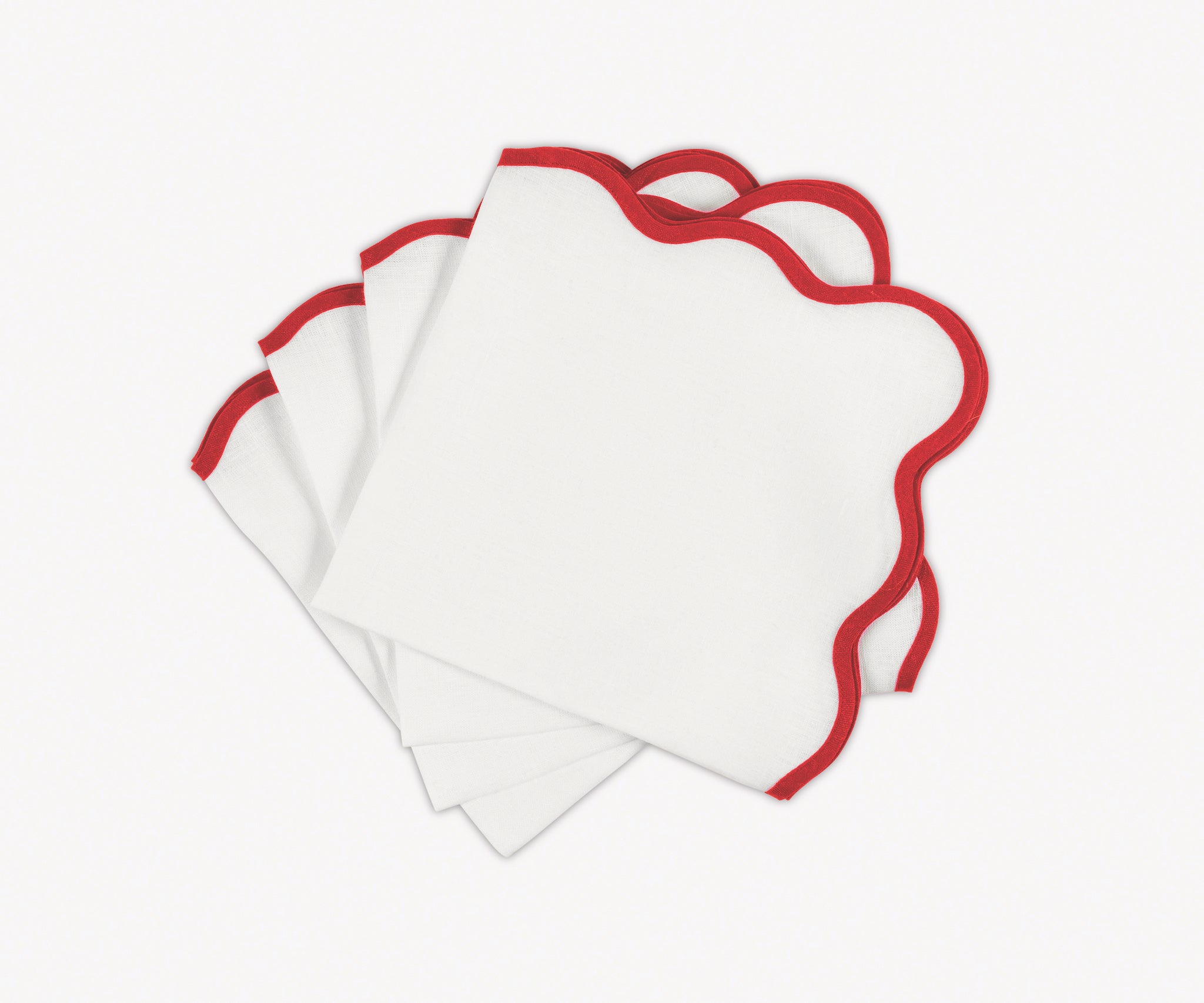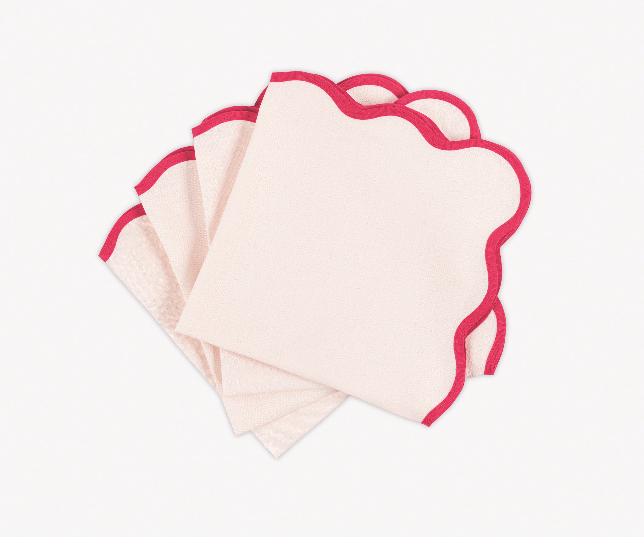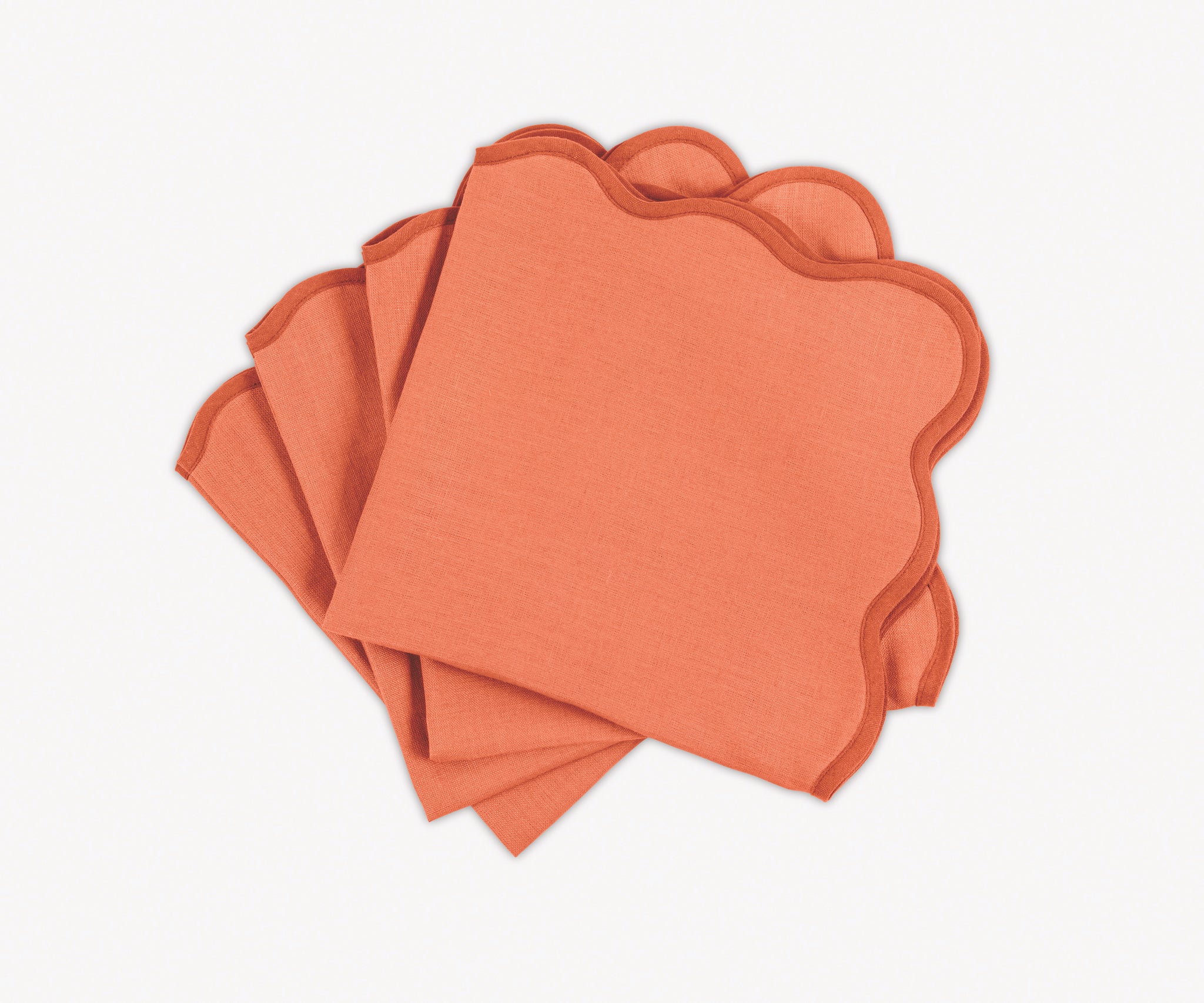 - Vibrant color linen cloth napkins and round or oval placemats in gorgeous color combinations, finished with a scallop edge to set a charming and chic table setting
