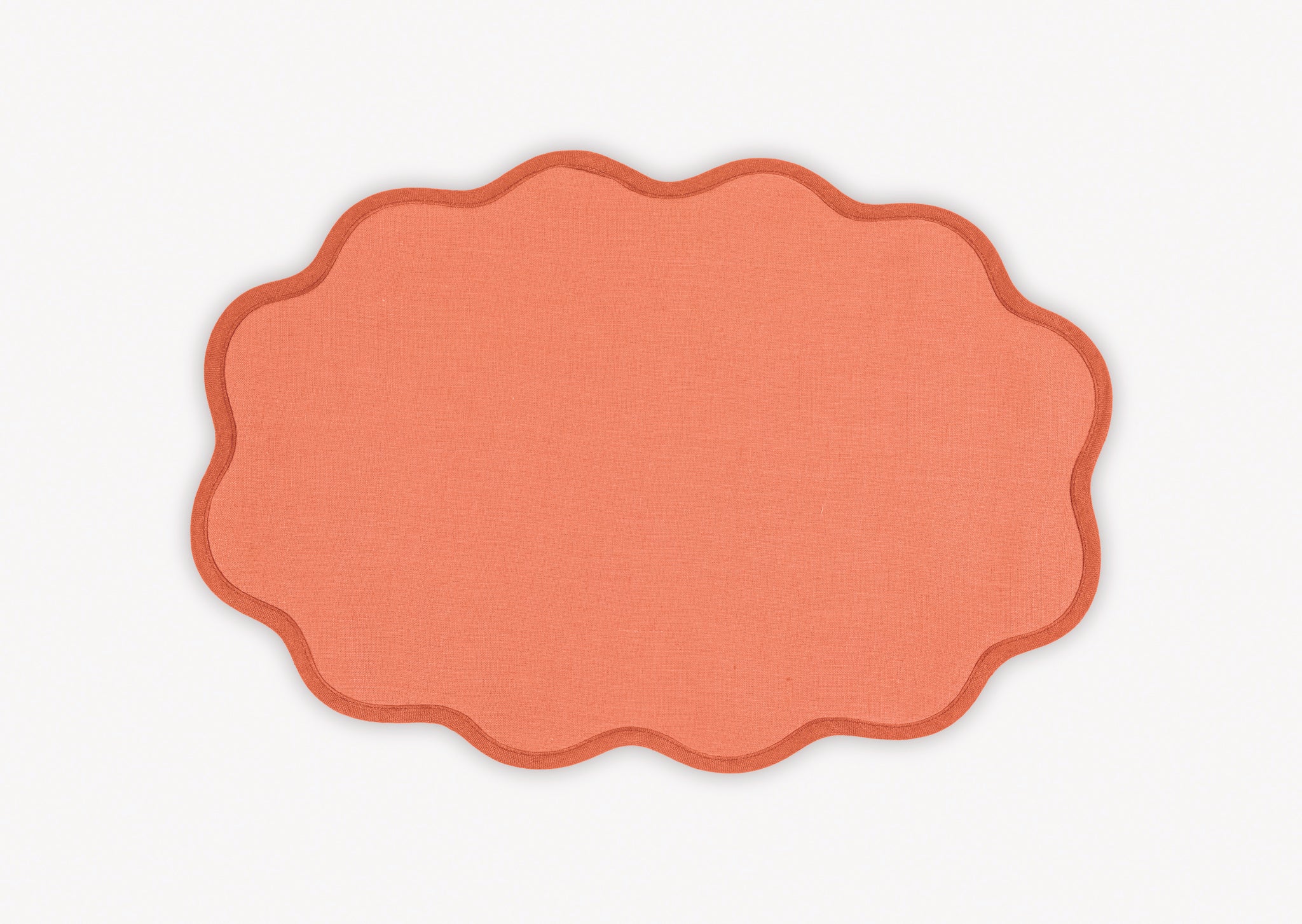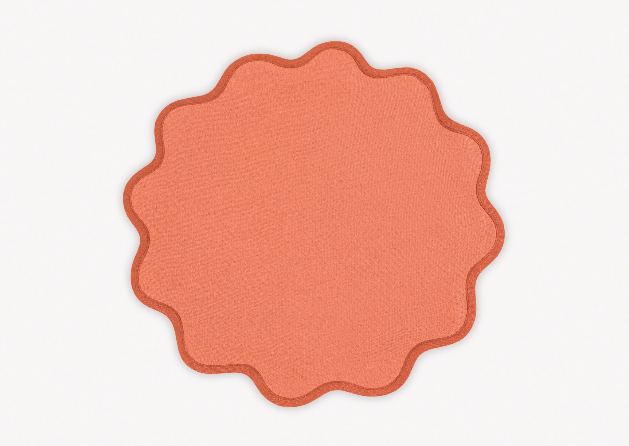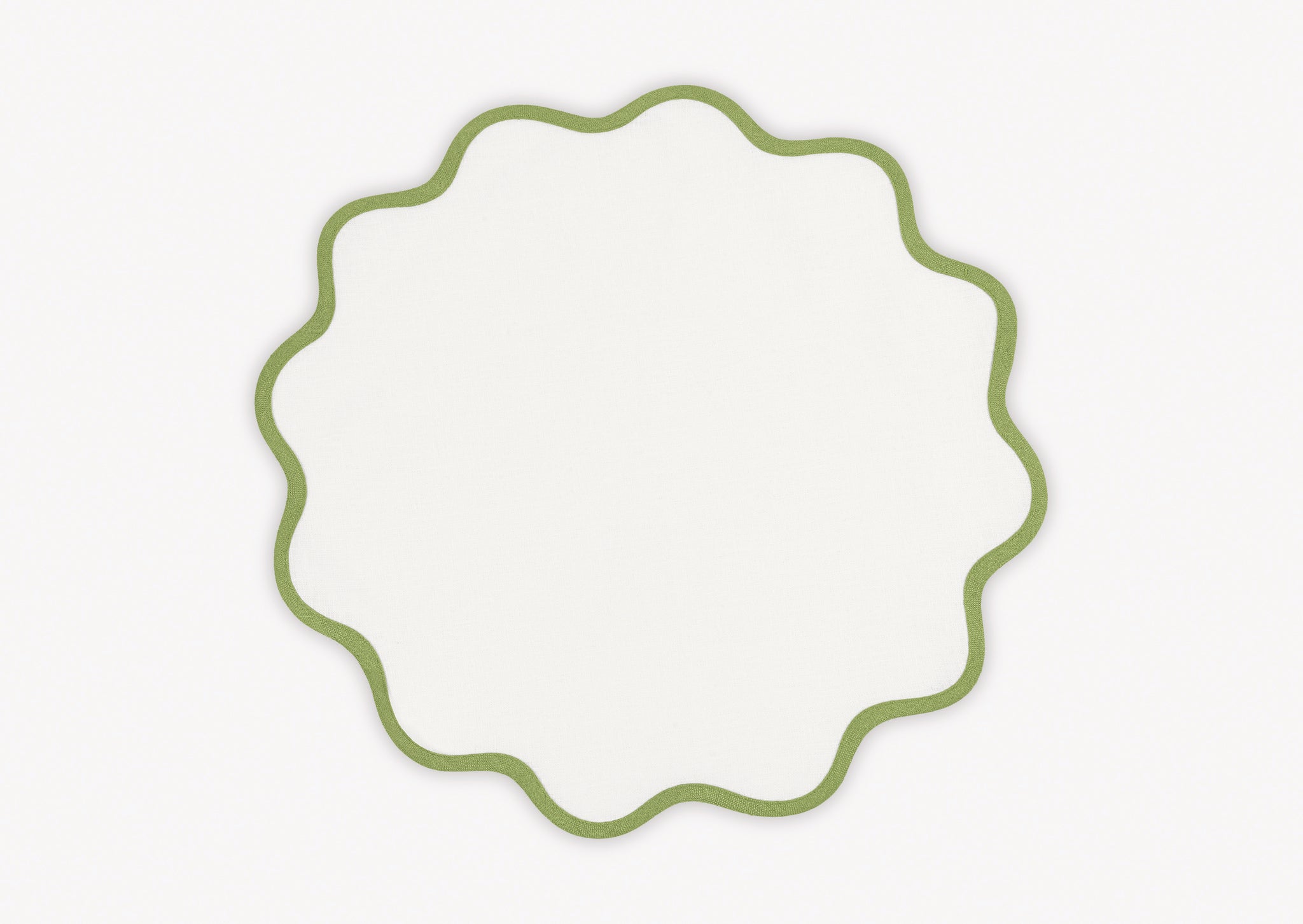 - Vibrant color linen cloth napkins and round or oval placemats in gorgeous color combinations, finished with a scallop edge to set a charming and chic table setting