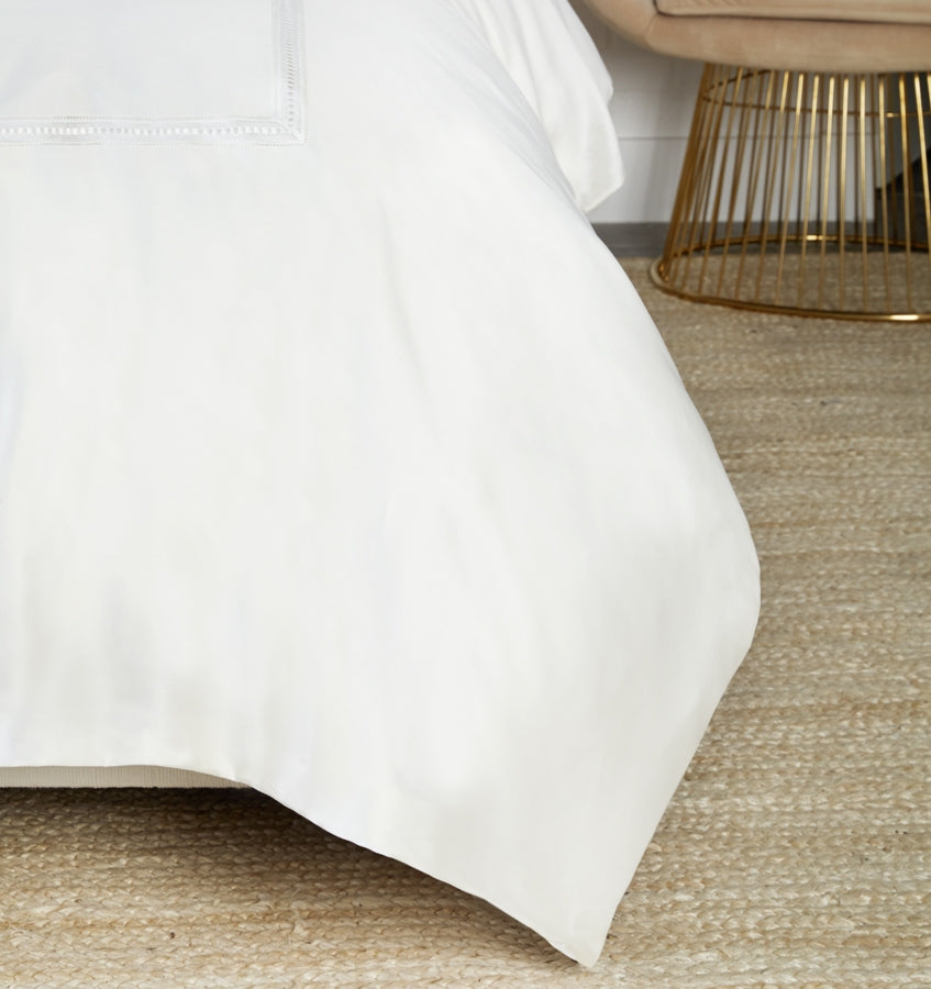 - Duvet Covers have U-shape lace inset on top of bed, and are finished with a knife edge.
