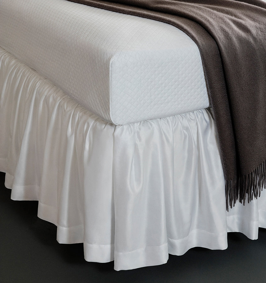 - Bed skirts have 3 gathered panels with plain, no lace hem, and up to a 18" drop.