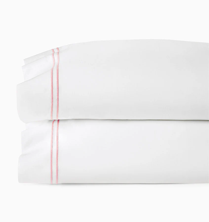 • Two parallel lines of colored embroidery on smooth, cool, and crisp percale white or ivory sheeting gives a tailored look found in the finest hotels of the world