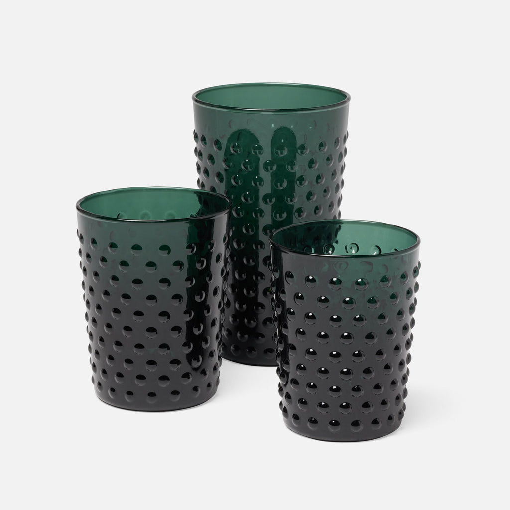 - Highball: 3.5"D x 6"H, holds 18oz.