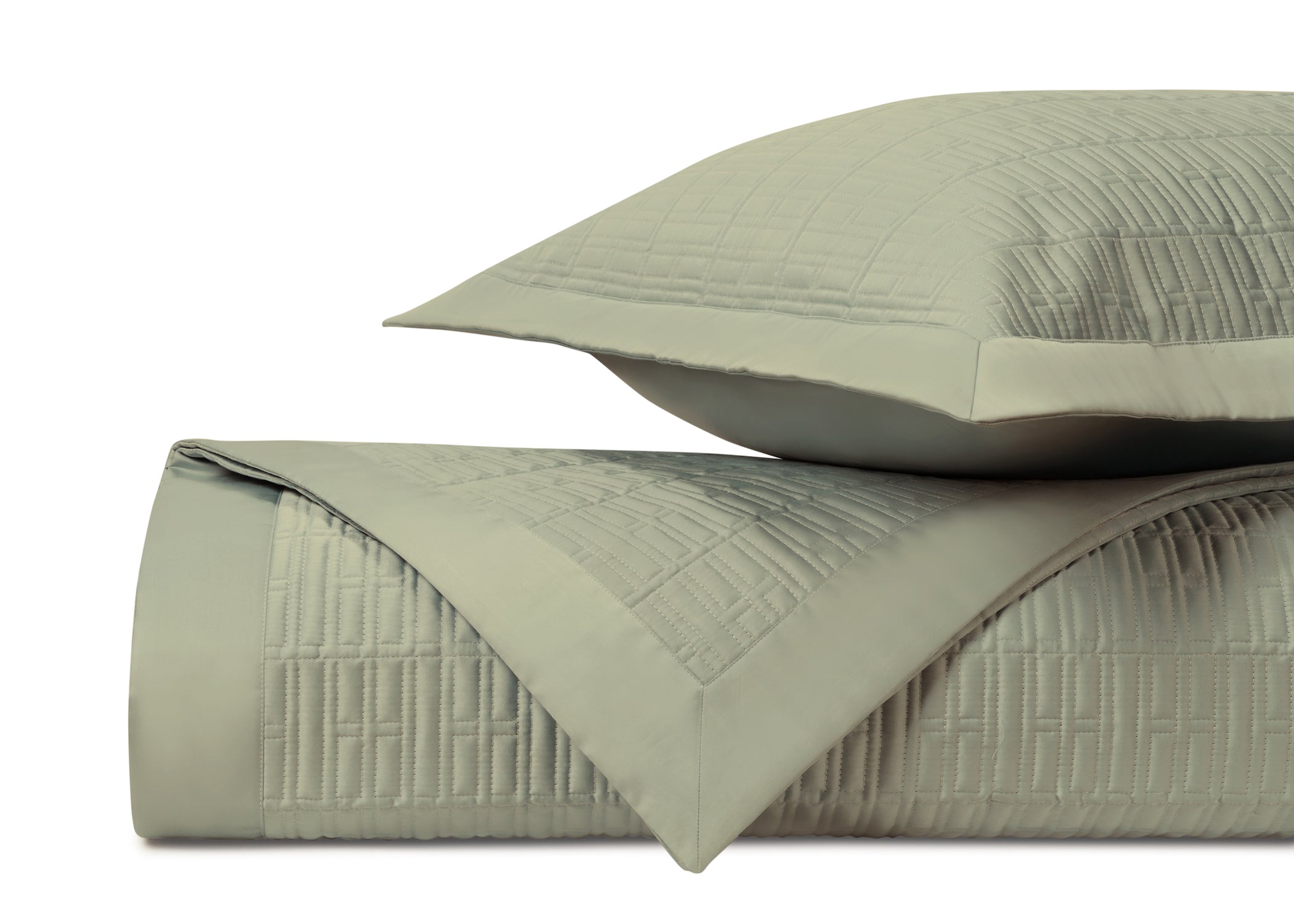 Contemporary rectangle block design is quilted on 100% Egyptian cotton sateen in choice of beautiful saturated colors on Sydney coverlets and shams.- Made to order. Ships in 4 - 6 weeks.