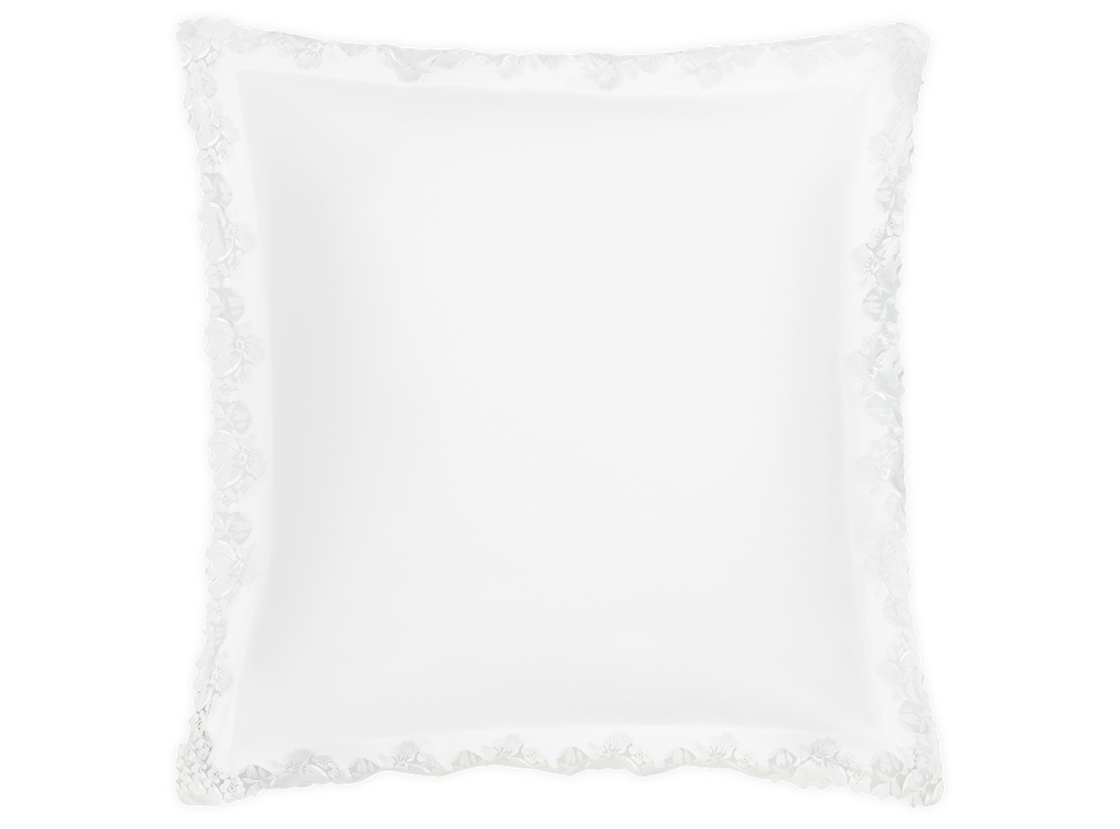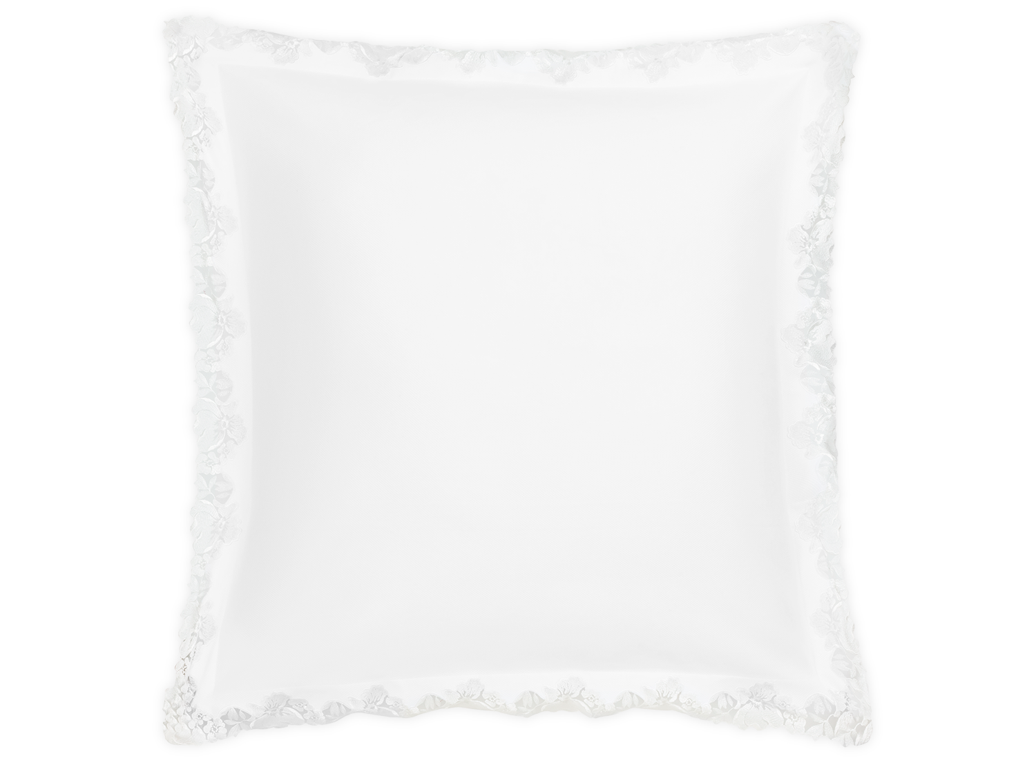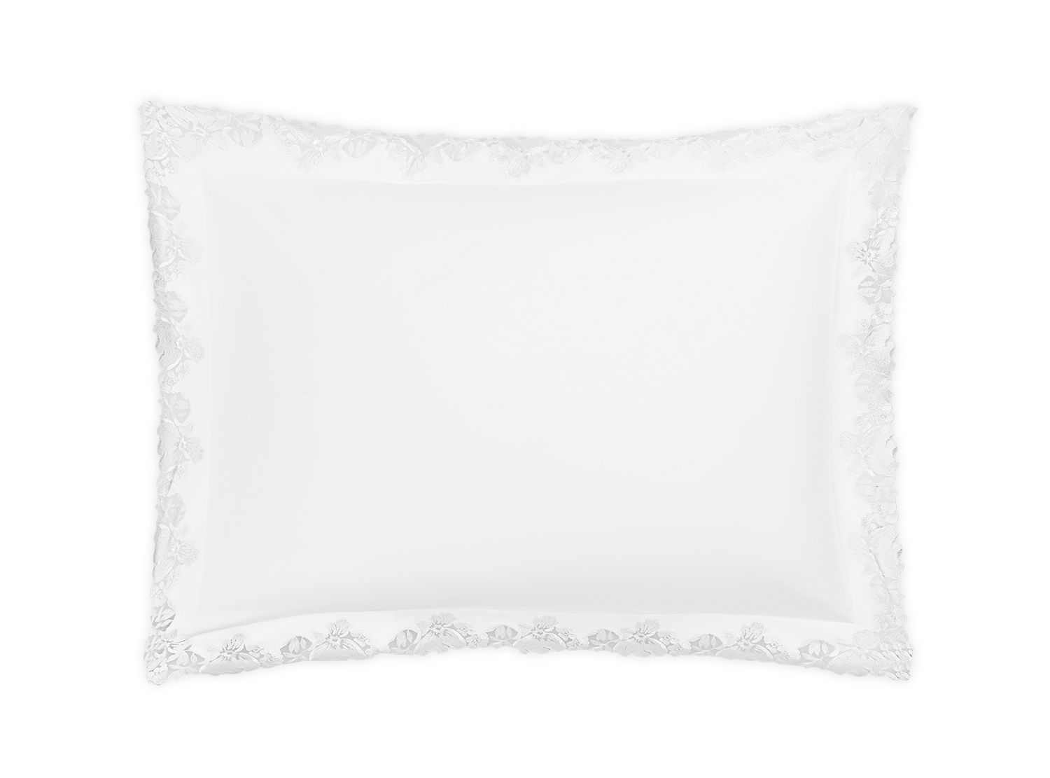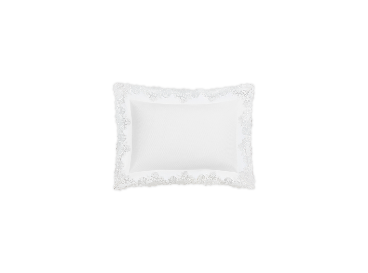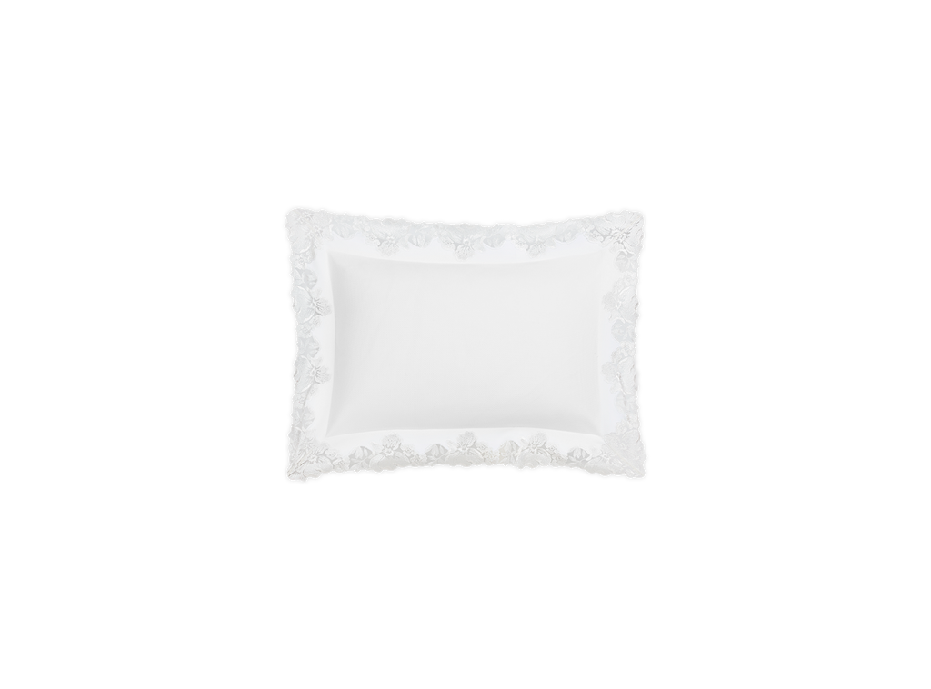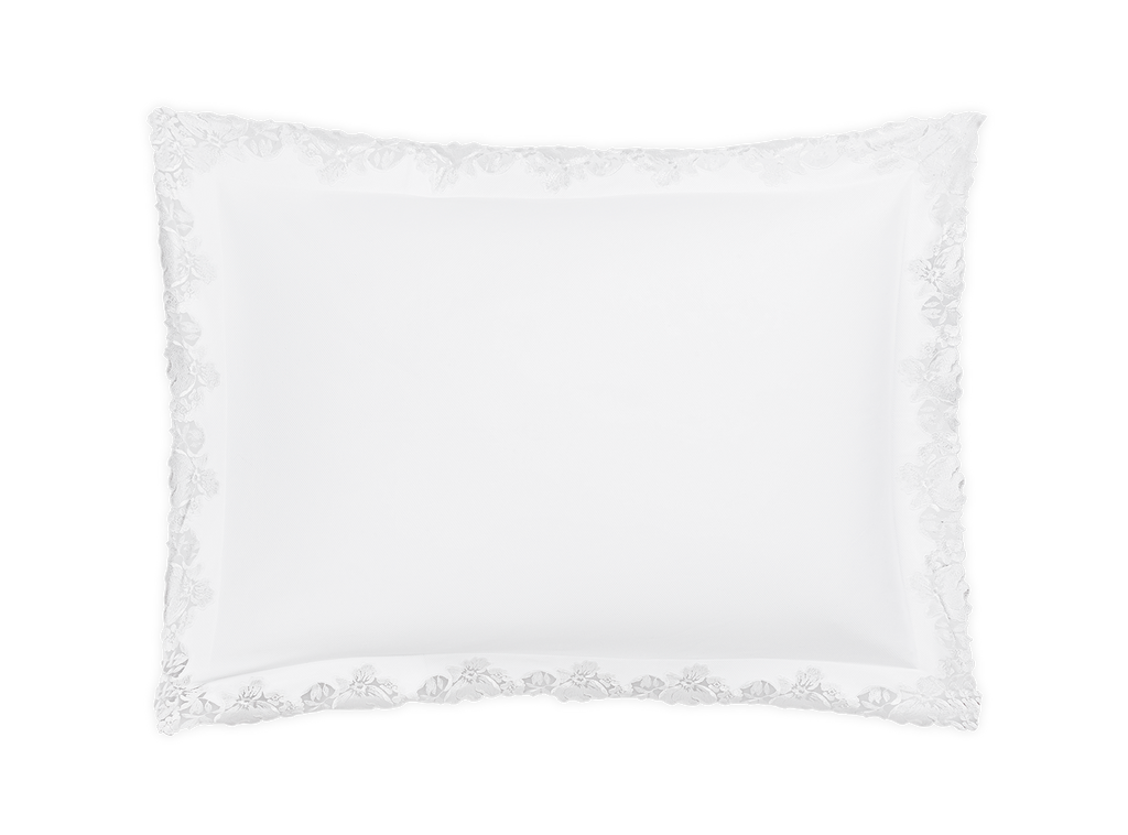 Feminine and romantic. Matouk's lightweight Camilla pique is finished with their stunning Virginia Swiss lace detail for a simply elegant layer to finish the perfectly polished bed.